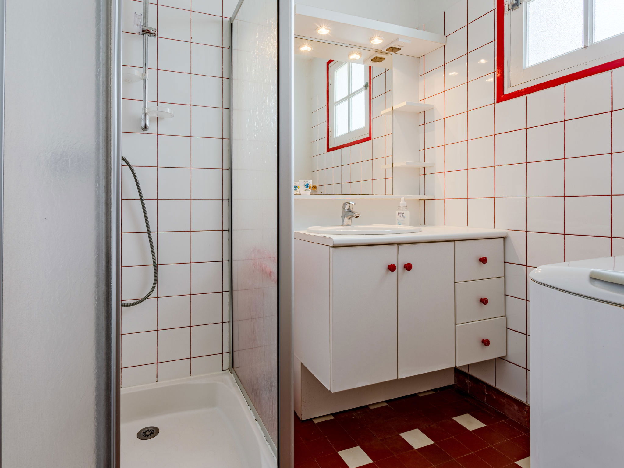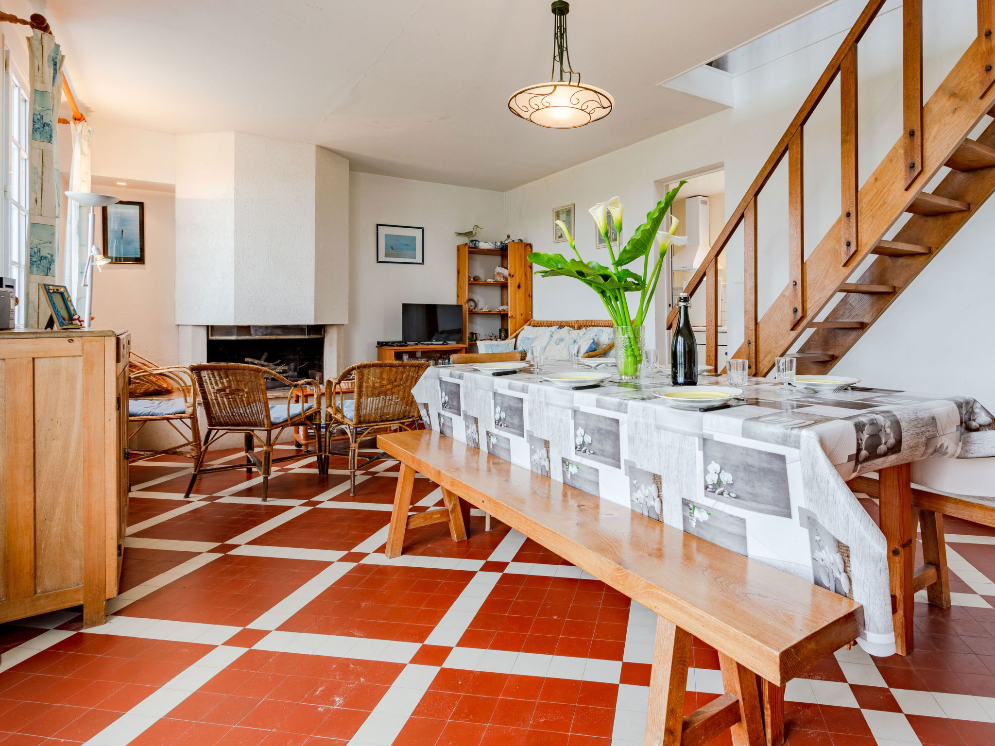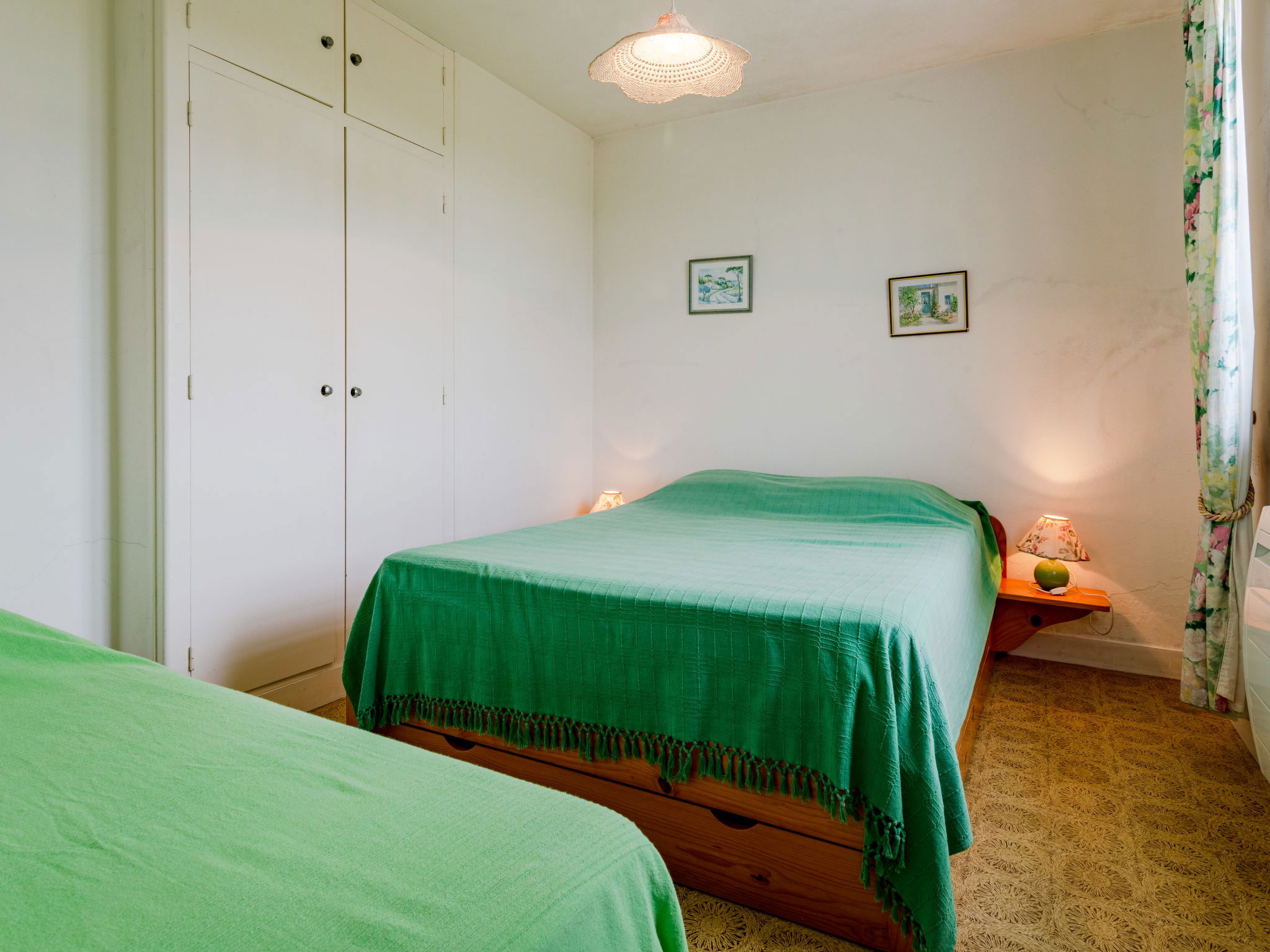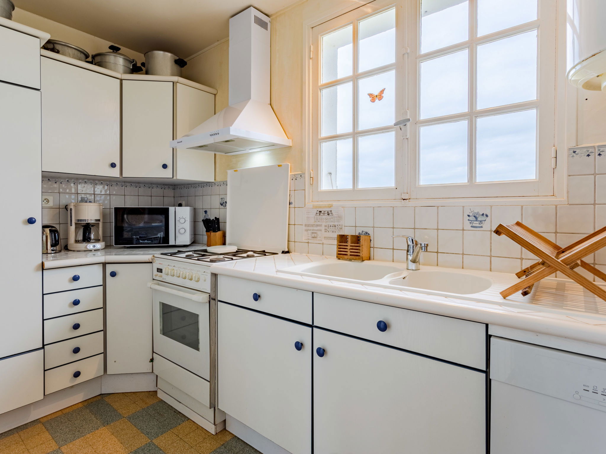4-room house 85 m2 on 2 levels. Practical and tasteful furnishings: living/dining room with open-hearth fireplace, dining table and satellite TV. Exit to the garden. 1 room with 1 french bed. 1 room with 1 bed and 1 french bed. Kitchen (1 hot plate, oven, dishwasher, 3 gas rings, toaster, kettle, microwave, electric coffee machine). Shower, sep. WC. Upper floor: (steep stair) open gallery. 1 room with sloping ceilings with 1 bed and 1 french bed. Shower/WC. Electric heating. Parquet floors. Facilities: washing machine, children's high chair, baby cot. Please note: non-smoking house. Bed layout is flexible. There are more sleeping options available than the maximum number of people allowed which may, however, not be exceeded. Instead of an enclosed bedroom, some sleeping areas are located in an open-plan area (gallery, alcove, etc.).