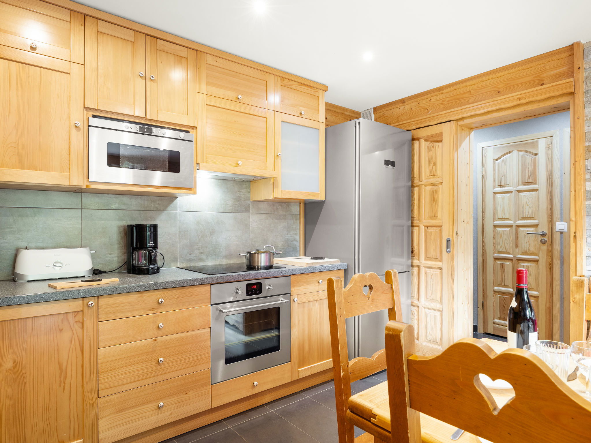 "Le Petit Savoyard", 5-room apartment 72 m2, on the ground floor, south-west facing position. Renovated in 2015, cosy and wooden furniture furnishings: living/dining room with dining table and satellite TV. Exit to the terrace. 1 double bedroom with 1 double bed. Walk-through room, without window with 1 double bed. Interconnecting room with 1 double bed. 1 room with 1 x 2 bunk beds. Open kitchen (oven, dishwasher, 4 induction hot plates, toaster, kettle, microwave, freezer, electric coffee machine, raclette grill, fondue Set (chinoise)). Shower, shower/WC, sep. WC. Electric heating. Small terrace. Terrace furniture. Very beautiful view of the mountains. Facilities: Internet (WiFi, free). Parking (1 car). Please note: non-smokers only. Smoke alarm. 74063000276Q7