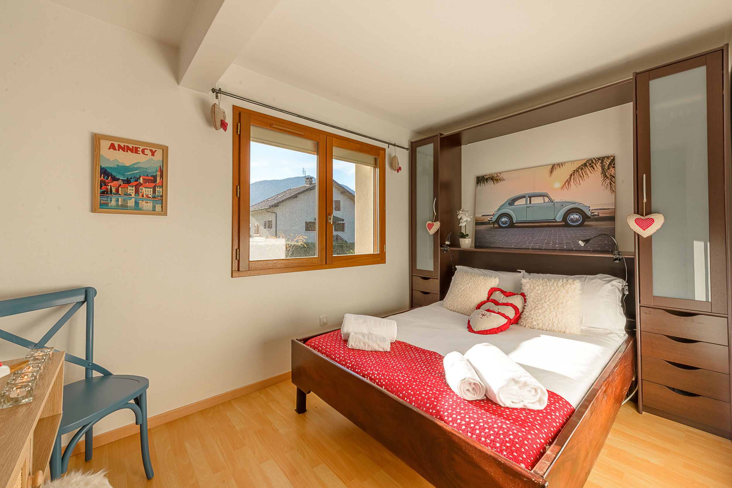 In winter, the ski resorts of La Clusaz and Grand-Bornand are just 40 minutes away. The family resort of Le Semnoz is just 20 minutes away.