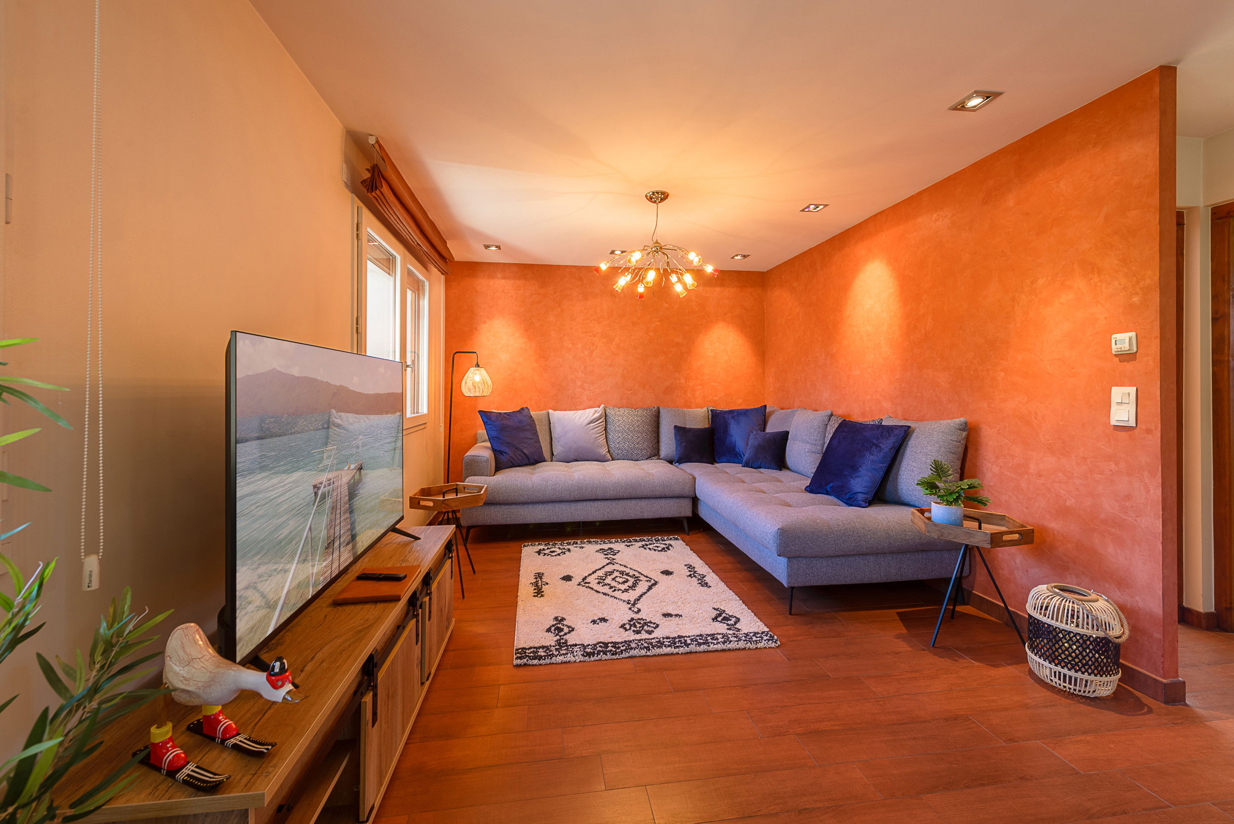 - Lounge with large corner sofa and connected television
