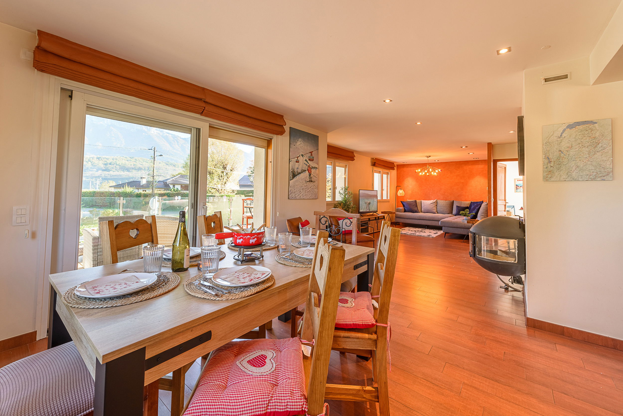 - Living room with dining area and extendable table for 8 people