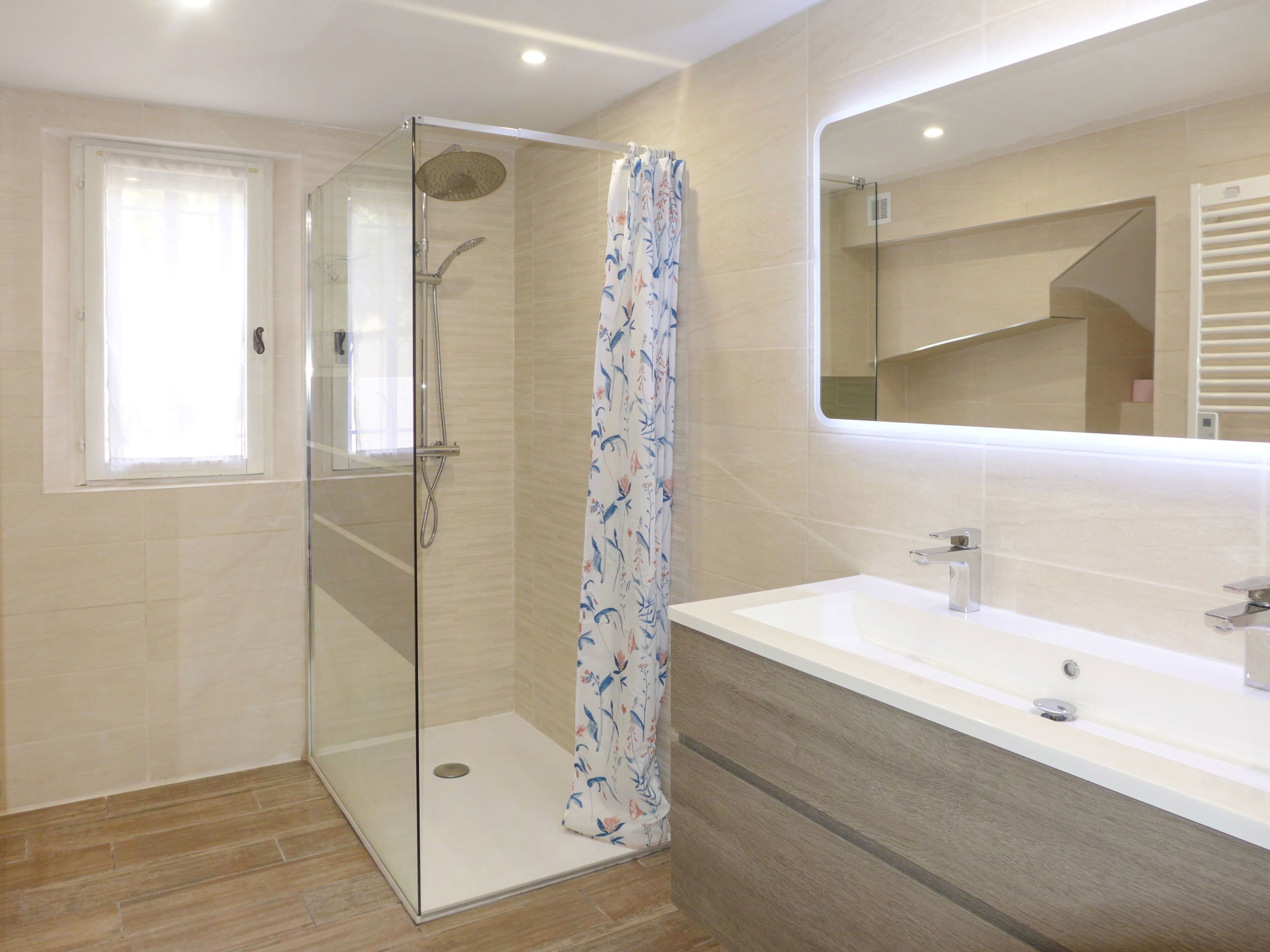 Villa "Chopin", renovated in 2017. In the district of la Bouverie, 500 m from the centre, 20 km from the sea, in a cul-de-sac. Private: natural state property (fenced), swimming pool heated (11 x 4 m, depth 130 - 190 cm, seasonal availability: 01.May. - 31.Aug.) with salt-electrolysis pool-cleaning system. Unconventional pool shape. Outdoor shower, pool house with fridge, boules, barbecue, parking (for 3 cars). Grocery, bakery, café 500 m, bus stop "Coeur de la Bouverrie" 500 m, railway station "Fréjus" 20 km, sandy beach "Plage de Saint Aygulf" 19 km pebble beach "Calanques des Louvans" 18 km, diving center 27 km, thermal baths "Thalasso de Port Fréjus" 21 km. Sports harbour 15 km, golf course (18 hole) 13 km, sailing school 22 km, riding stable 2 km. Nearby attractions: Aqualand, Lunapark 17 km, Fréjus 20 km, St Raphael 22 km, Saint Tropez 45 km. Well-known ski regions can easily be reached: Auron, Isola 2000 160 km. Well-known lakes can easily be reached: Lac de St Cassien 50 km, Lac du Du Verdon 90 km. Hiking paths: Estérel 35 km. Possibility to heat the swimming pool (surcharge) - only on request at least 1 week in advance. ,A paying electric terminal is available (surcharge) - only on request at least 1 week in advance.
