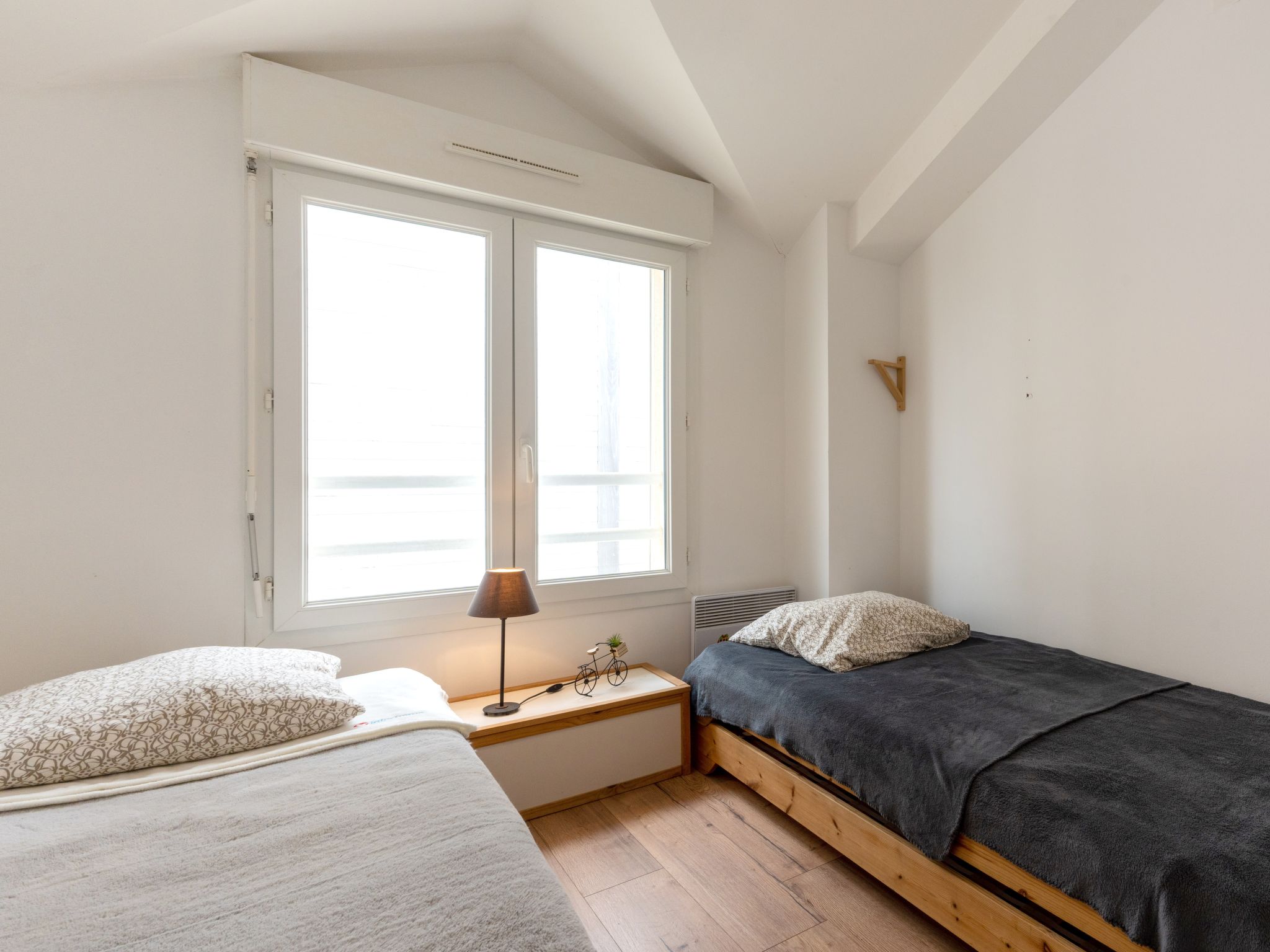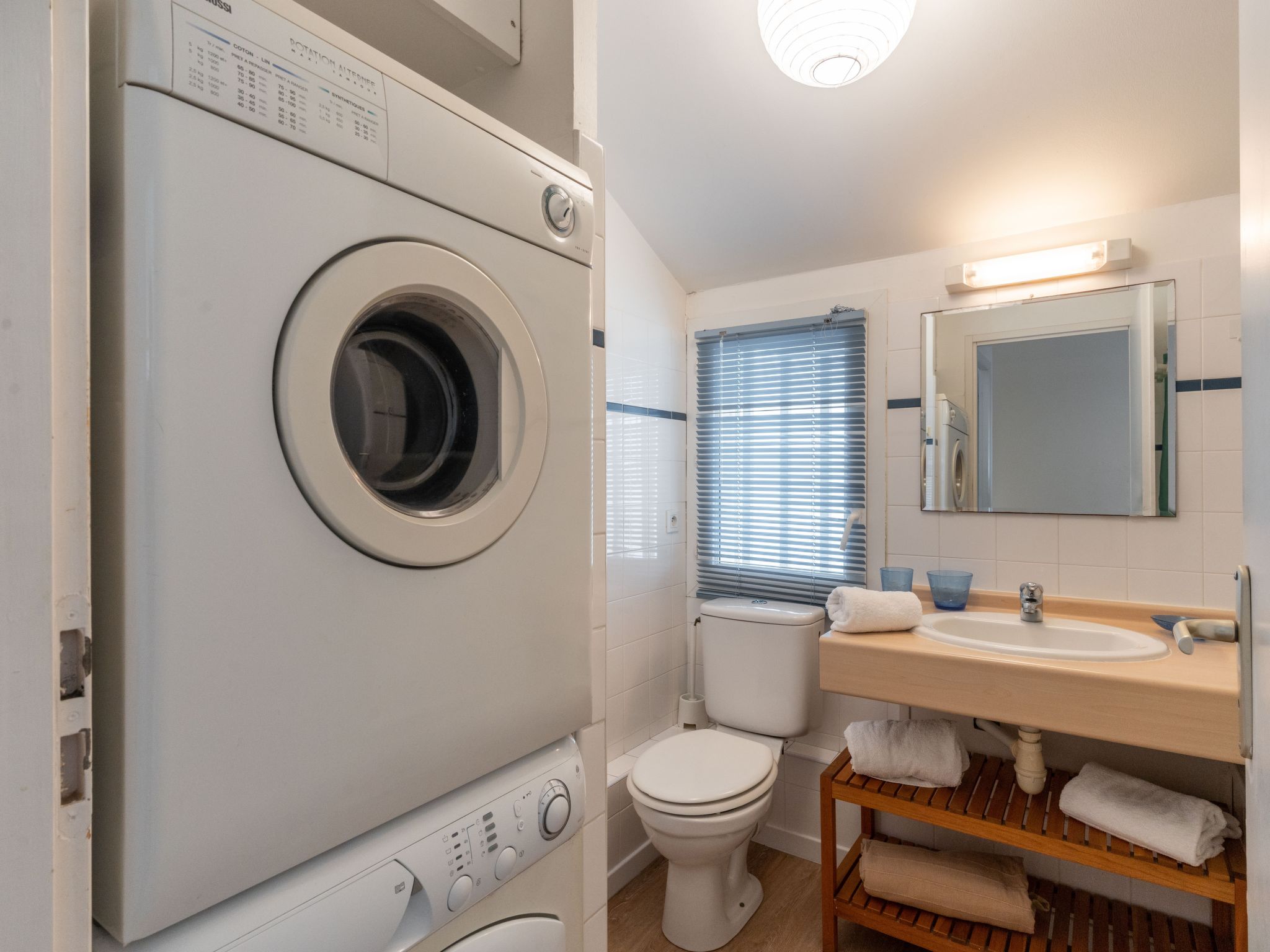 3-room terraced house 55 m2 on 2 levels. Beautiful furnishings: living/dining room with satellite TV and international TV channels (flat screen), hi-fi system. Exit to the terrace. Kitchenette (oven, dishwasher, 3 ceramic glass hob hotplates, microwave). Sep. WC. Upper floor: 1 room with 1 french bed (1 x 140 cm, length 190 cm). 1 room with 2 beds (90 cm, length 190 cm). Bath/WC. Electric heating. Terrace 20 m2 partly roofed, south facing position. Terrace furniture, deck chairs (2). View of. Facilities: washing machine, dryer. Internet (WiFi, free). Parking. Please note: maximum 1 pet/ dog allowed. Smoke alarm.