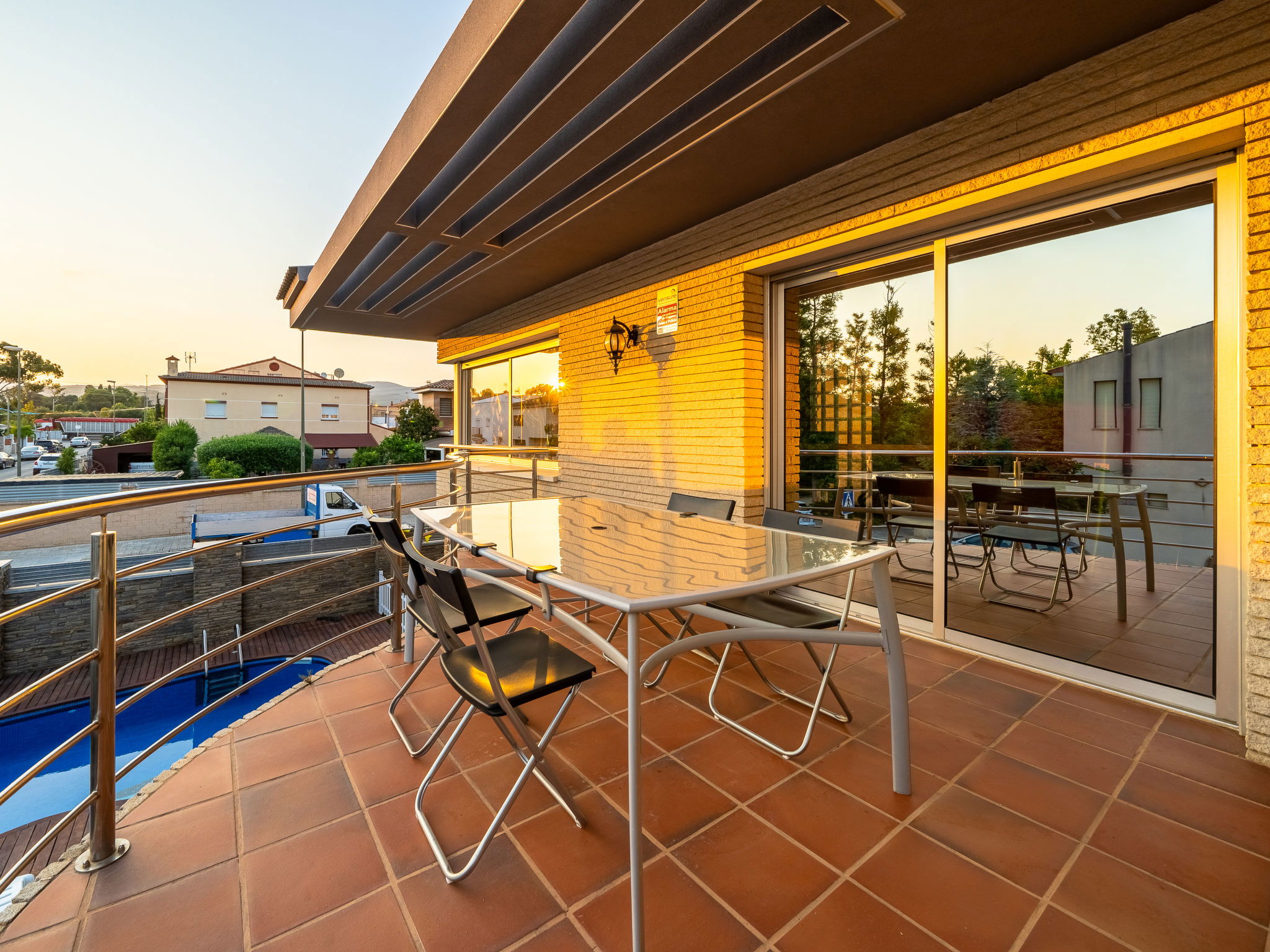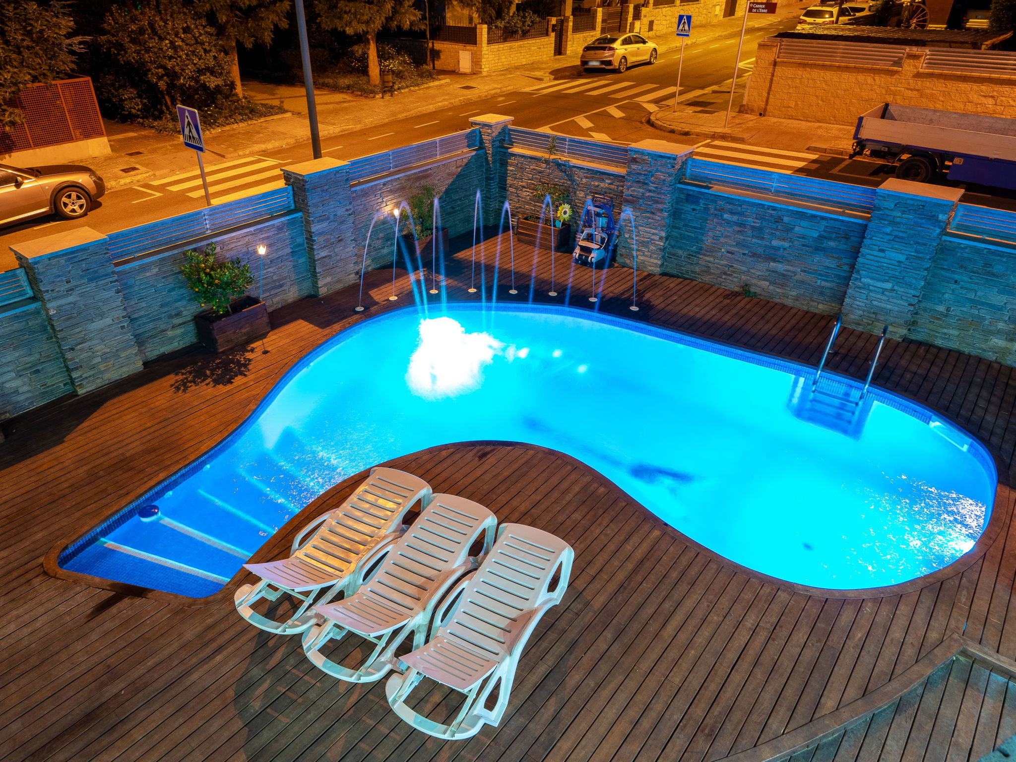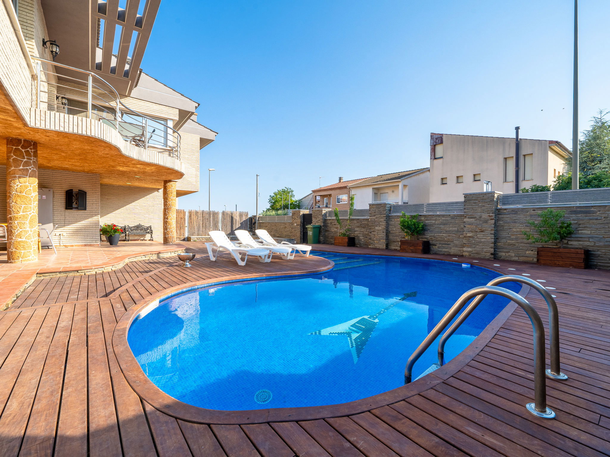 Reus: Luxurious villa "Villa Luxury Rock Tirri", 2 storeys, built in 2000. In a quiet, sunny position residential area (villas), traffic calmed area. Private: beautiful garden to relax, swimming pool kidney shaped (8 x 3 m, depth 130 - 180 cm, seasonal availability: 01.Jan. - 31.Dec. and 01.Jan. - 31.Dec.). Patio, arbour (swing). In the house: lounge, WiFi, fitness room, solarium, hot tub, billiard table, table football, air conditioning, laundry, washing machine, drying room. Bus stop 300 m. Golf course (18 hole) 2 km. Nearby attractions: Parque temático PORTAVENTURA 13 km, Ferrari Land 13 km, Acquapolis 13 km, Gaudí Golf Club 2 km, Lumine Golf Club 13 km. Please note: car recommended. The owner does not accept any youth groups. Airfield close by 5 km from the property.