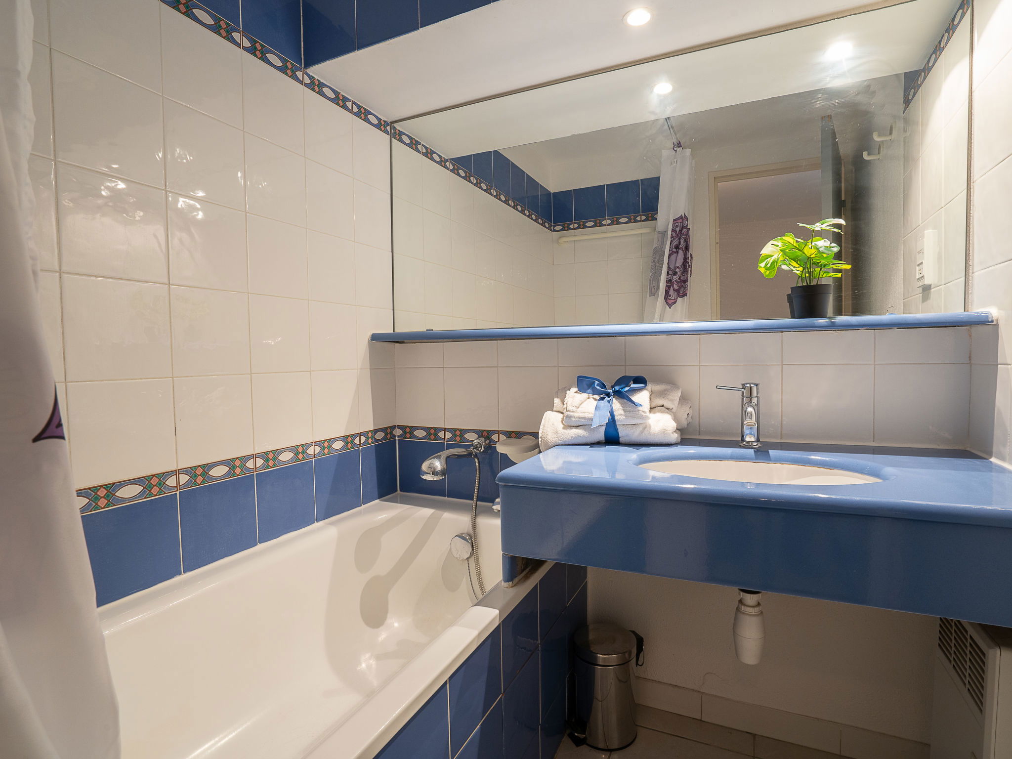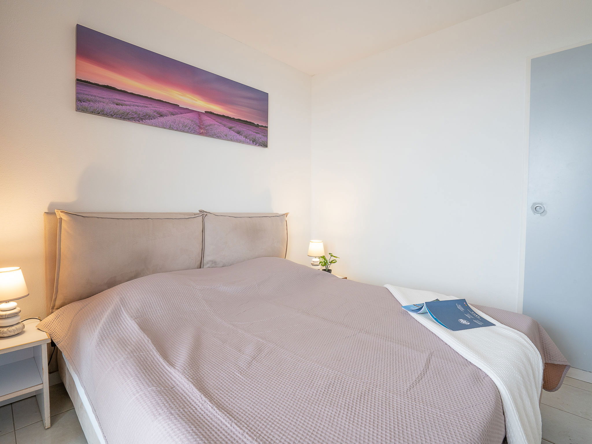 "Les Bastides ", 4-room apartment 60 m2 on 2 levels, on the upper ground floor. Living room with TV (flat screen), air conditioning. Exit to the terrace, to the patio. Open kitchen (4 hot plates, dishwasher, toaster, kettle, microwave, freezer, electric coffee machine, Capsules for coffee machine (tassimo) extra). Upper floor: 1 room with 1 french bed (160 cm, length 200 cm), air conditioning. Exit to the terrace. 1 room with 1 x 2 bunk beds (80 cm, length 190 cm), air conditioning. Exit to the terrace. 1 room with 2 beds (80 cm, length 190 cm). Bathroom, shower, 2 sep. WC's. Electric heating. Terrace 12 m2, terrace 10 m2, patio. Terrace furniture. View of the sea. Facilities: washing machine. Internet (WiFi, free). Parking (1 car) at the house. Please note: non-smokers only. 1 small pet/ dog allowed. Smoke alarm. Offer by a private individual according to Art. 155, IV of CGI.