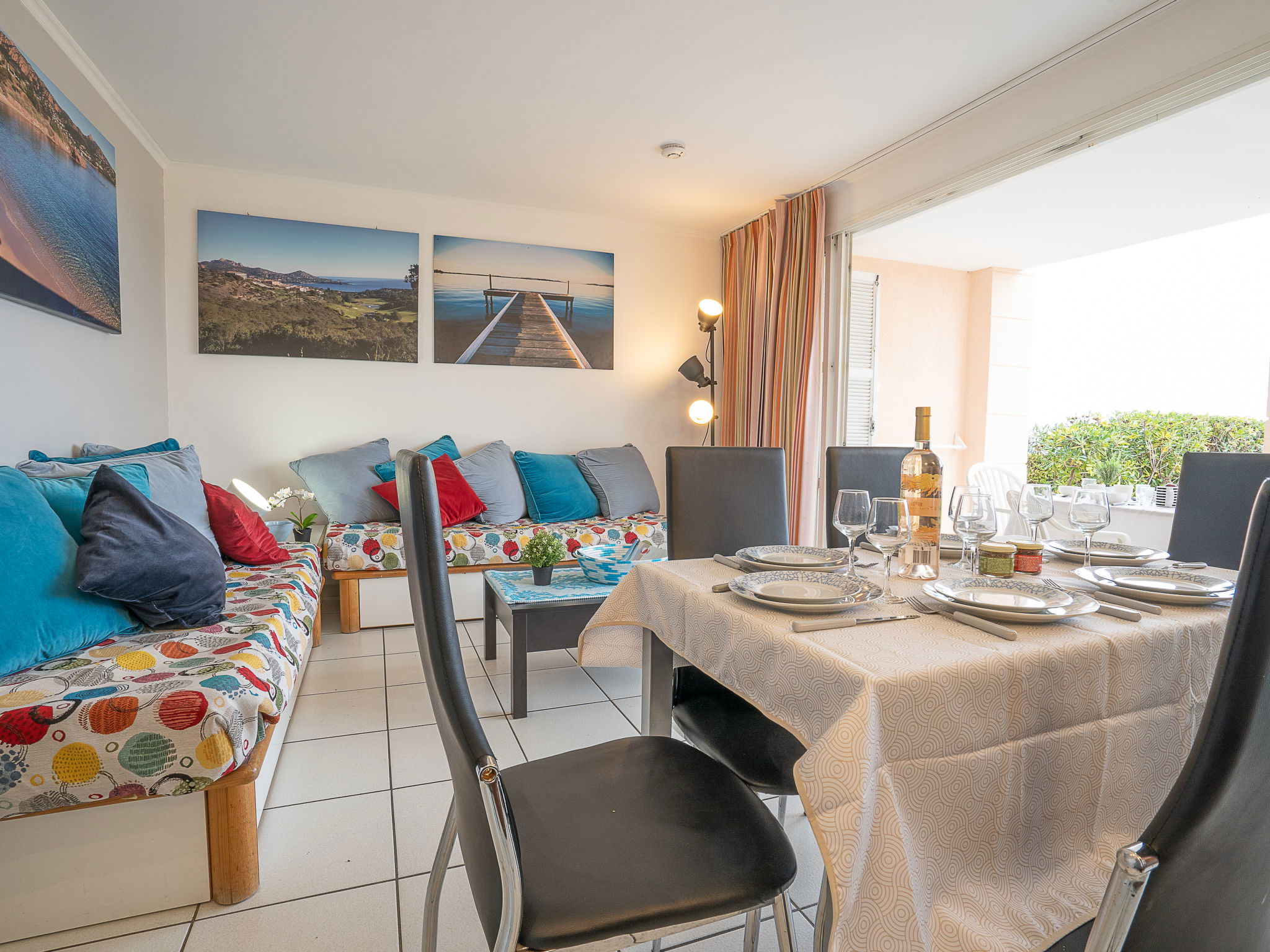 Large resort "Village Cap Estérel - Les Bastides". On the outskirts, 2 km from the centre of Agay, on a slope, in the residential district, 900 m from the sea, 1.8 km from the beach, road to cross, on the golf course, in a pedestrian area. For shared use: park 210 ha, 5 swimming pools (seasonal availability: 06.Apr. - 03.Nov.). Children's pool, boccia, children's playground (slide, swing). In the complex: spa area (extra), shopping facilities, laundry (extra). Shop 500 m, grocery, supermarket 6 km, restaurant 500 m, bakery 500 m, bus stop "Ligne 21" 300 m, railway station "Saint-Raphaël-Valescure TGV" 9 km, sandy beach "Tiki Plage" 900 m. Marina 1 km, golf course (9 hole), tennis 500 m. Nearby attractions: Anthéor 8 km, Saint-Raphaël 9 km, Fréjus 13 km, Cannes 33 km, Saint-Tropez 50 km, Nice 76 km. Well-known lakes can easily be reached: Lac Saint-Cassien. Hiking paths: Massif de l'Estérel. Please note: car-free holiday complex, no lift. Entertainment in the season. Suitable for families, childminding in the season (extra). Guarded residence. Additional accommodations can be booked. Access to the apartments is via steps, even on the ground floor.