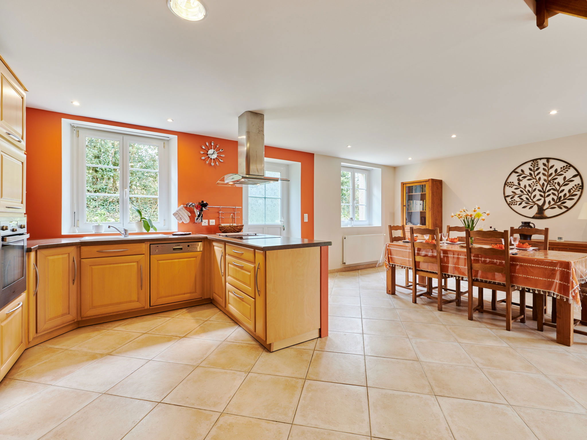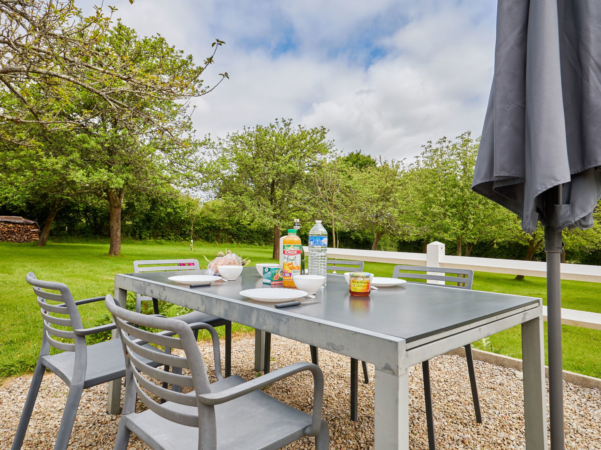 Beautiful, rustic house "Le Lanchon". In the hamlet La Tainnerie 3.5 km from the centre of Le Vrétot, 8 km from the centre of Barneville-Carteret, 32 km from the centre of Cherbourg, 11 km from the sea, in the countryside. Private: large garden 3'000 m2 with trees, meadow, orchard. Motor access (250 m via unmade road). Parking on the premises. Shop 3.5 km, supermarket 8 km, bus stop "Maison du Biscuit" 2 km, sandy beach 11 km, indoor swimming pool 16 km. Golf course (18 hole) 11 km.