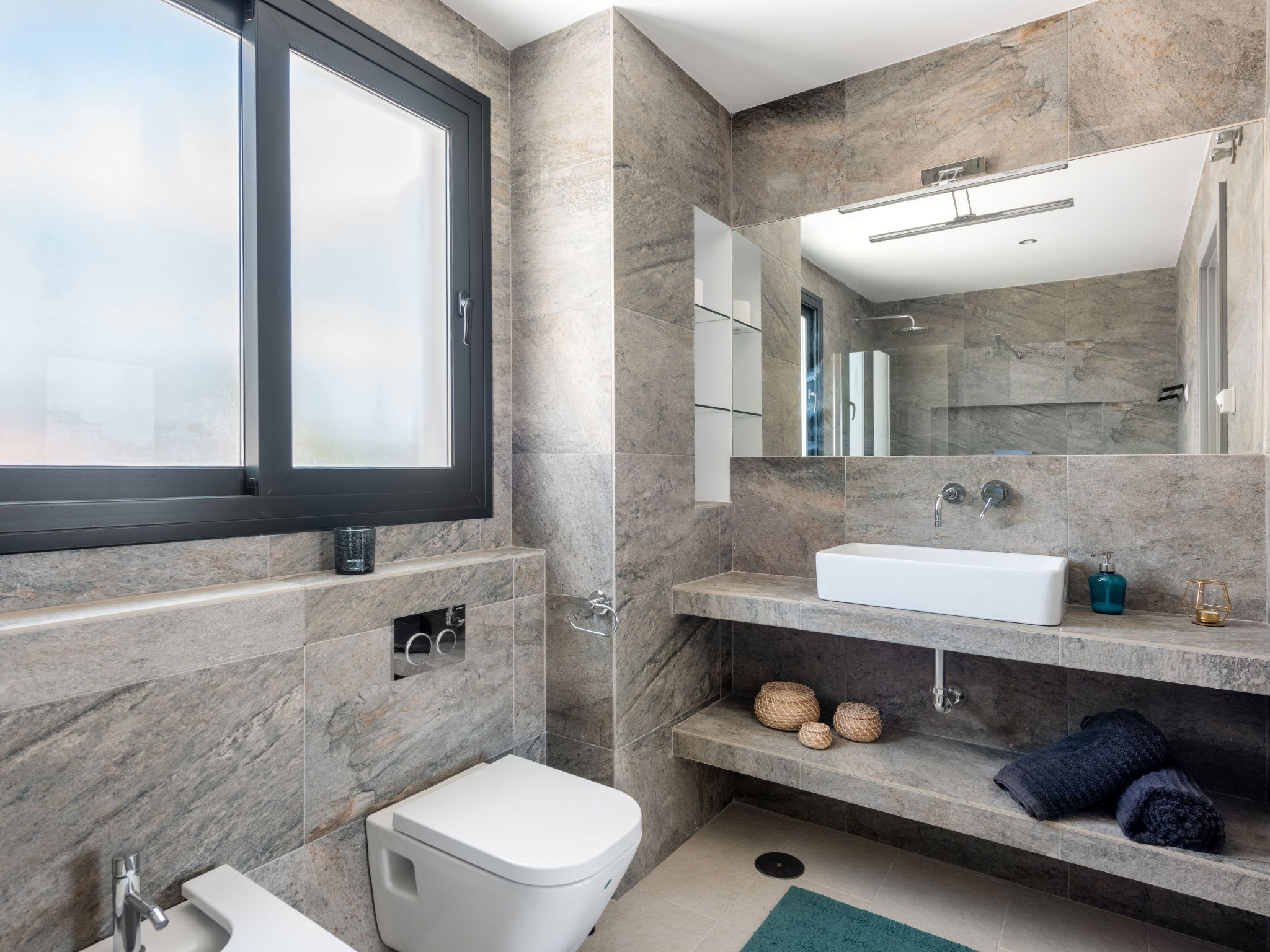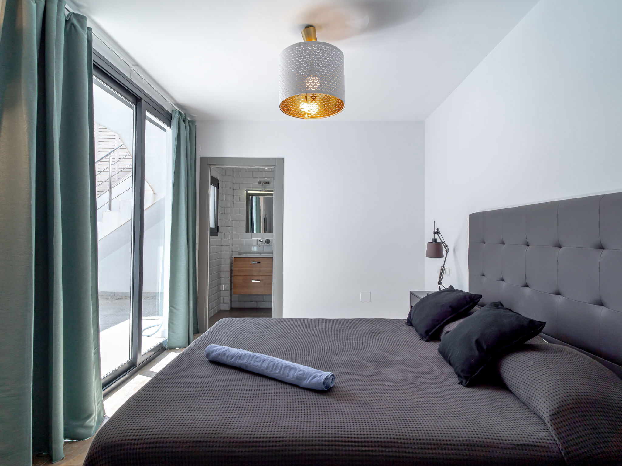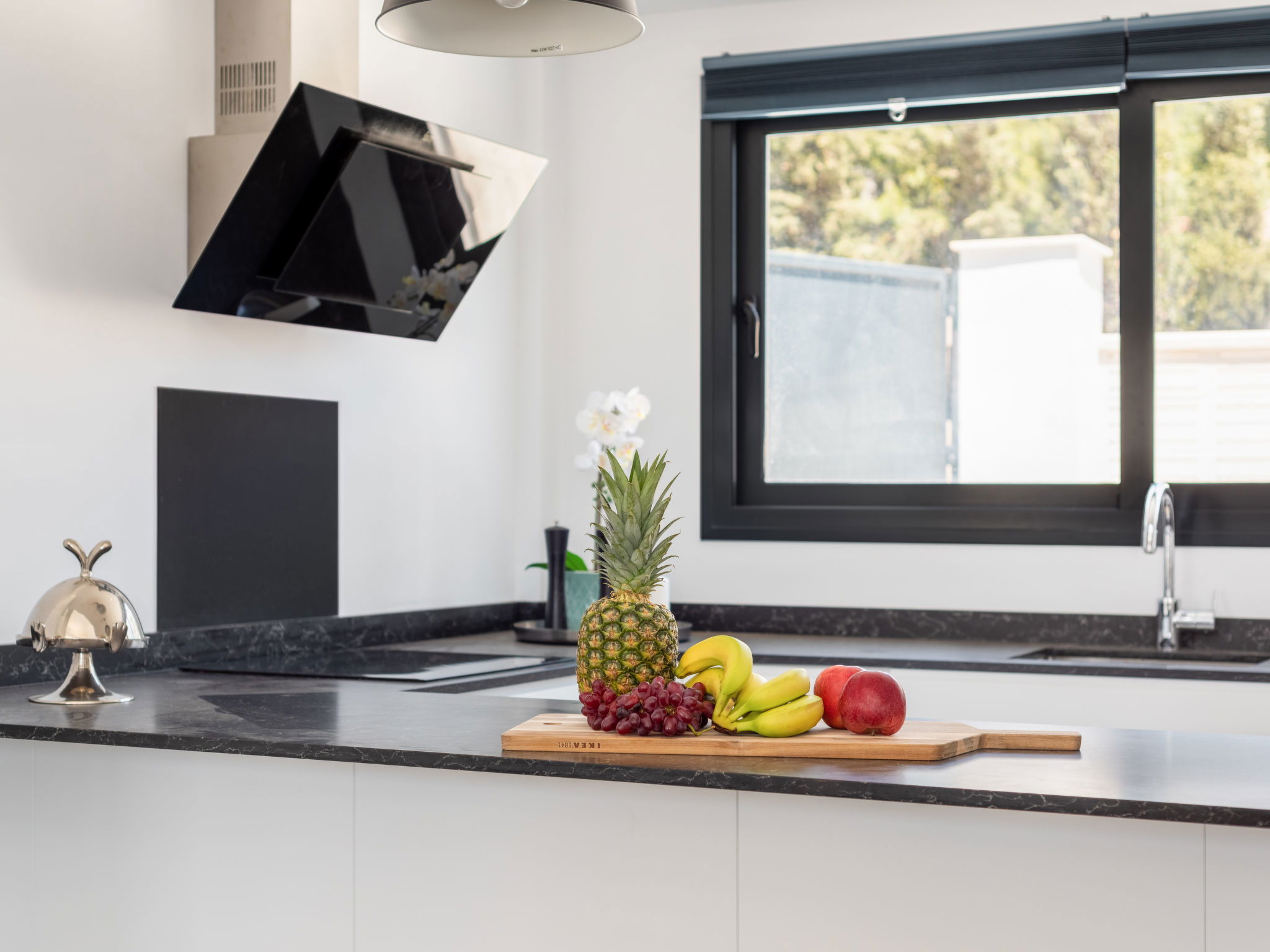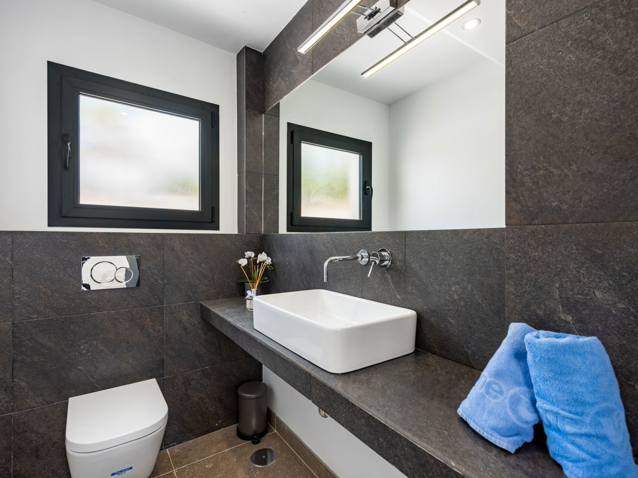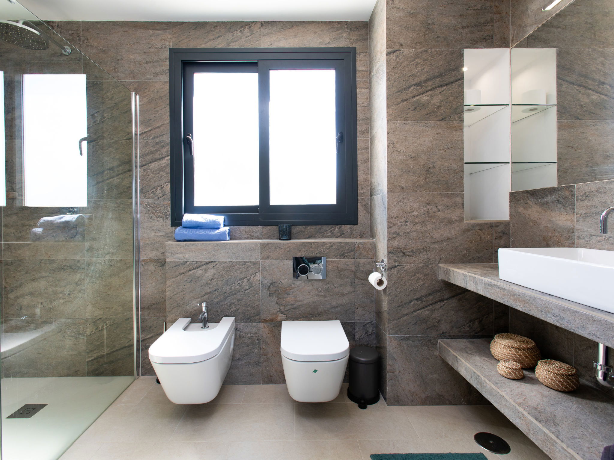 "Aldea", 5-room villa 120 m2. Spacious and bright, comfortable furnishings: living/dining room with TV, international TV channels, air conditioning and forced-air heating. Open kitchen (oven, dishwasher, 3 induction hot plates, toaster, kettle, microwave, freezer, electric coffee machine). Sep. WC. On the lower ground floor: 1 room with 2 beds (90 cm, length 200 cm), air conditioning and forced-air heating. 1 room with 1 french bed (180 cm, length 200 cm), air conditioning and forced-air heating. Exit to the terrace, to the swimming pool. Lounge with air conditioning and forced-air heating. Exit to the terrace, to the swimming pool. 1 room with 2 beds (90 cm, length 200 cm), air conditioning and forced-air heating. 2 baths/WC. Upper floor: 1 room with 1 french bed (180 cm, length 200 cm), shower/WC. Exit to the terrace. 2 large terraces. Terrace furniture, barbecue, deck chairs. Side view of the sea and the resort. Facilities: washing machine, iron, children's high chair, baby cot, hair dryer. Internet (WiFi, free). The Television is Smart , Private pool can be heated, costs 20 euros per day to warm up. VUT/MA50852 // Reg. Nr.: ESFCTU00002901300101534300000000000000000VUT/MA508528