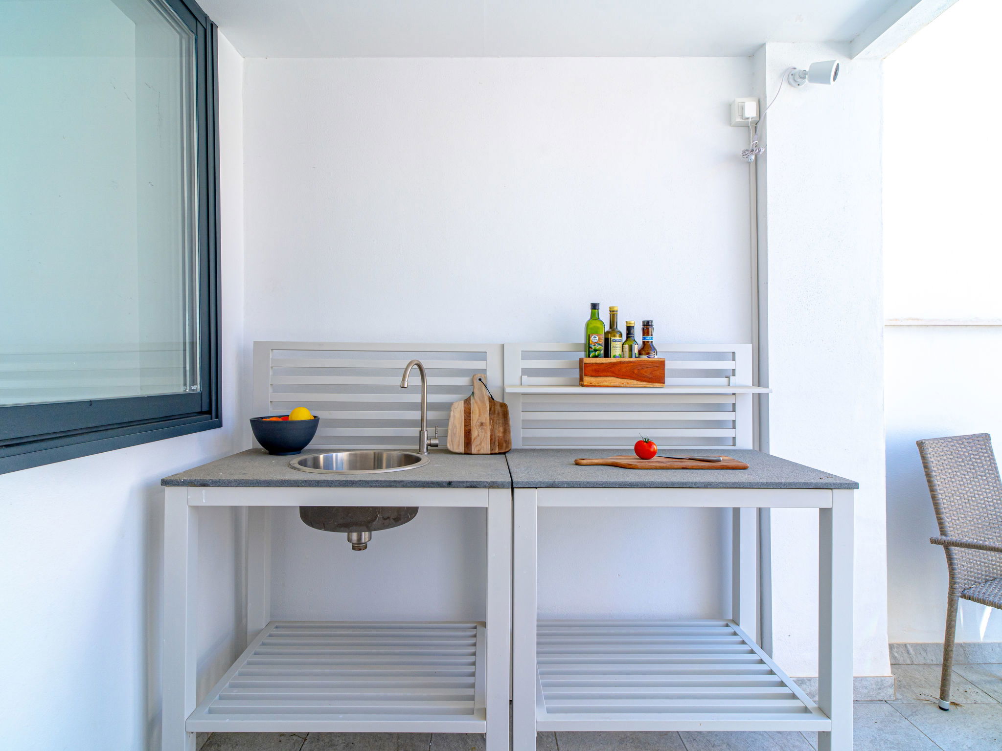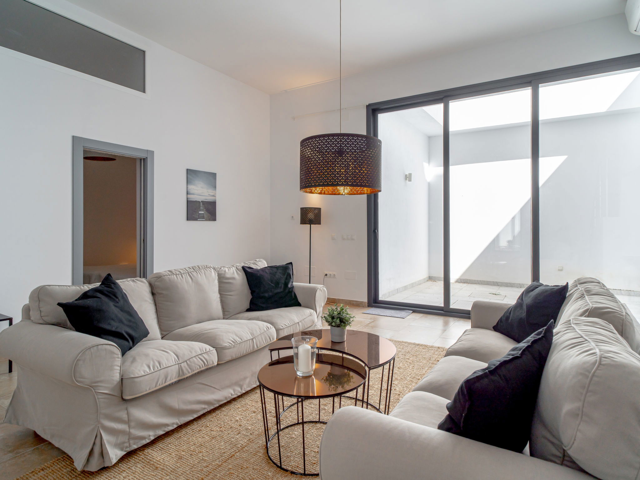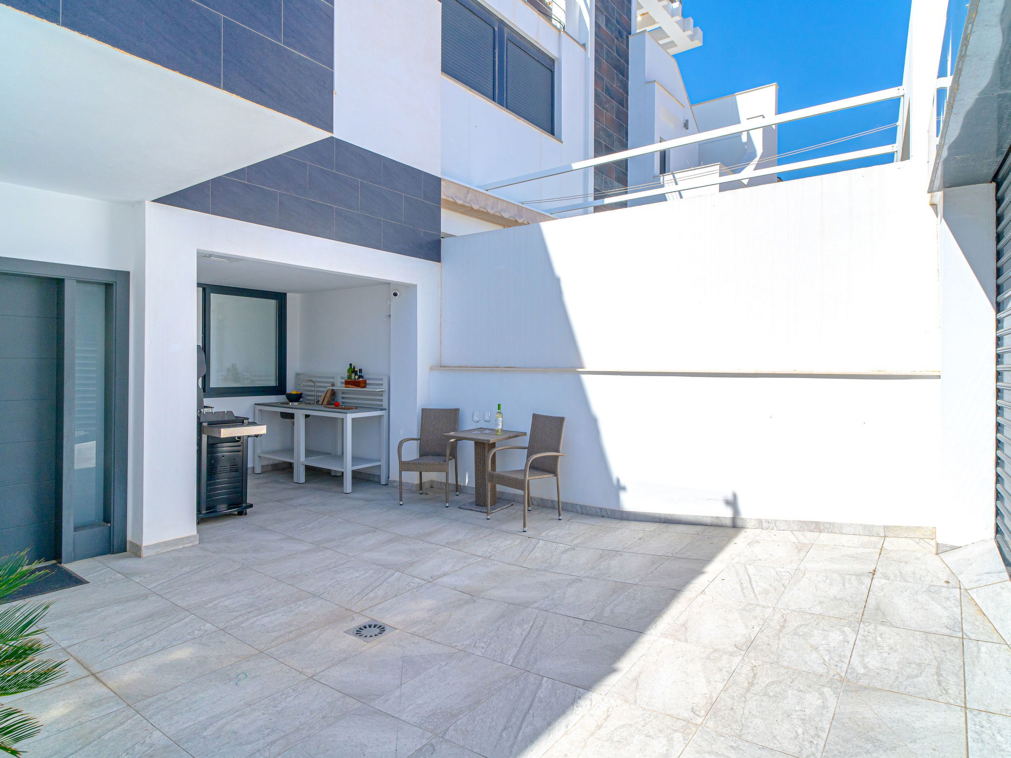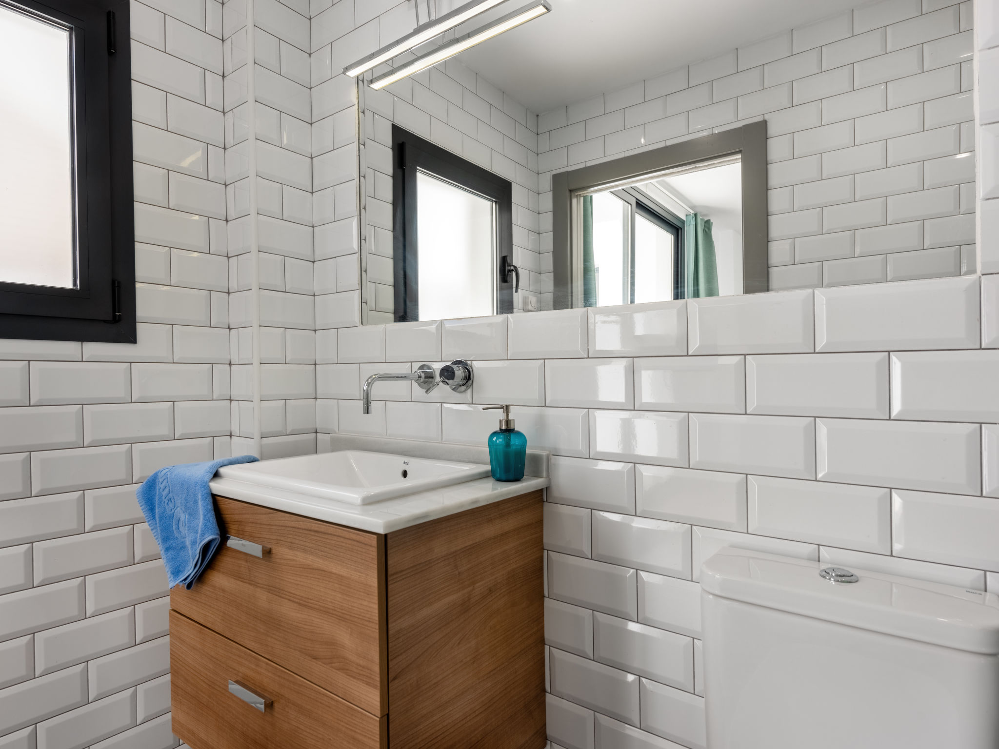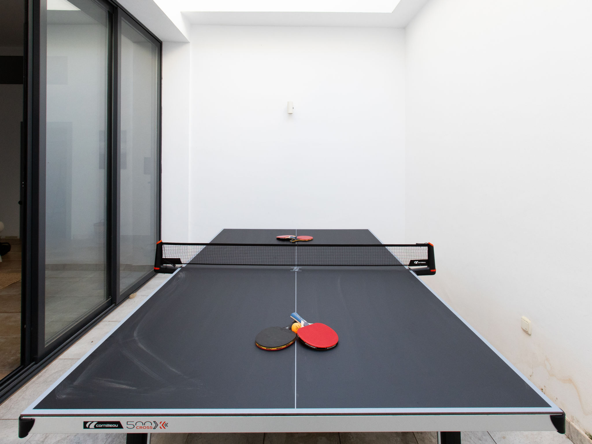 "Aldea", 5-room villa 120 m2. Spacious and bright, comfortable furnishings: living/dining room with TV, international TV channels, air conditioning and forced-air heating. Open kitchen (oven, dishwasher, 3 induction hot plates, toaster, kettle, microwave, freezer, electric coffee machine). Sep. WC. On the lower ground floor: 1 room with 2 beds (90 cm, length 200 cm), air conditioning and forced-air heating. 1 room with 1 french bed (180 cm, length 200 cm), air conditioning and forced-air heating. Exit to the terrace, to the swimming pool. Lounge with air conditioning and forced-air heating. Exit to the terrace, to the swimming pool. 1 room with 2 beds (90 cm, length 200 cm), air conditioning and forced-air heating. 2 baths/WC. Upper floor: 1 room with 1 french bed (180 cm, length 200 cm), shower/WC. Exit to the terrace. 2 large terraces. Terrace furniture, barbecue, deck chairs. Side view of the sea and the resort. Facilities: washing machine, iron, children's high chair, baby cot, hair dryer. Internet (WiFi, free). The Television is Smart , Private pool can be heated, costs 20 euros per day to warm up. VUT/MA50852 // Reg. Nr.: ESFCTU00002901300101534300000000000000000VUT/MA508528