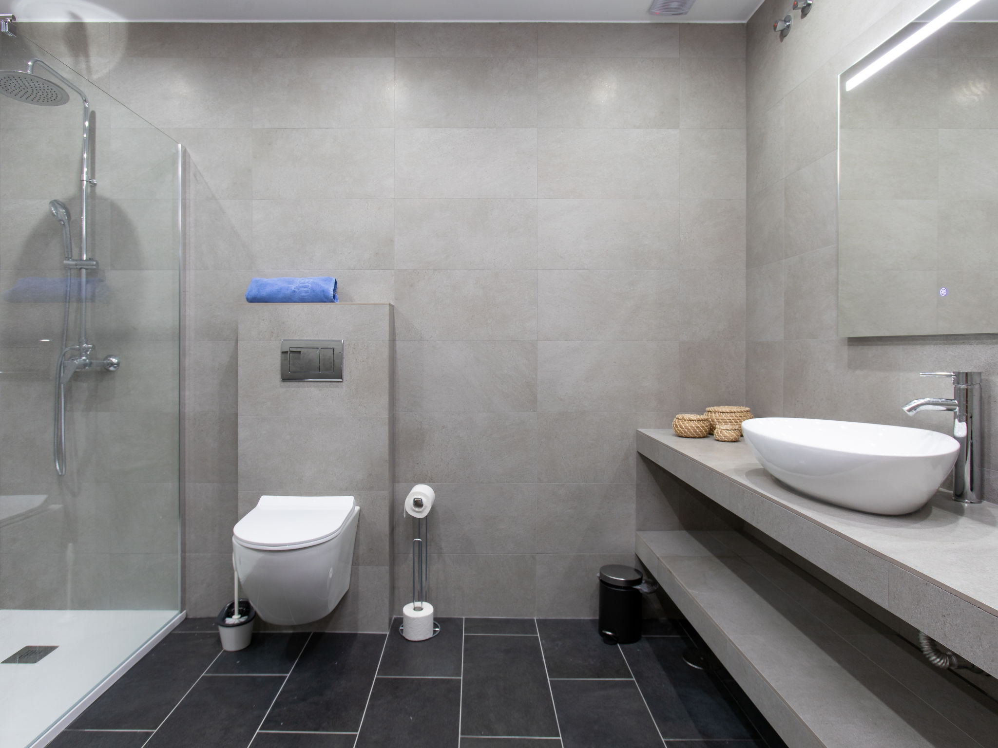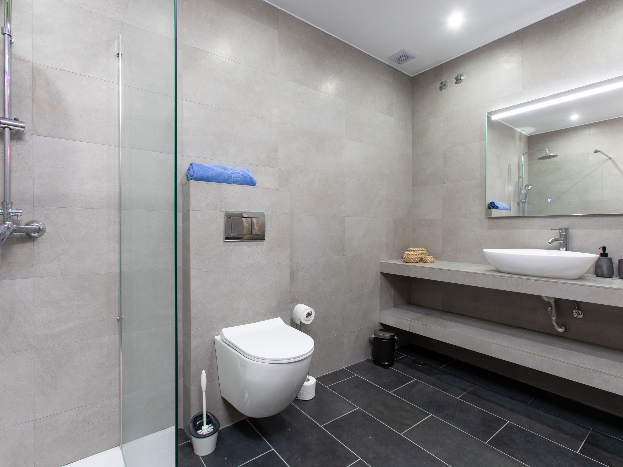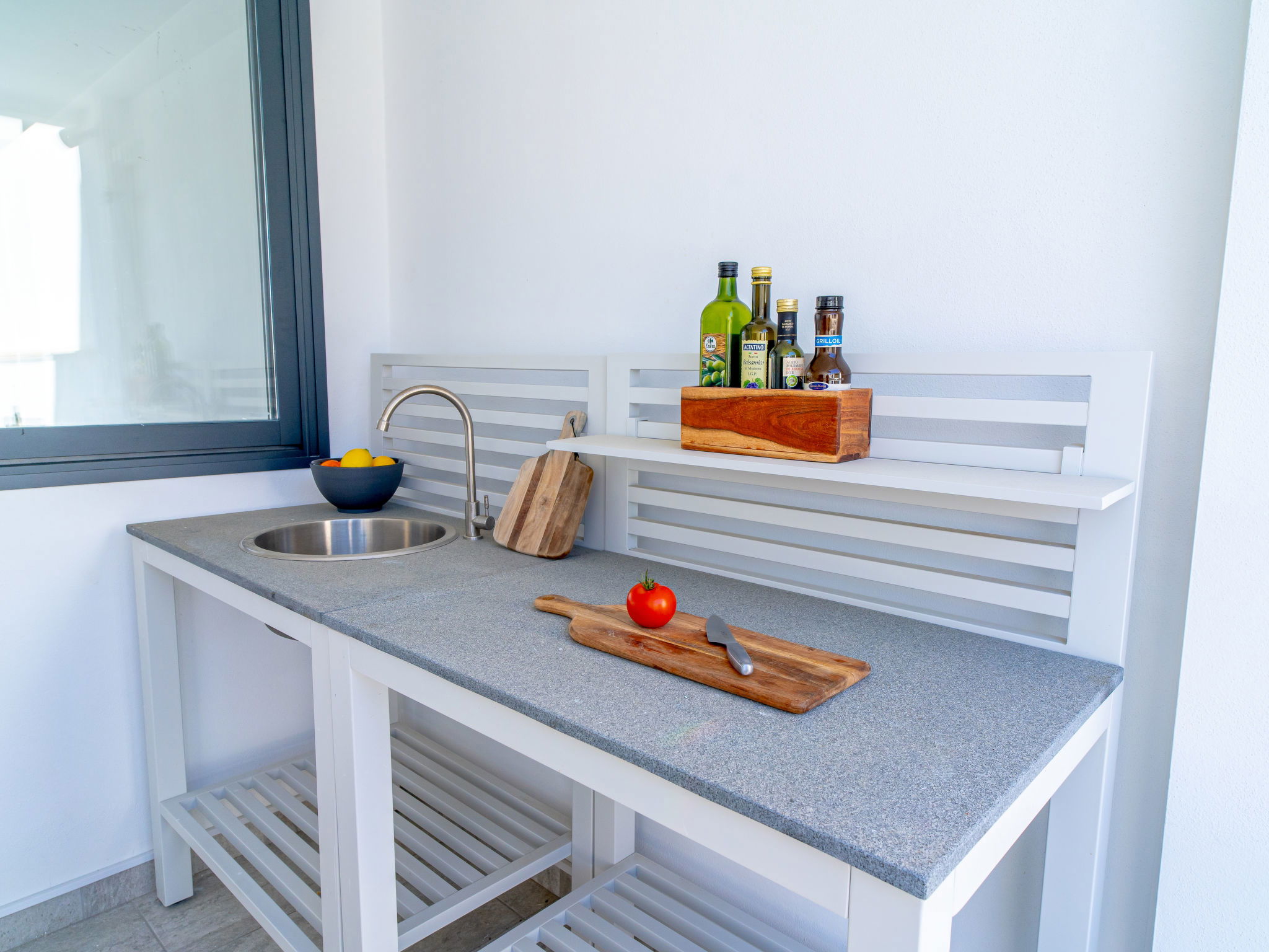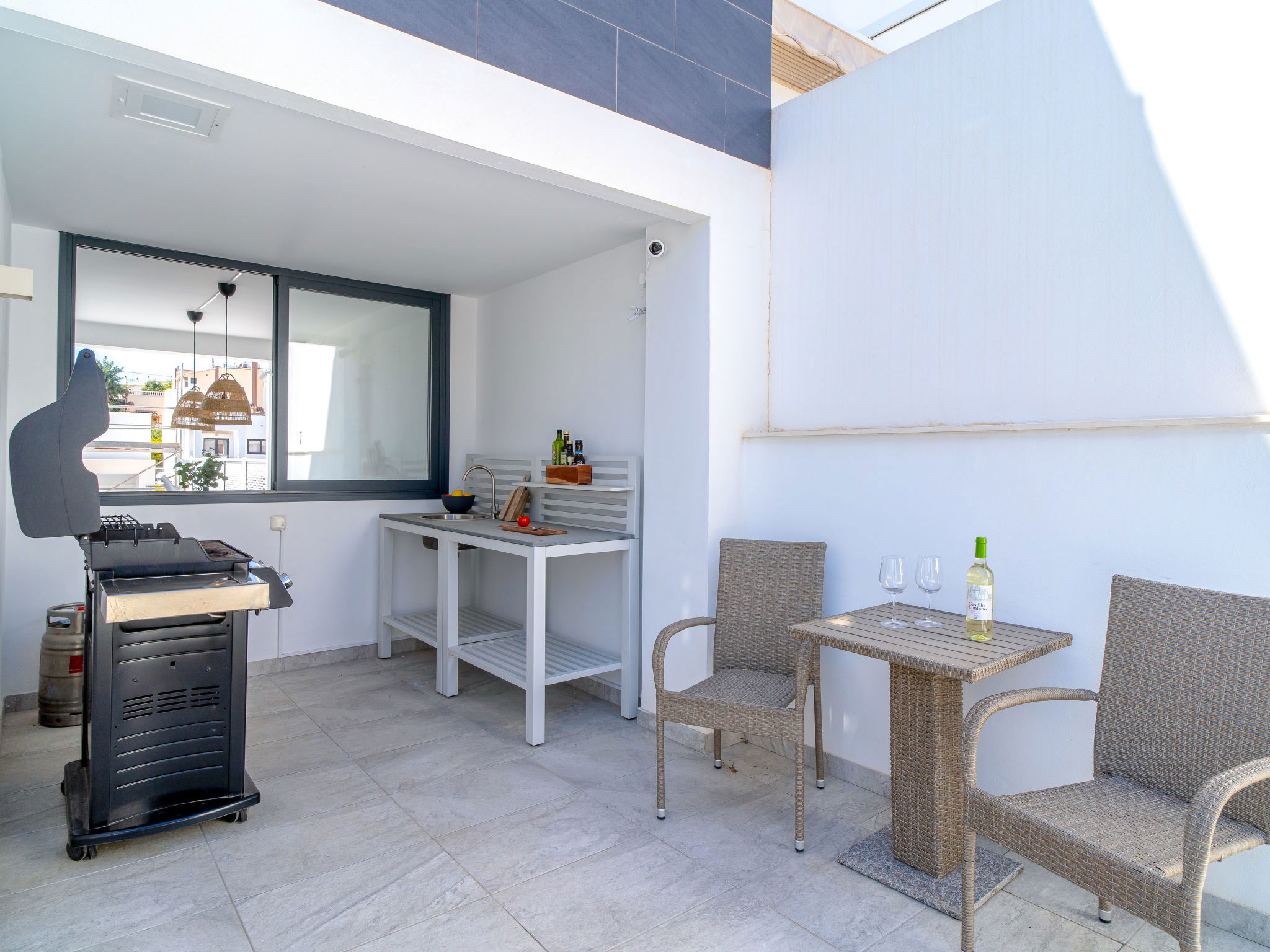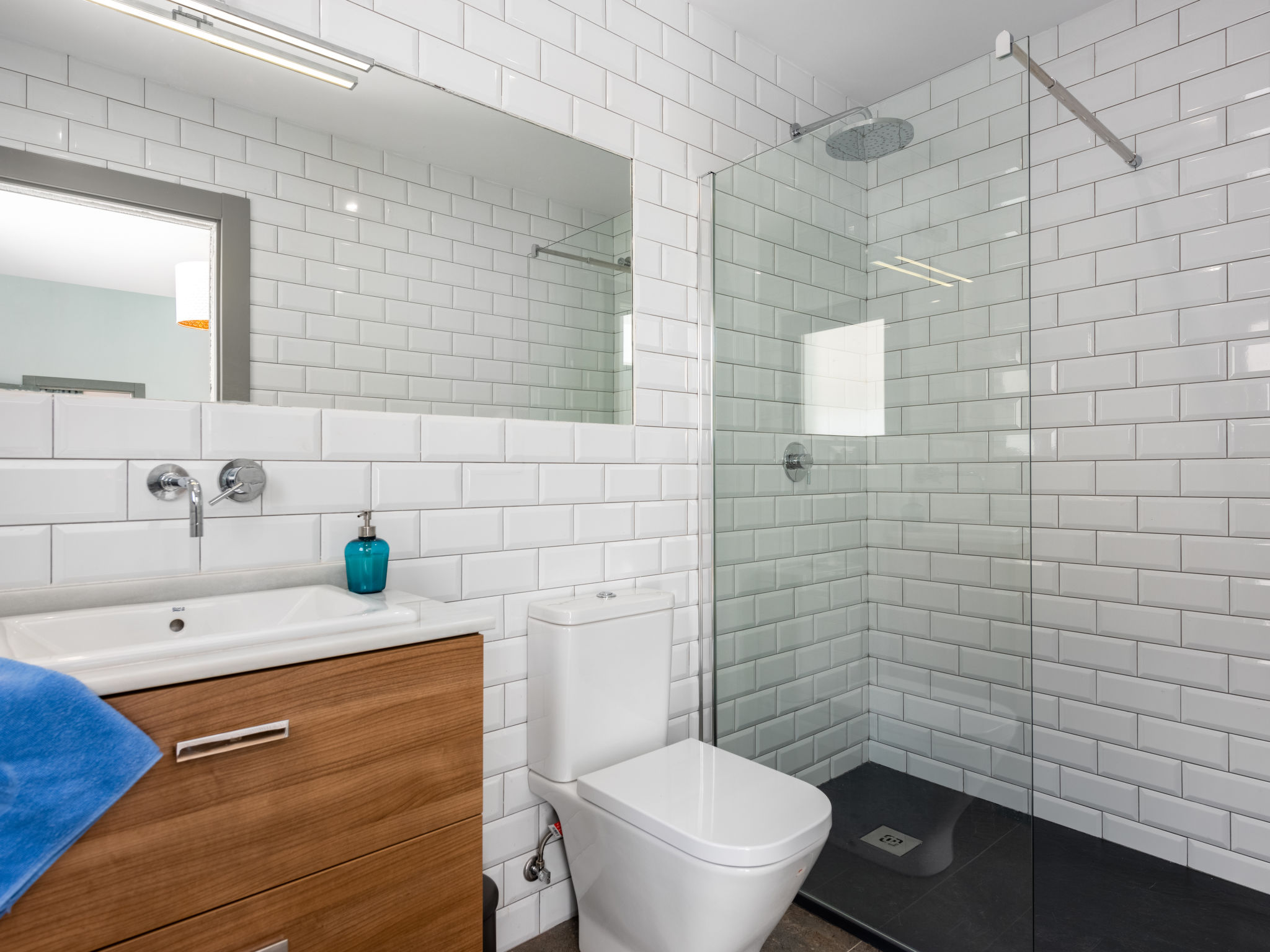 "Aldea", 5-room villa 120 m2. Spacious and bright, comfortable furnishings: living/dining room with TV, international TV channels, air conditioning and forced-air heating. Open kitchen (oven, dishwasher, 3 induction hot plates, toaster, kettle, microwave, freezer, electric coffee machine). Sep. WC. On the lower ground floor: 1 room with 2 beds (90 cm, length 200 cm), air conditioning and forced-air heating. 1 room with 1 french bed (180 cm, length 200 cm), air conditioning and forced-air heating. Exit to the terrace, to the swimming pool. Lounge with air conditioning and forced-air heating. Exit to the terrace, to the swimming pool. 1 room with 2 beds (90 cm, length 200 cm), air conditioning and forced-air heating. 2 baths/WC. Upper floor: 1 room with 1 french bed (180 cm, length 200 cm), shower/WC. Exit to the terrace. 2 large terraces. Terrace furniture, barbecue, deck chairs. Side view of the sea and the resort. Facilities: washing machine, iron, children's high chair, baby cot, hair dryer. Internet (WiFi, free). The Television is Smart , Private pool can be heated, costs 20 euros per day to warm up. VUT/MA50852 // Reg. Nr.: ESFCTU00002901300101534300000000000000000VUT/MA508528