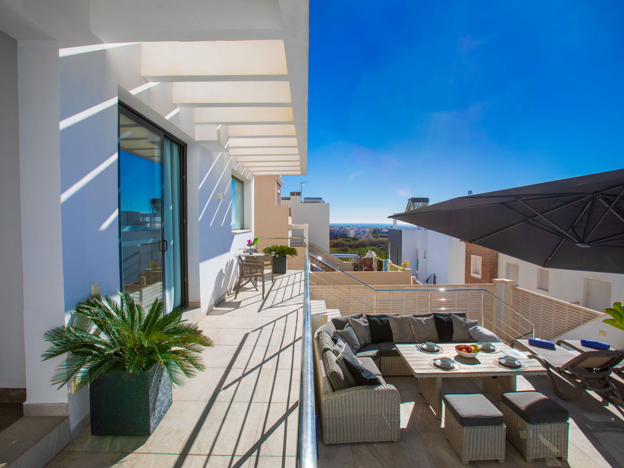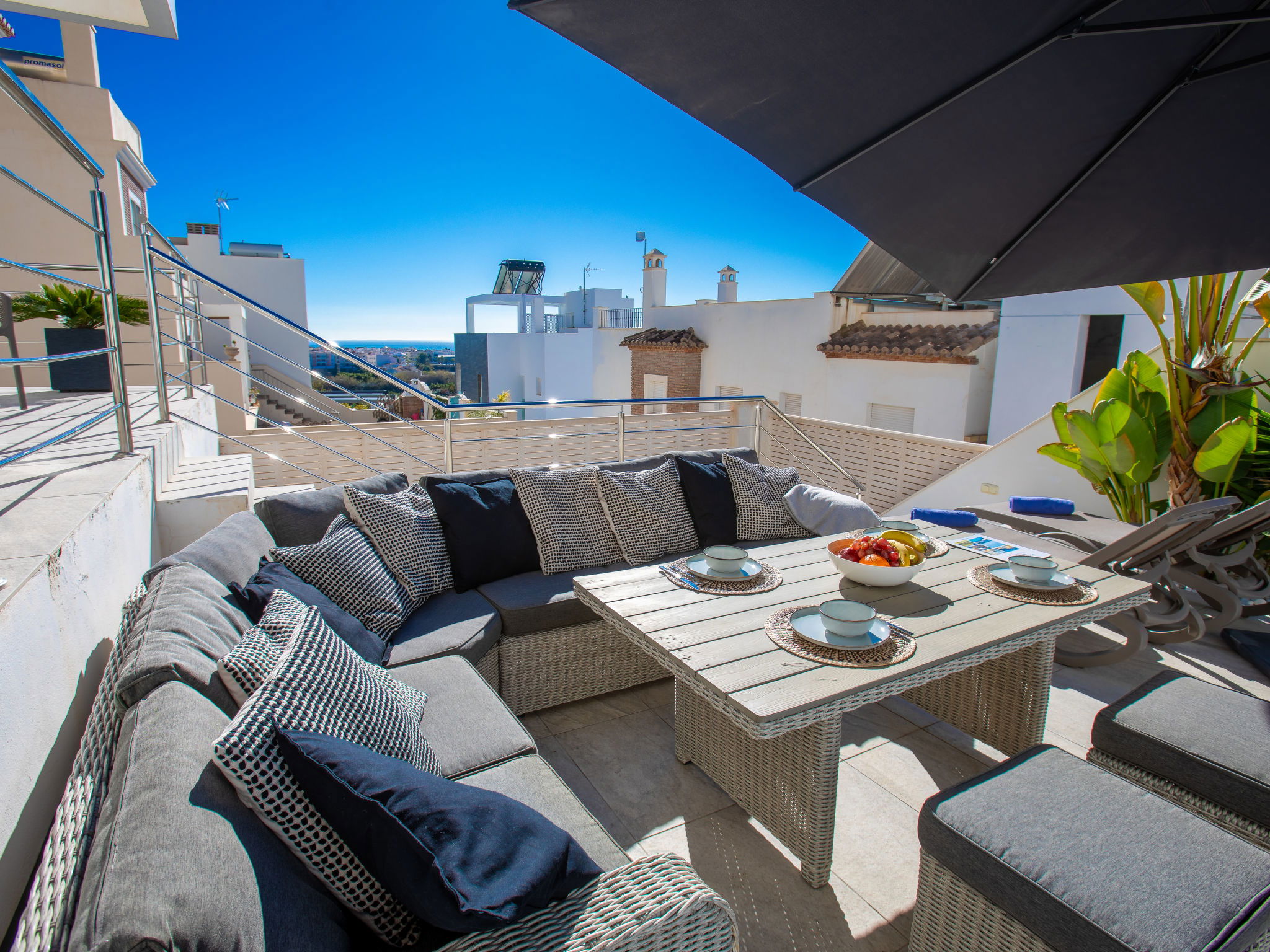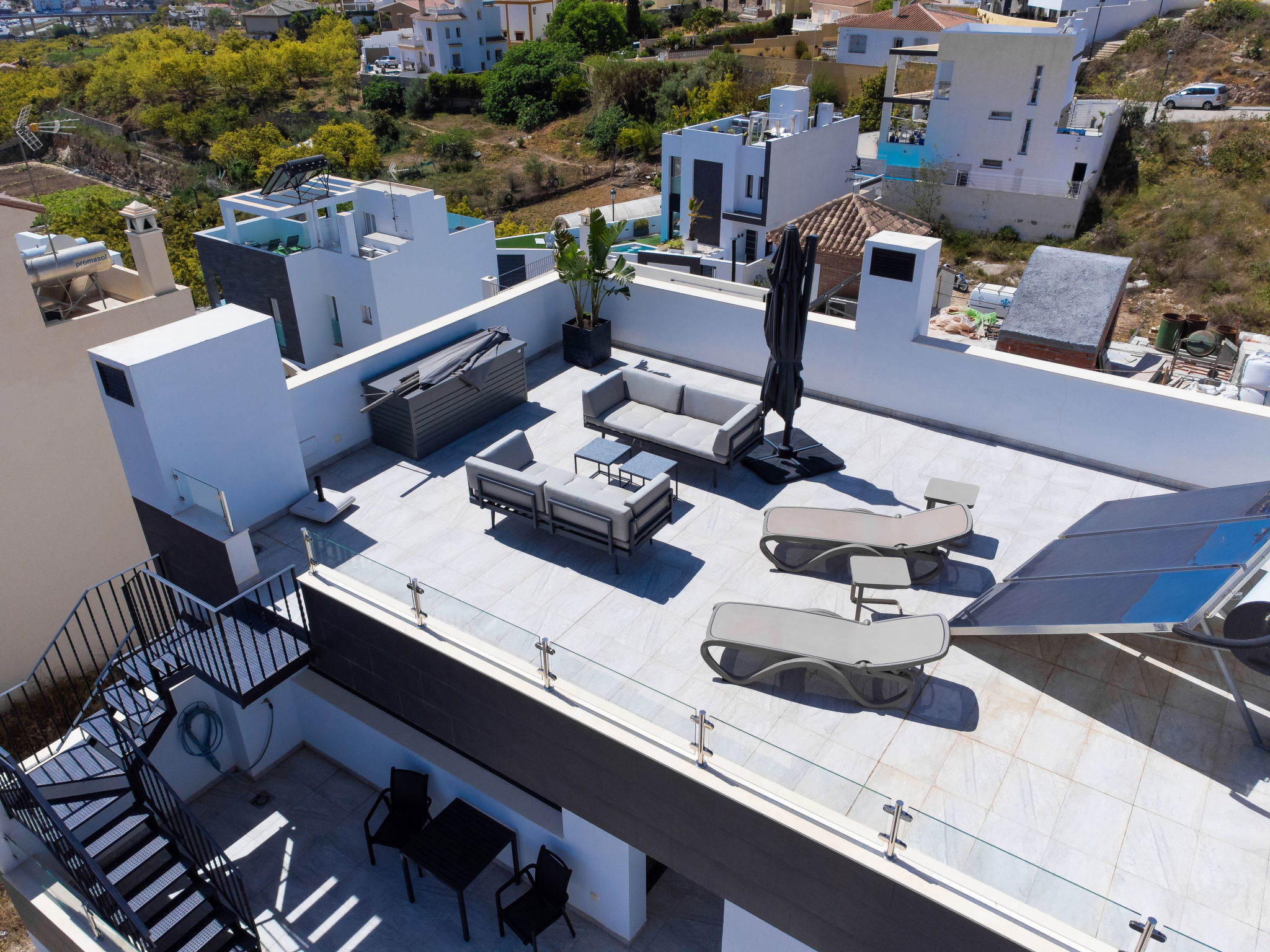 Nerja: Modern, beautiful, comfortable house "Aldea", 3 storeys. In the resort 2 km from the centre of Nerja, in a quiet position in the residential district, residential area (villas), 2 km from the sea, 2 km from the beach. Private: courtyard, swimming pool angular, heated (5 x 2 m, depth 100 - 150 cm, seasonal availability: 01.Jan. - 31.Dec., extra 30). Terrace, garden furniture, barbecue. In the house: sun terrace, washing machine. Shop 1 km, grocery 1 km, supermarket 1 km, shopping centre 23 km, restaurant 1.5 km, bar 1.5 km, bakery 1 km, café 1.5 km, pedestrian zone 2 km, bicycle rental 2 km, pub garden 1.5 km, bus stop 500 m, railway station "Málaga", sandy beach "Burriana" 2 km, diving center 2 km. Sports harbour 20 km, marina 20 km, golf course (18 hole) 22 km, surf school 20 km, sailing school 20 km, tennis 2 km. Nearby attractions: Nerja, Frigiliana, Cuevas de Nerja, Malaga, Granada, Almuñecar. Well-known ski regions can easily be reached: Sierra Nevada. Hiking paths: Sierra Tejeda, Sierra Almijara. Please note: car recommended. Baby equipment (included). The owner does not accept any youth groups. Loading and unloading of baggage is possible at the holiday house.