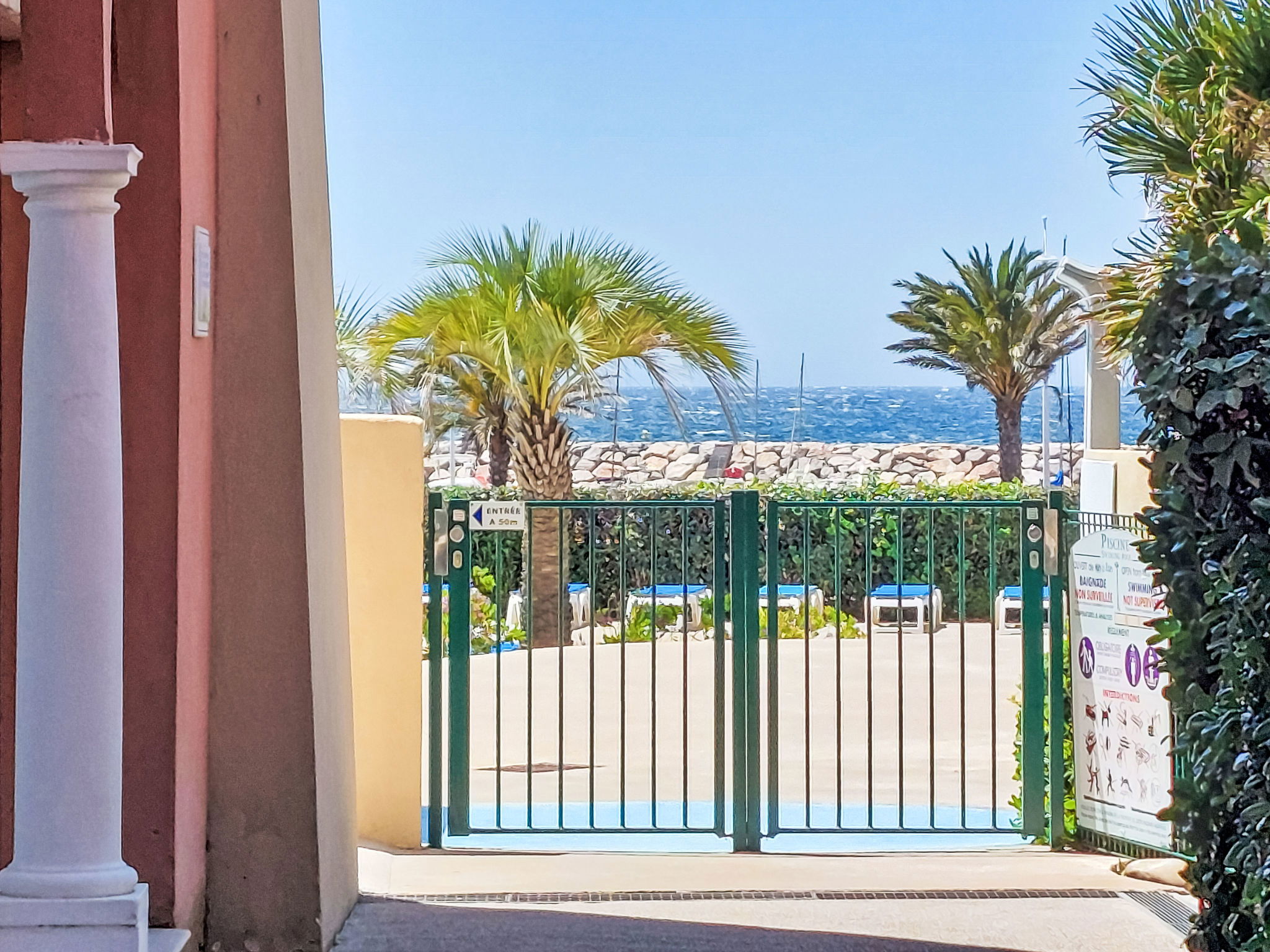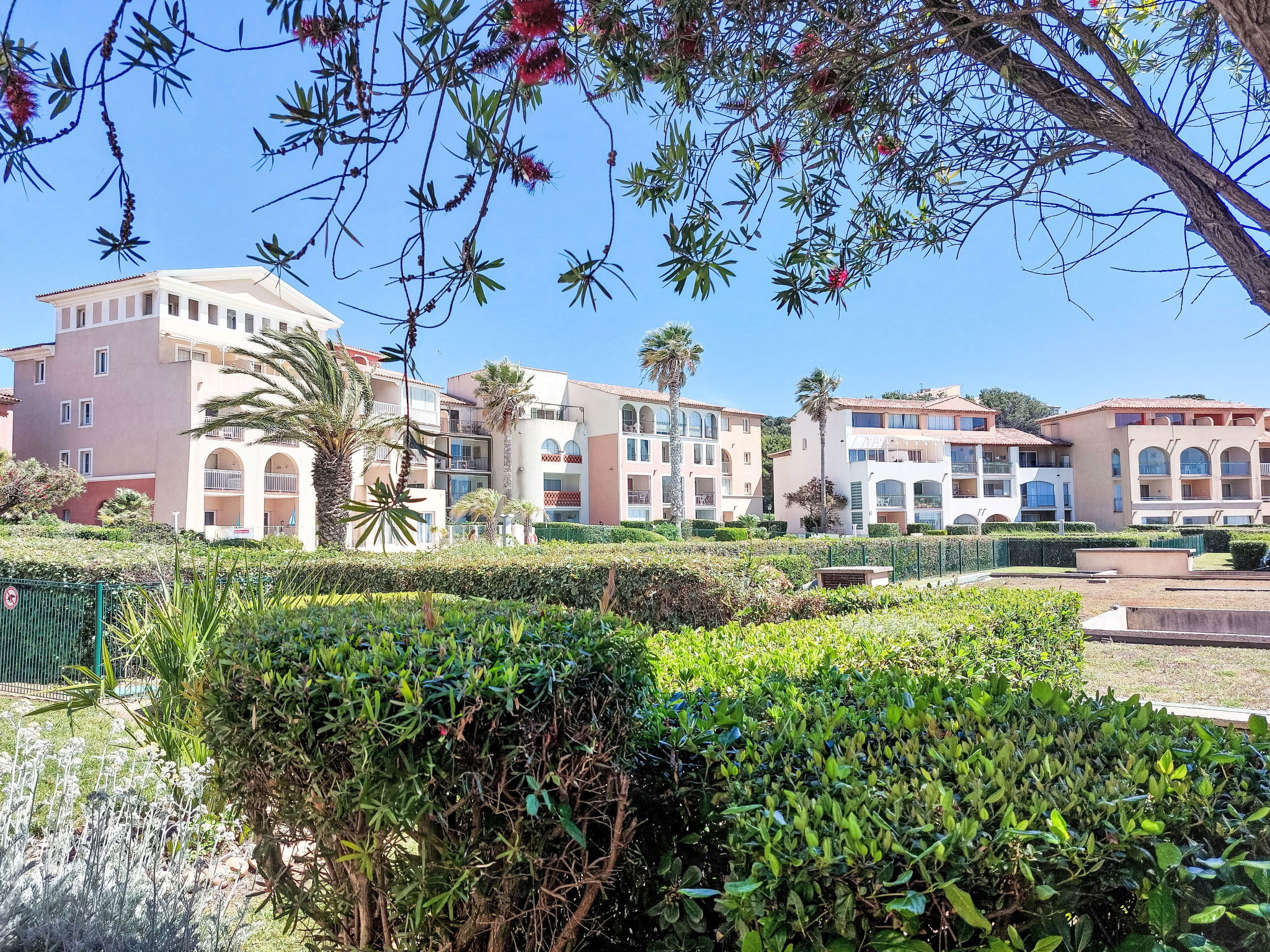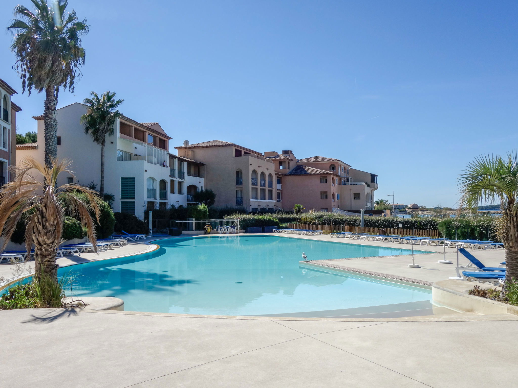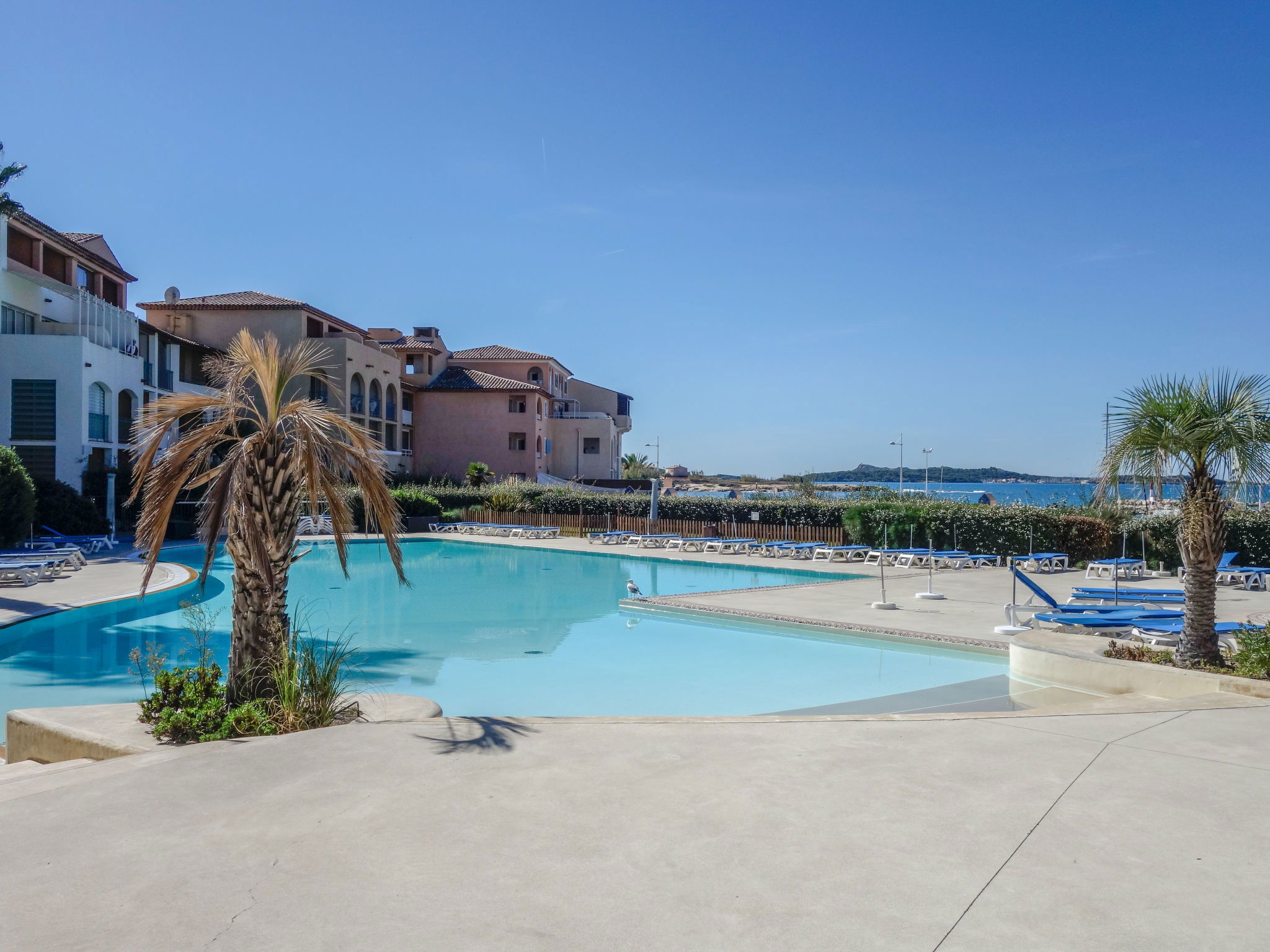 La Coudoulière: Residence "Les Rivages de Coudoulière", 3 storeys. 3 km from the centre of Six Fours, 50 m from the sea, 100 m from the beach, in the countryside. For shared use: swimming pool (25 x 15 m, 340 m2, depth 60 - 160 cm, seasonal availability: 15.May. - 15.Oct. pool opening hours: 10:00-19:00) with internal staircase. Unconventional pool shape. Children's pool. In the complex: lift. Shop, restaurant, café 50 m, bus stop 200 m, sandy beach "La coudoulière" 100 m, park "Domaine de la Coudoulière" 50 m, lake Domaine de la Coudoulière 50 m. Sports harbour 50 m, golf course (18 hole) 13 km. Hiking paths: Sainte Baume, Sainte Victoire, Calanques Port-Cros, Porquerolles, Ile verte, Embiez, Figuerolles, Cassis. Please note: the keys‘ handover takes place by the agency in SIX FOURS LES PLAGES, 2 km. Additional accommodations can be booked.