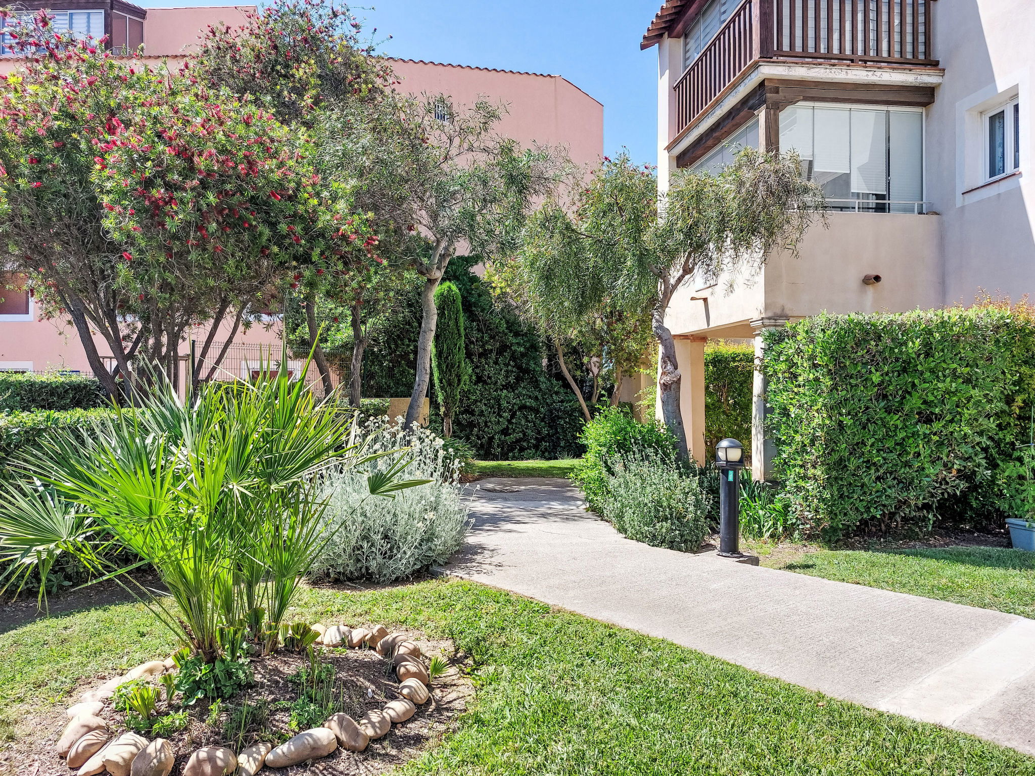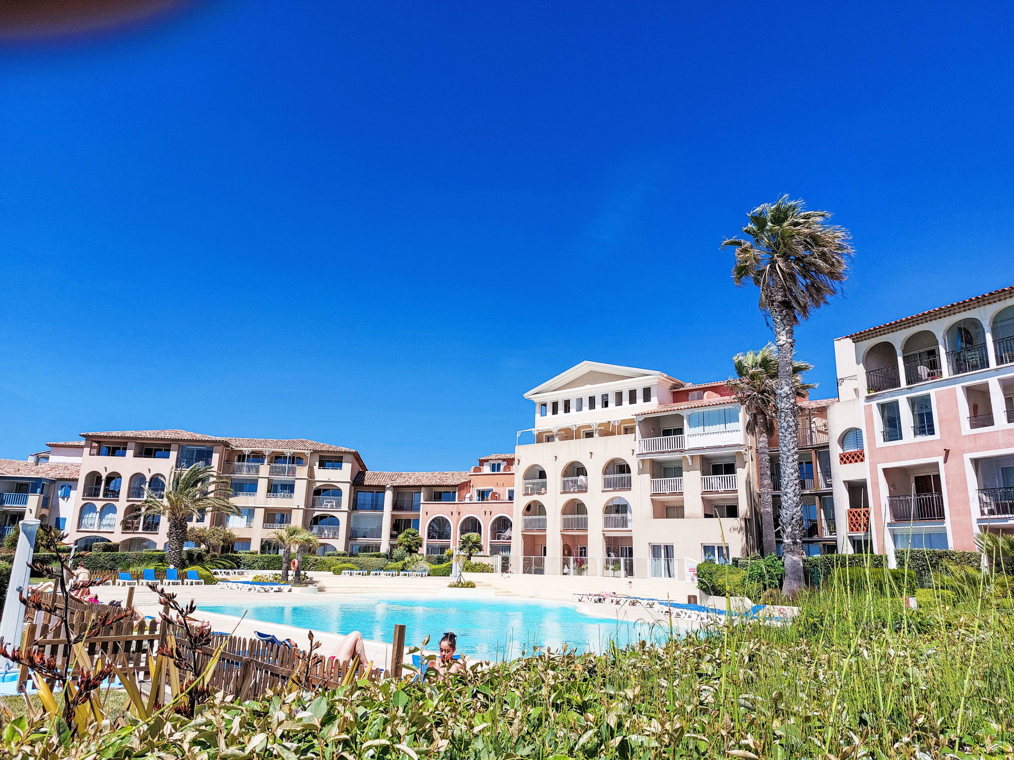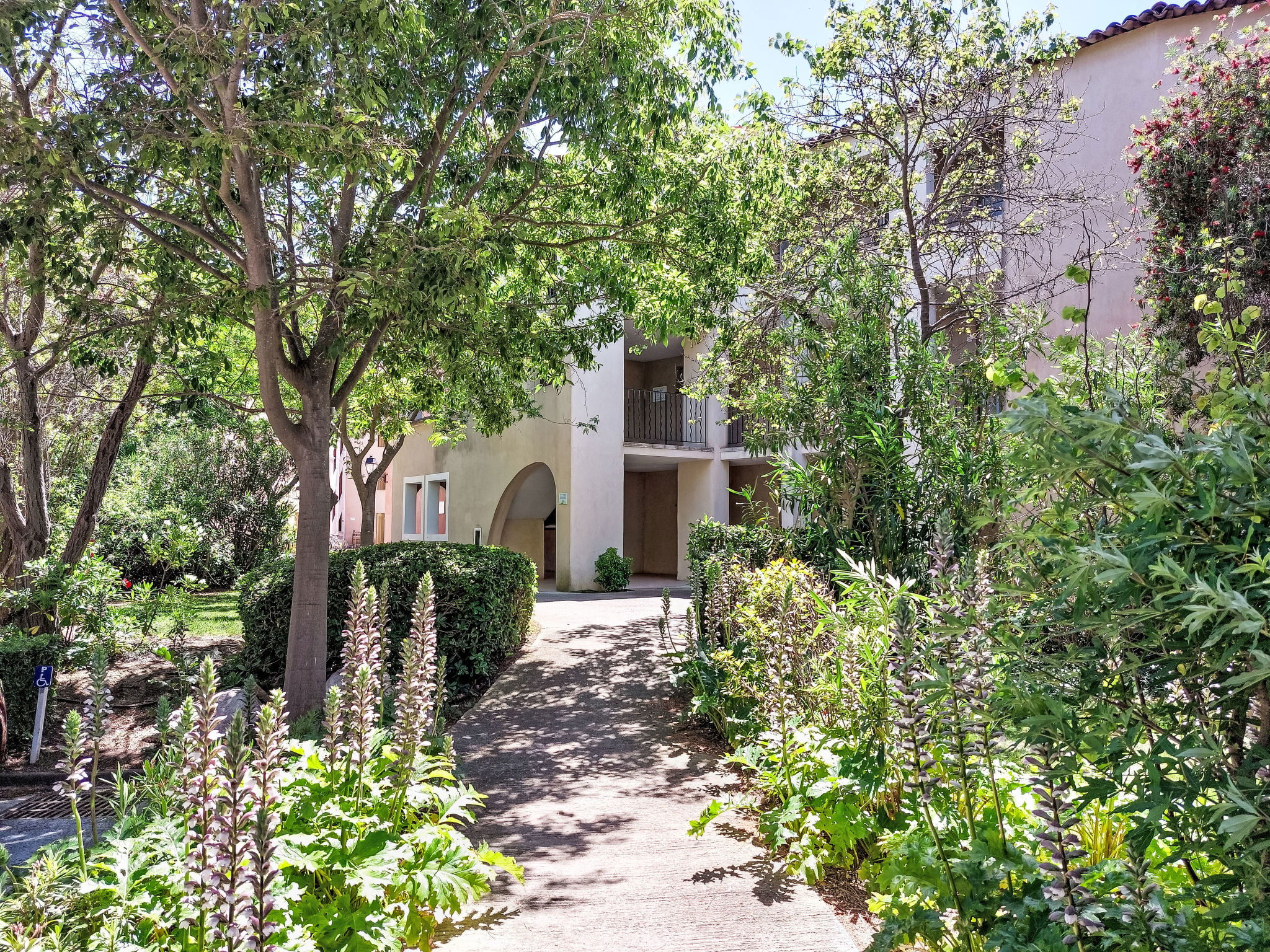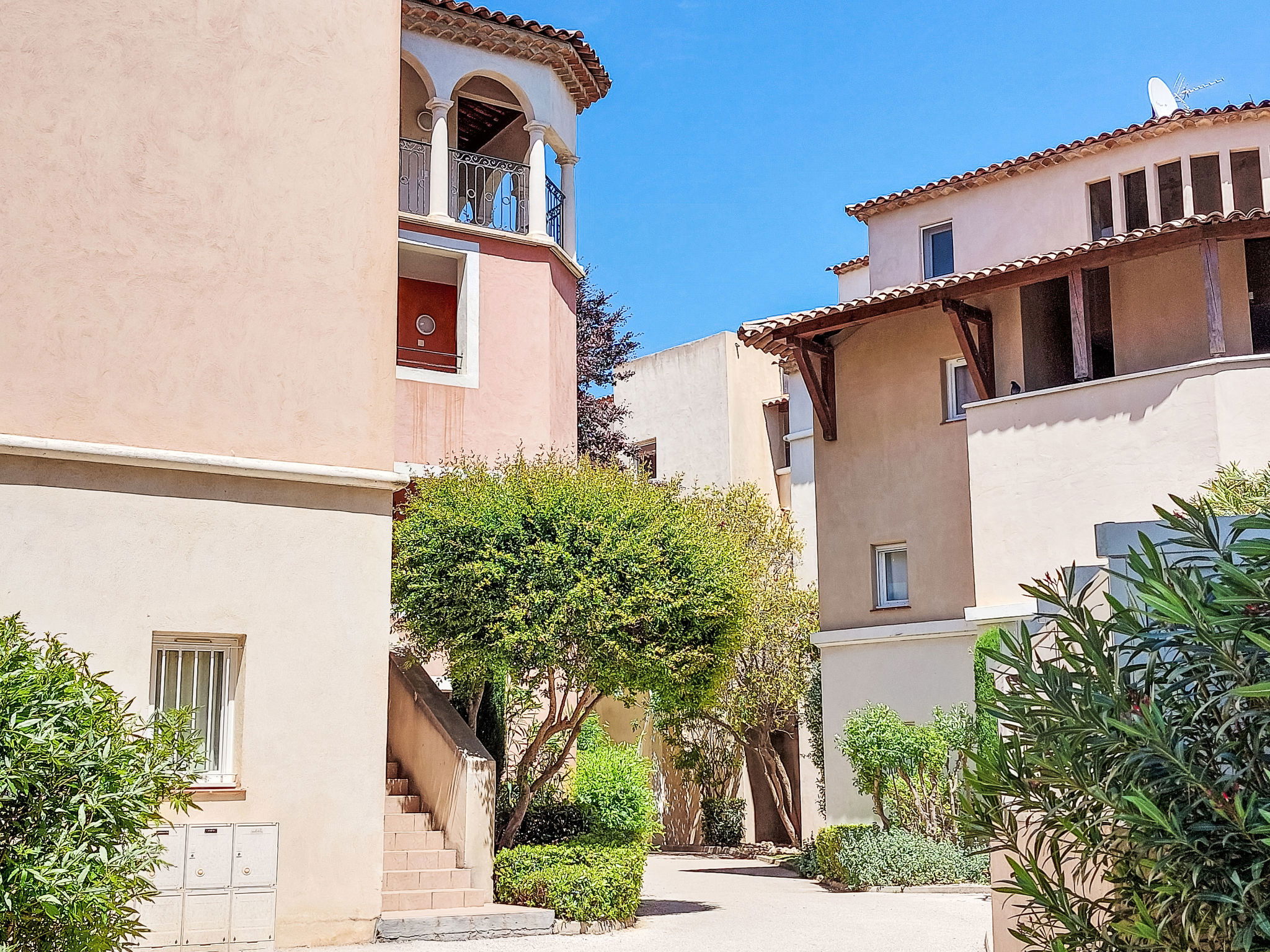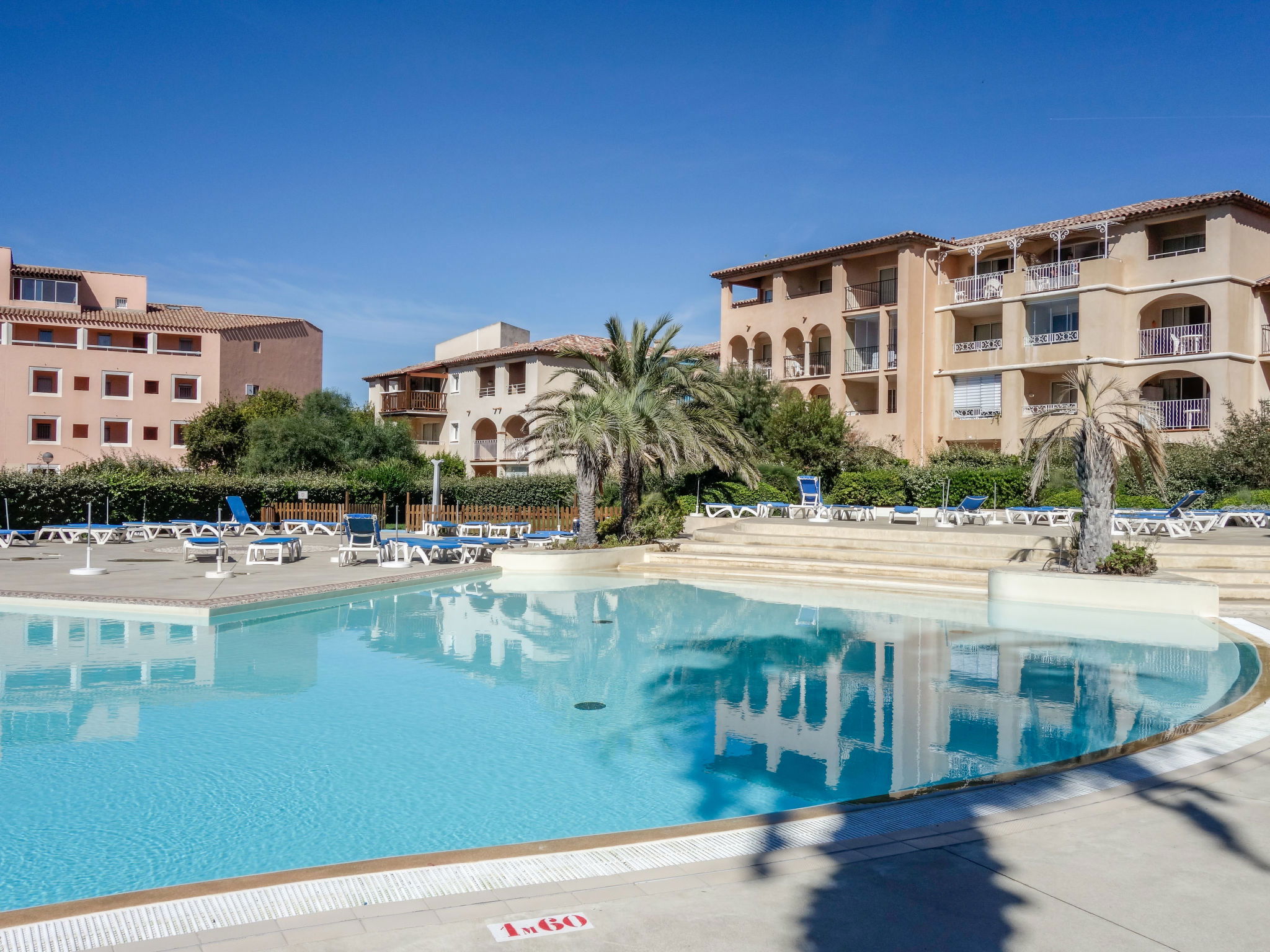 La Coudoulière: Residence "Les Rivages de Coudoulière", 3 storeys. 3 km from the centre of Six Fours, 50 m from the sea, 100 m from the beach, in the countryside. For shared use: swimming pool (25 x 15 m, 340 m2, depth 60 - 160 cm, seasonal availability: 15.May. - 15.Oct. pool opening hours: 10:00-19:00) with internal staircase. Unconventional pool shape. Children's pool. In the complex: lift. Shop, restaurant, café 50 m, bus stop 200 m, sandy beach "La coudoulière" 100 m, park "Domaine de la Coudoulière" 50 m, lake Domaine de la Coudoulière 50 m. Sports harbour 50 m, golf course (18 hole) 13 km. Hiking paths: Sainte Baume, Sainte Victoire, Calanques Port-Cros, Porquerolles, Ile verte, Embiez, Figuerolles, Cassis. Please note: the keys‘ handover takes place by the agency in SIX FOURS LES PLAGES, 2 km. Additional accommodations can be booked.