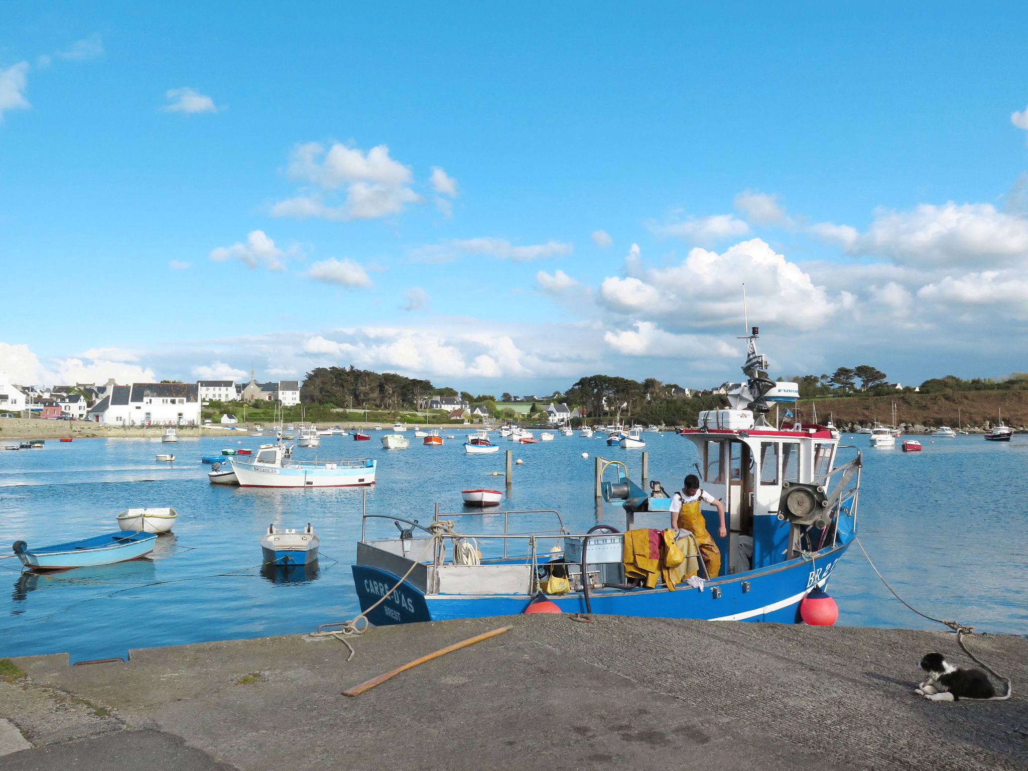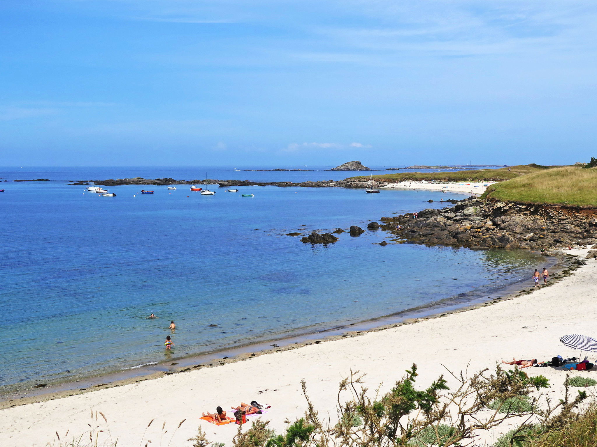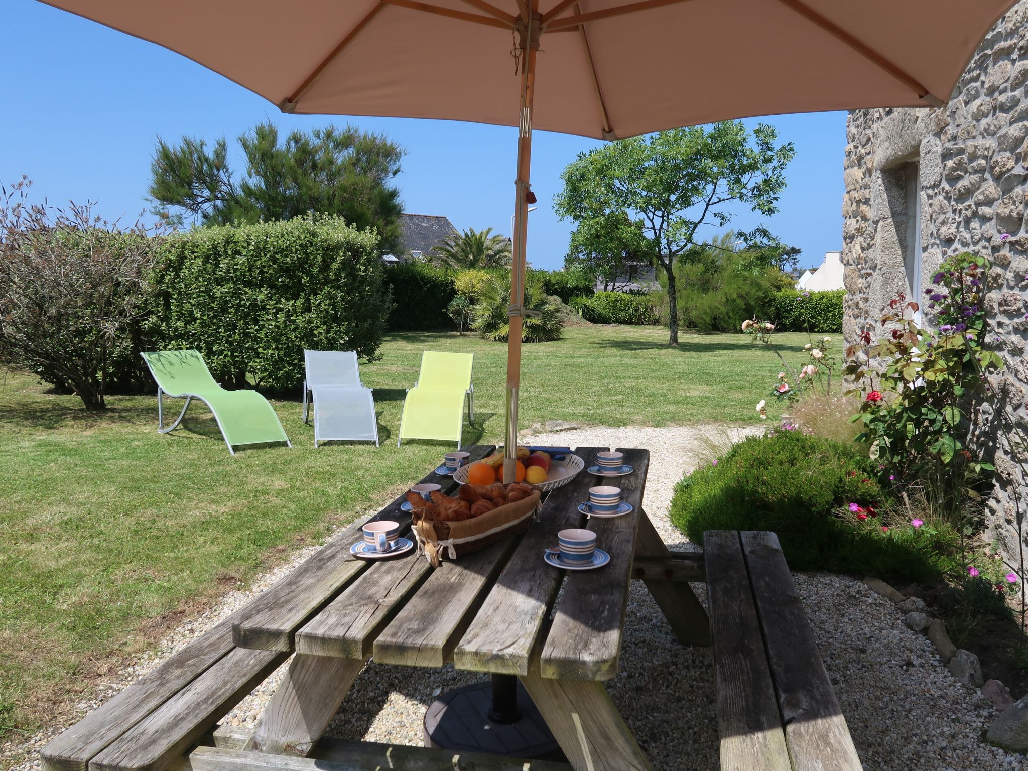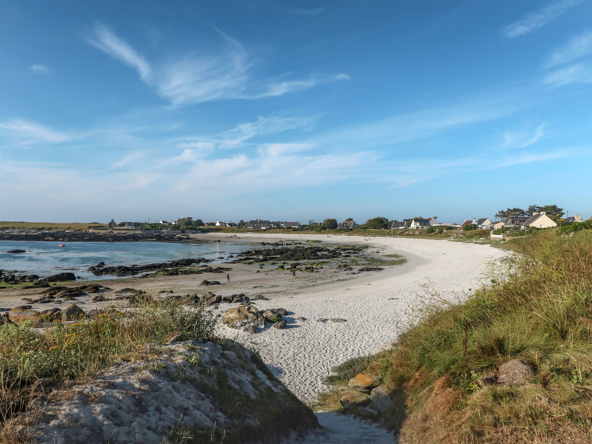 "Ty Coz ar Mor", 4-room house 80 m2 on 2 levels. Bright, cosy furnishings: living/dining room with open-hearth fireplace, dining table and TV. Exit to the garden. Open kitchen (oven, dishwasher, 3 induction hot plates, toaster, kettle, microwave, freezer, electric coffee machine). Shower/WC. Upper floor: 1 room with sloping ceilings with 1 french bed (140 cm, length 190 cm). 1 room with sloping ceilings with 2 beds (90 cm, length 190 cm). 1 open room with sloping ceilings with 1 french bed (140 cm, length 190 cm). Electric heating. Wooden floors. Terrace, south-west facing position. Terrace furniture, barbecue (portable), deck chairs (3), sitting area, box-room. Facilities: washing machine, dryer, iron, children's high chair, baby cot. Internet (WiFi, free). Please note: non-smoking house. Maximum 2 pets/ dogs allowed. Smoke alarm. Further shower and sep.WC in the utility room in the small outbuilding (only accessible from outside).