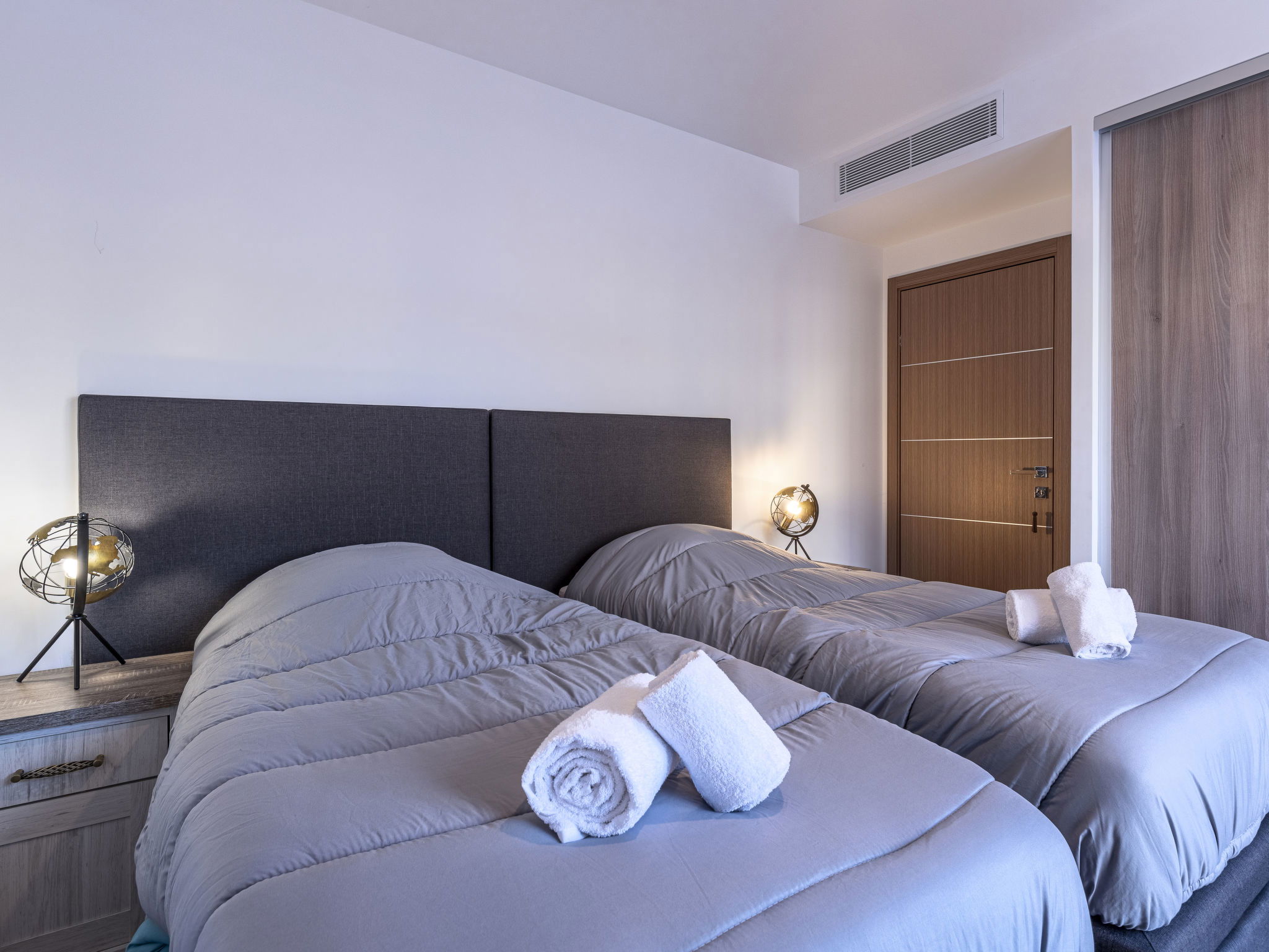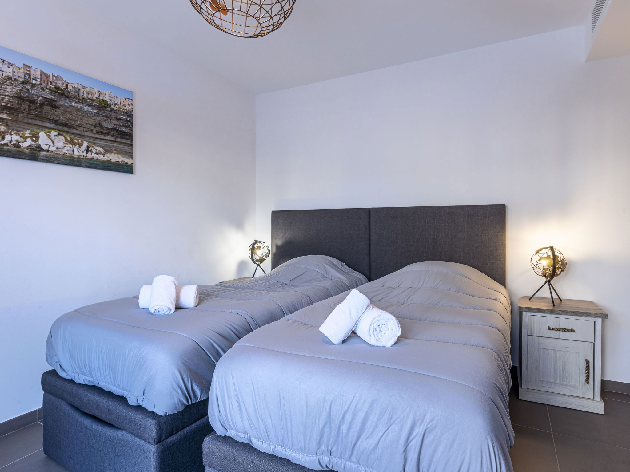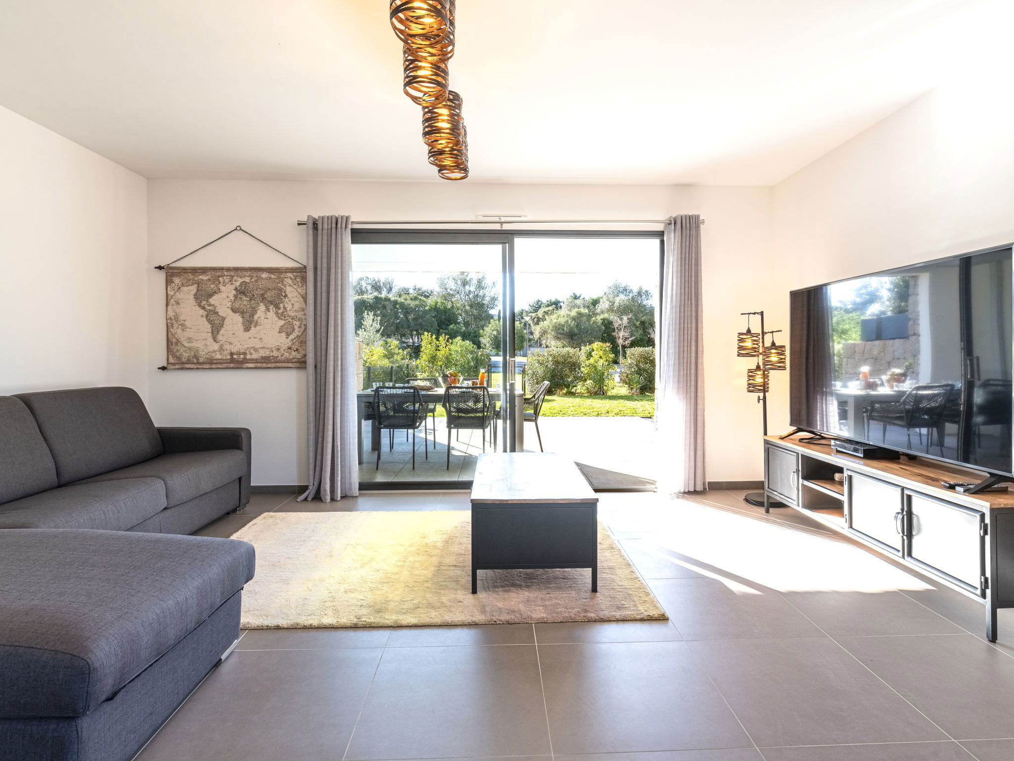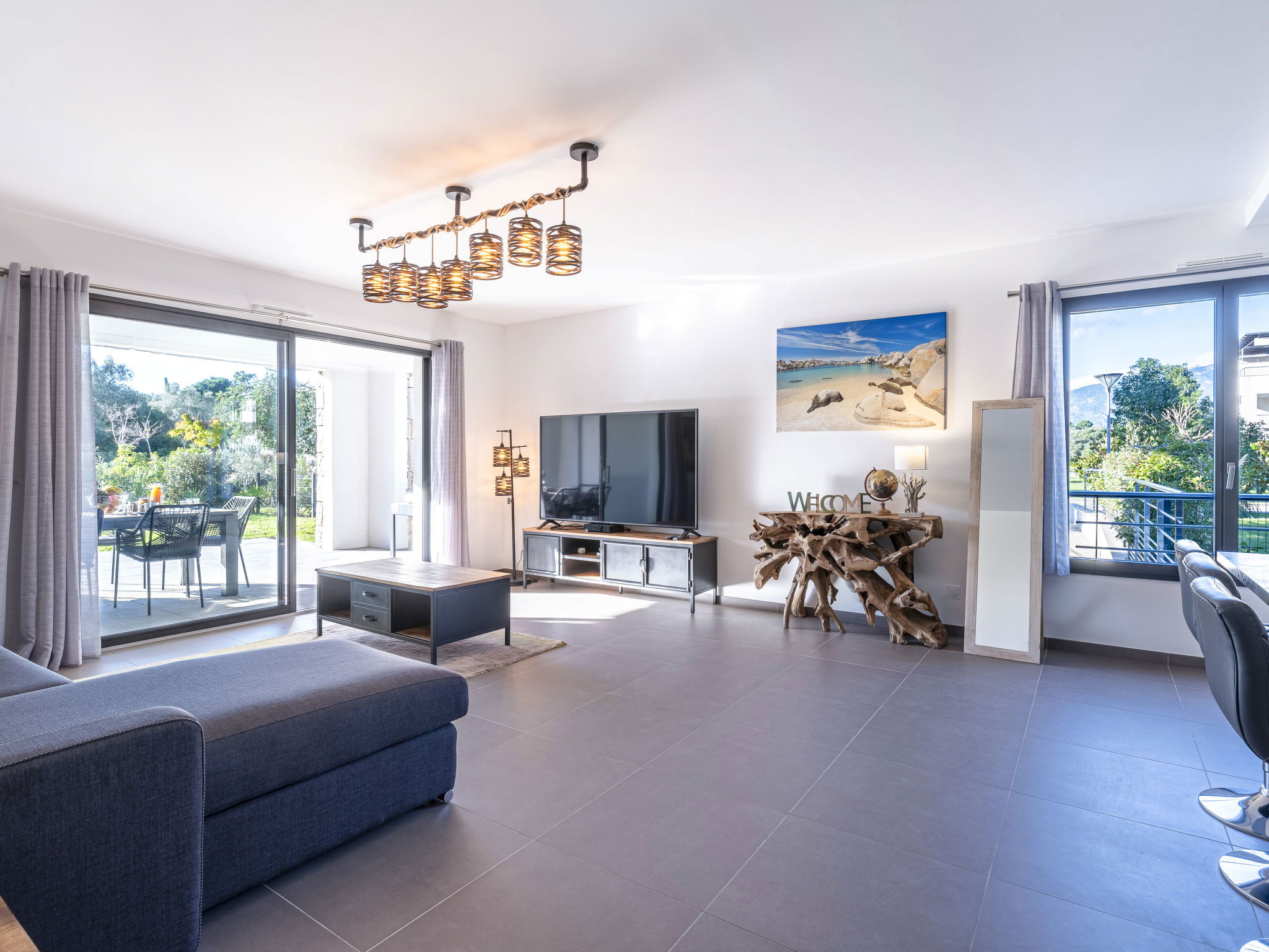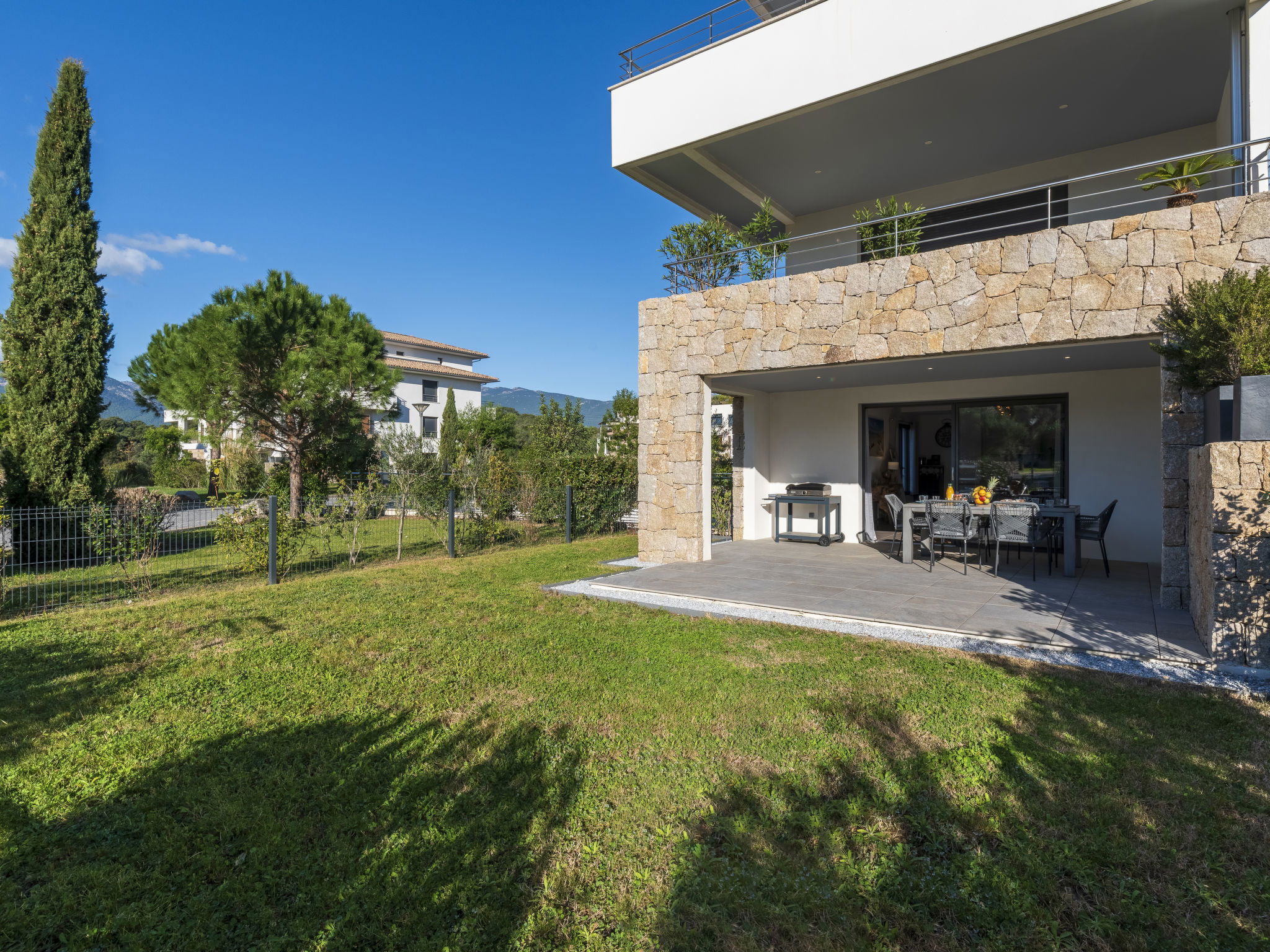 "Domaine d'Arca G1", 3-room apartment 86 m2, on the ground floor. Modern furnishings: living/dining room with panoramic window with 1 double sofabed (140 cm, length 190 cm), TV (flat screen). Exit to the garden, to the terrace. 1 room with 1 french bed (160 cm, length 200 cm). Exit to the terrace. 1 room with 1 french bed (160 cm, length 200 cm). Exit to the terrace. Open kitchen (oven, dishwasher, 1 induction hot plates, 4 gas rings, kettle, microwave, electric coffee machine). Bath/WC. Electric heating, air-conditioning. Terrace 40 m2, terrace 15 m2, garden. Terrace furniture, electric barbecue. View of the mountains. Facilities: washing machine. Internet (WiFi, free). Parking. Please note: smoke alarm. 2A247000120E2