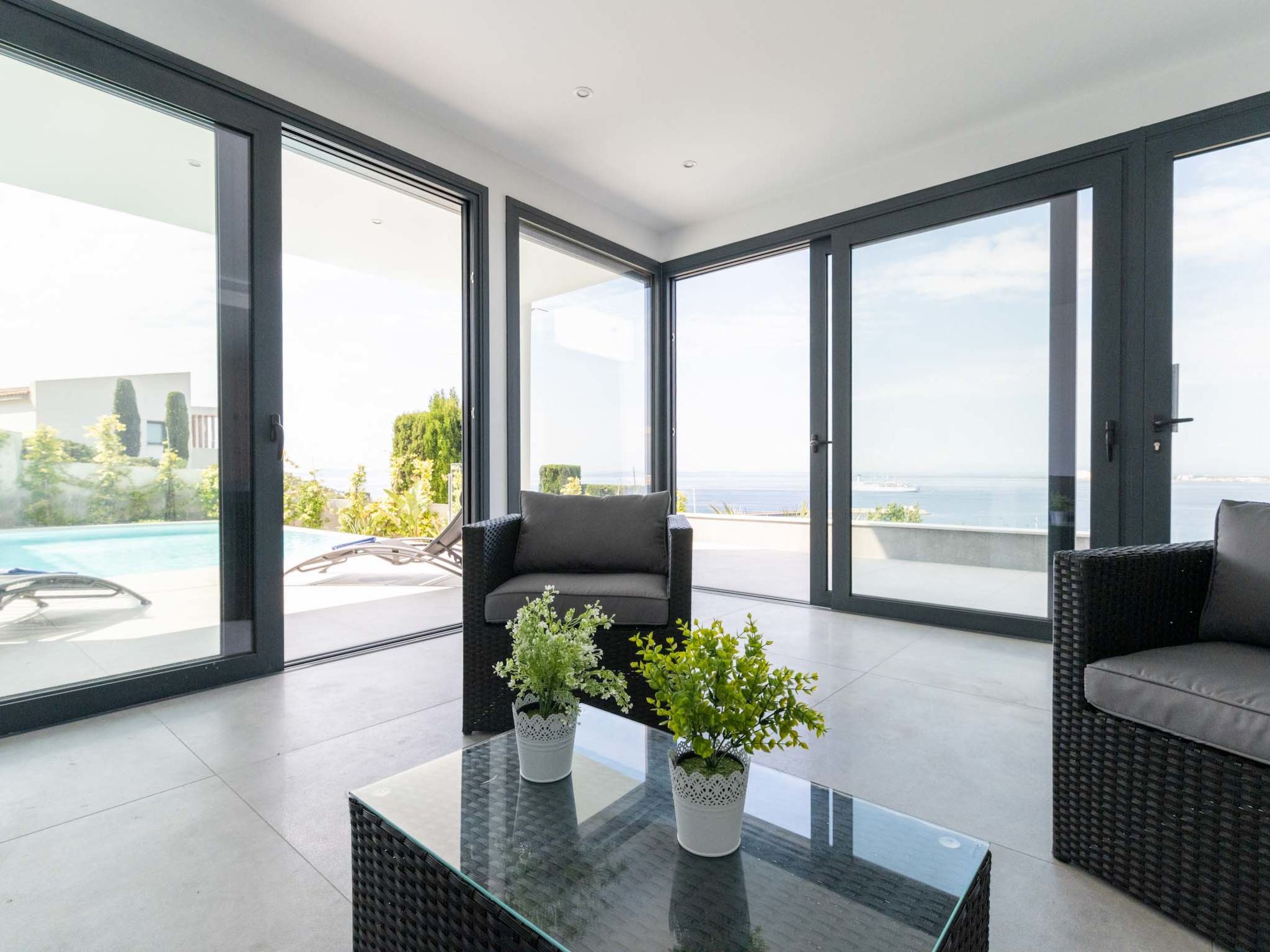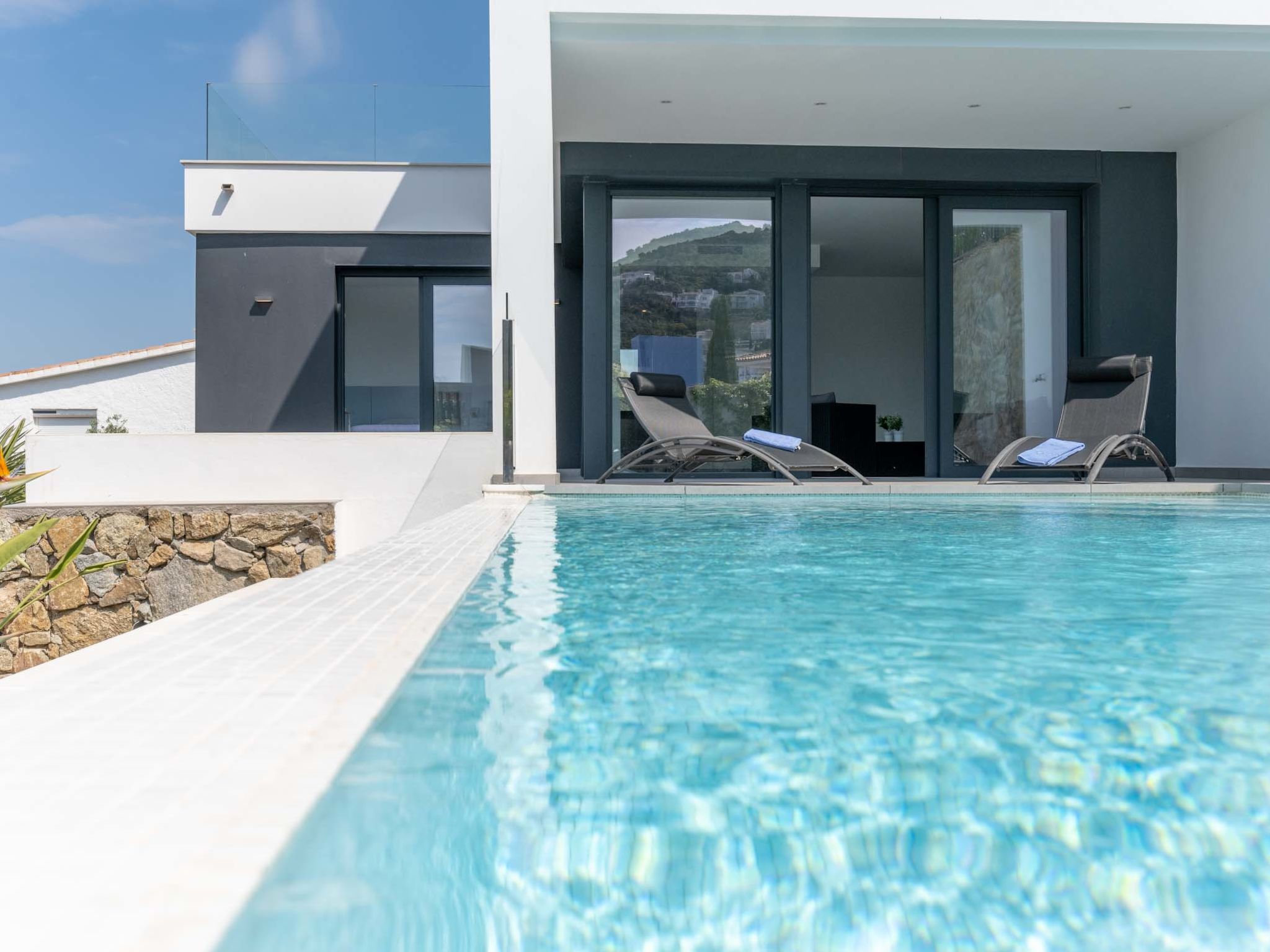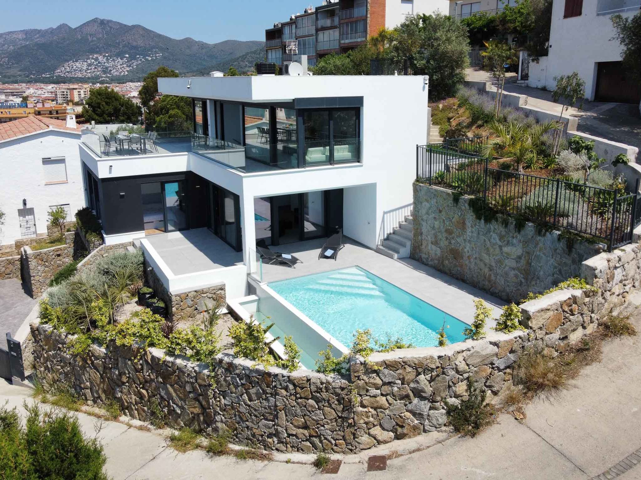 The house has an electric awning with wind sensors modern, comfortable villa "Kaia", 2 storeys, built in 2021. 400 m from the centre of Roses, in a quiet, sunny position on top of a hill, residential area (villas), 200 m from the sea, 500 m from the beach, south-west facing position. Private: swimming pool angular (8 x 4 m, depth 100 - 200 cm, seasonal availability: 01.May. - 30.Oct.) with internal staircase. Outdoor shower, terrace, garden furniture, roofed, parking (for 3 cars). Supermarket, restaurant, bar 500 m, bakery 700 m, 5 minute walk to the centre, bus stop "Moventis estació bus" 2 km, railway station "Figueres Renfe Adif" 20 km, sandy beach "Cala de Canyelles Petites" 2.2 km, shingle beach "Cala Montjoi" 5 km, rocky beach "Cap de Creus" 10 km, diving center 400 m. Sports harbour, marina 500 m, golf course (15 hole) 14 km, surf school 500 m, sailing school 500 km, indoor tennis centre 2 km, minigolf 2 km, sports centre 2 km, walking paths from the house 600 m. Nearby attractions: Aqua Park 9 km, Casino y Festival de Perelada 15 km, Campo de Golf Perelada 15 km, Ruinas de Empuries 25 km, Museo Dali Figueres 20 km, Cadaqués/ Cap de Creus 25 km. The owner does not accept any groups. The owner does not accept any youth groups. The keys‘ handover takes place by the agency in Roses.