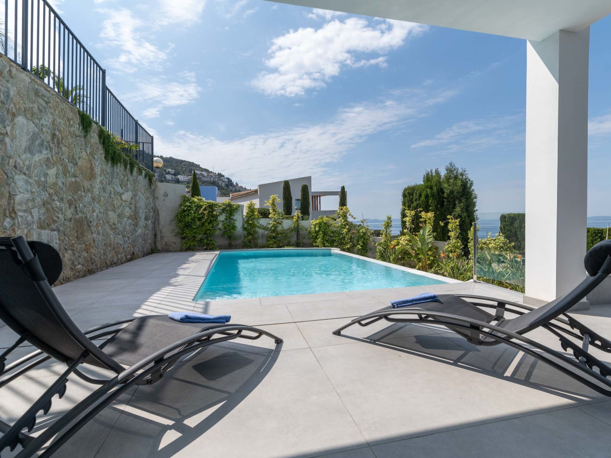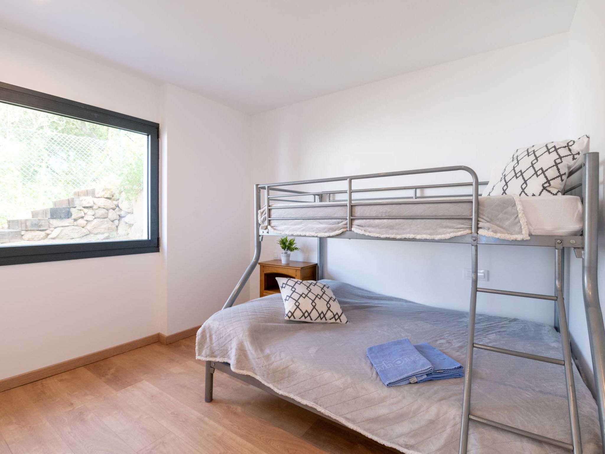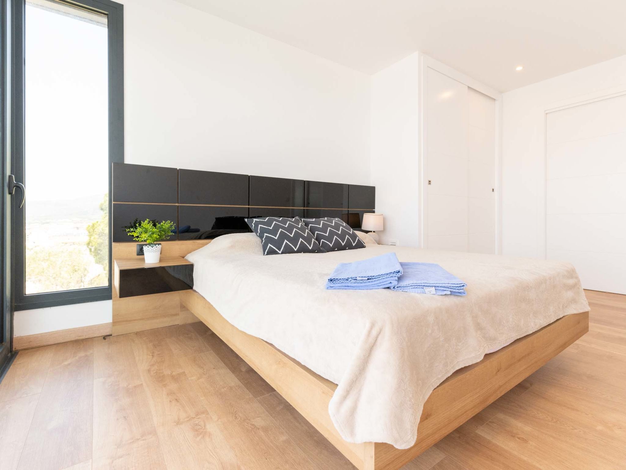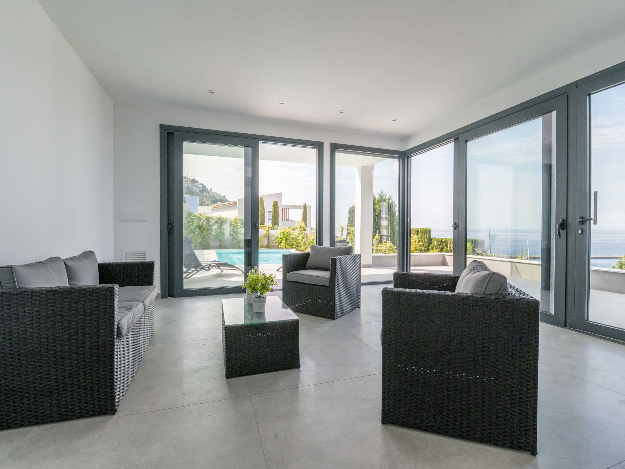 5-room villa 145 m2 on 2 levels, south-west facing position. Spacious and bright, comfortable and luxurious furnishings: on the lower ground floor: 1 room with 1 french bed (160 cm, length 200 cm), air conditioning, forced-air heating and electric shutters. Exit to the terrace. 1 room with 1 french bed (160 cm, length 200 cm), shower/WC, air conditioning, forced-air heating and electric shutters. Exit to the terrace. 1 room with 1 x 2 bunk beds (90 cm, length 190 cm), air conditioning, forced-air heating and electric shutters. Shower/WC. Upper floor: living/dining room with dining table, satellite TV and digital TV (flat screen), air conditioning, forced-air heating and electric shutters. Exit to the terrace, to the swimming pool. 1 room with 1 french bed (150 cm, length 190 cm), air conditioning, forced-air heating and electric shutters. Large, open kitchen (oven, dishwasher, 3 induction hot plates, toaster, kettle, microwave, freezer, electric coffee machine, cooking island). Bath/WC. Large terrace, south facing position. Terrace furniture. Marvellous panoramic view of the sea. Facilities: washing machine, dryer, iron, baby cot, hair dryer. Garage. Please note: TV only ES, FR. Groups of young people and groups of 8 adults are not allowed. Being in the mountains there is sometimes little water pressure. There is a water pump installed. HUTG-068153 // Reg. Nr.: ESFCTU00001701900010153200000000000000000HUTG-0681534