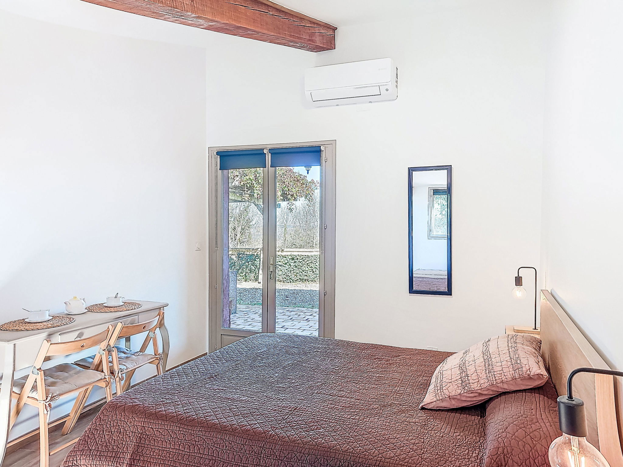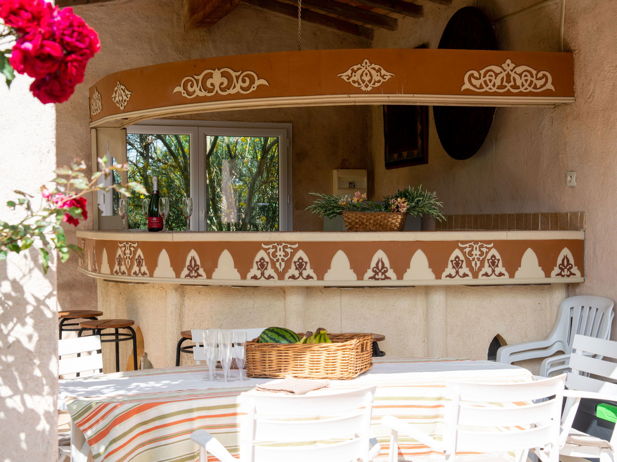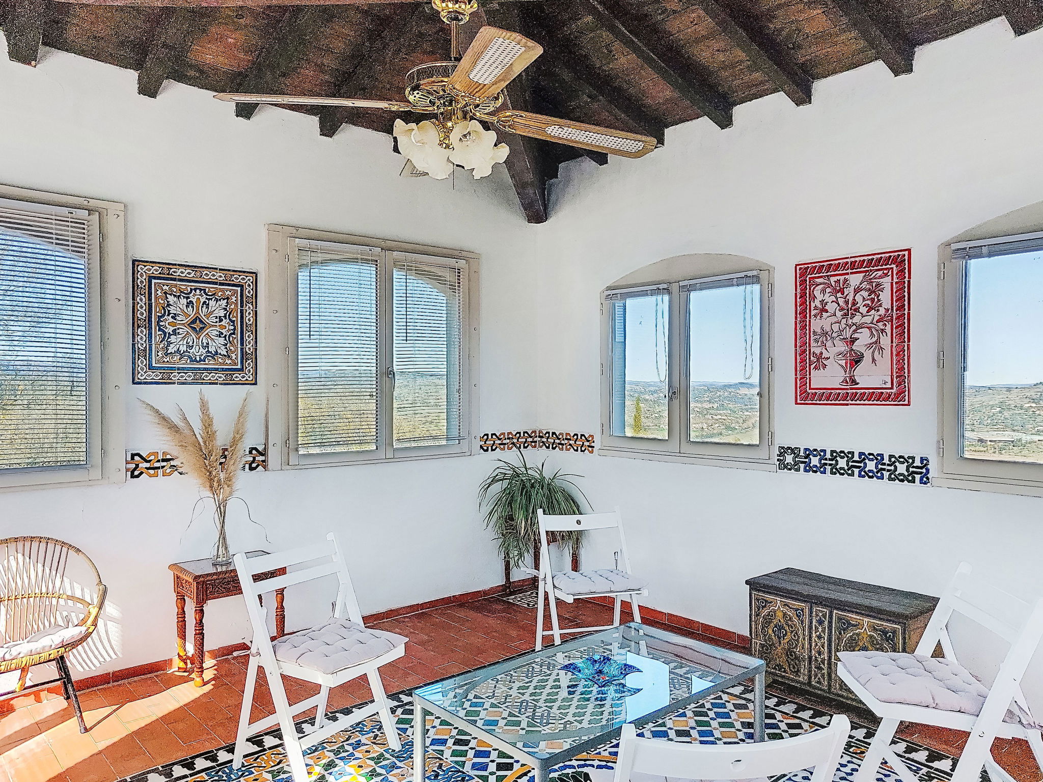 6-room house 300 m2 on 3 levels. Partly renovated in 2025, stylish furnishings: large living/dining room 120 m2 with TV and international TV channels (flat screen), DVD and air conditioning. Exit to the terrace. 1 room with 2 beds. 1 room with 1 french bed (160 cm, length 200 cm), separate WC and shower. 1 room with 1 french bed (140 cm), separate WC and shower. Open kitchen (oven, dishwasher, 4 ceramic glass hob hotplates, microwave, freezer, electric coffee machine, Capsules for coffee machine (dolce gusto) extra) with dining table. Shower/WC. Upper floor: (spiral staircase), 1 room with 1 french bed (160 cm, length 200 cm). 2nd upper floor: (spiral staircase) lounge. Electric heating. Porch 12 m2, south facing position. Terrace furniture, barbecue (portable), deck chairs (8). Marvellous panoramic view of the valley and the countryside. Facilities: washing machine, iron, hair dryer. Garage (2 cars), height 225 cm, width 237 cm. Please note: maximum 1 pet/ dog allowed. Smoke alarm. 3 wall fountains and a skylight in the living room. Alambra mosaics (Arabic type) throughout the house. The rooms located upstairs are in the tower, the living room is accessible via the double bedroom only from where we have a 180 degree view of the surrounding countryside. A plancha (gas) has been installed on the terrace near the kitchen. Please note: Air conditioning is only available in the bedrooms.