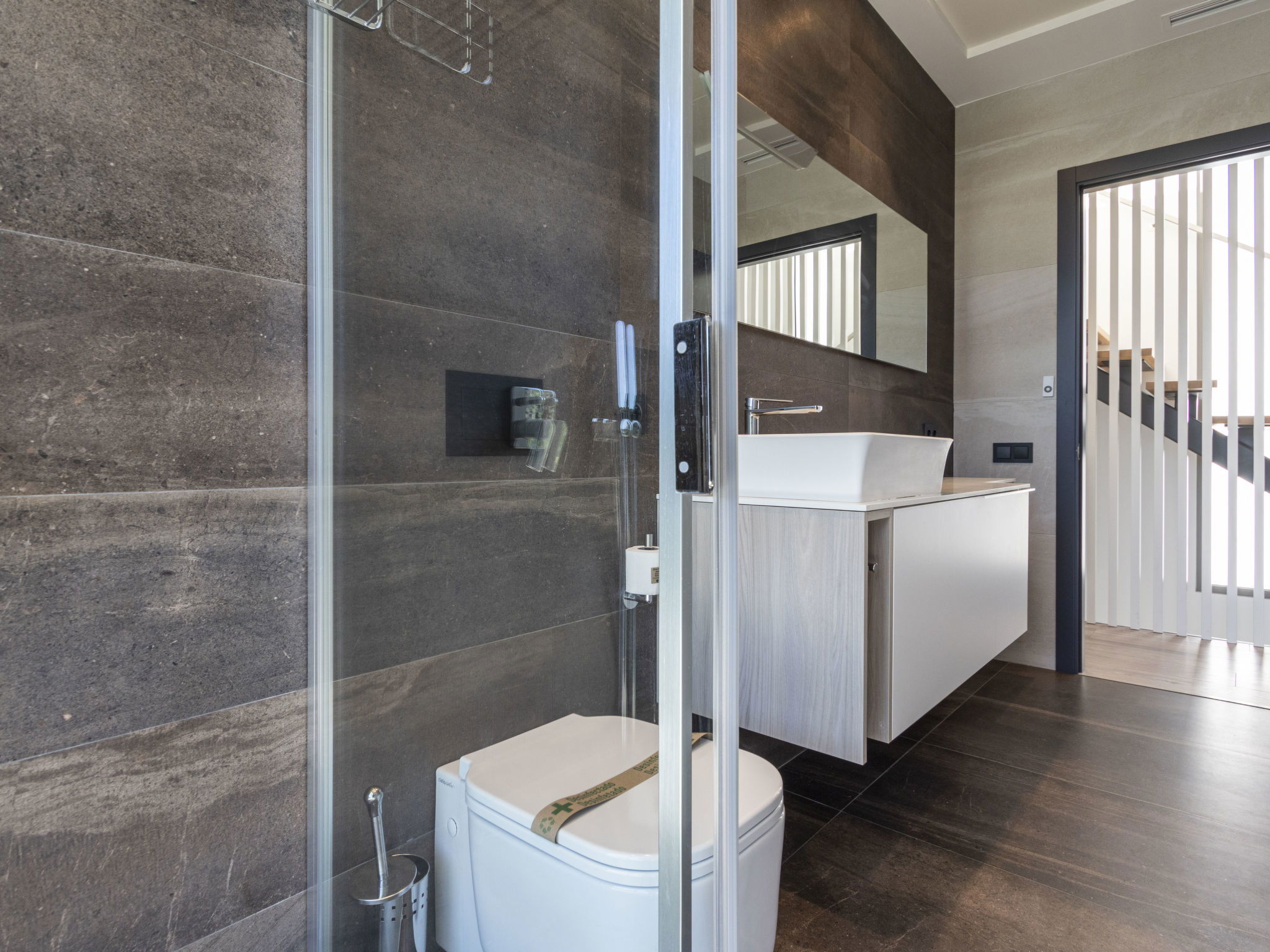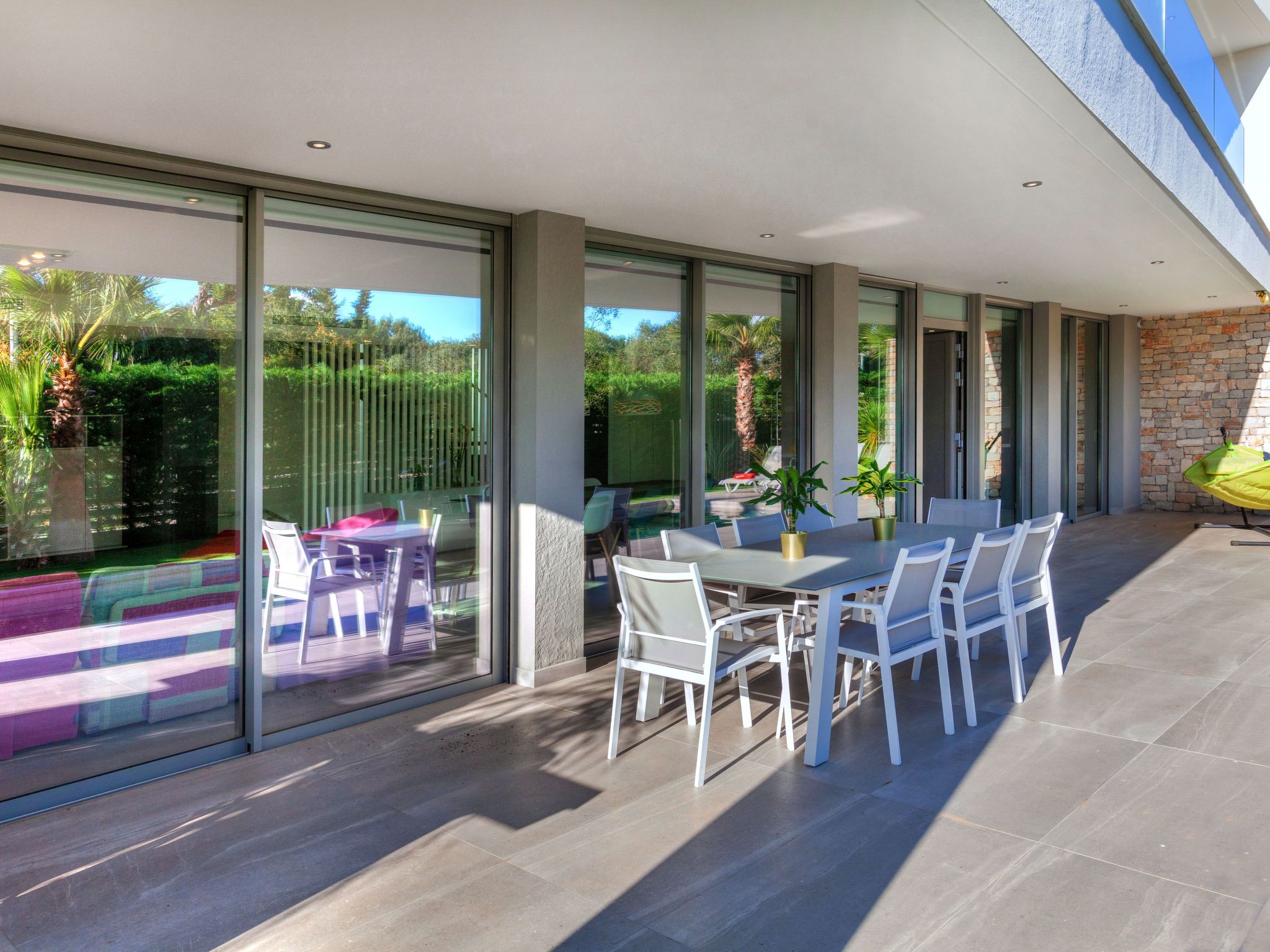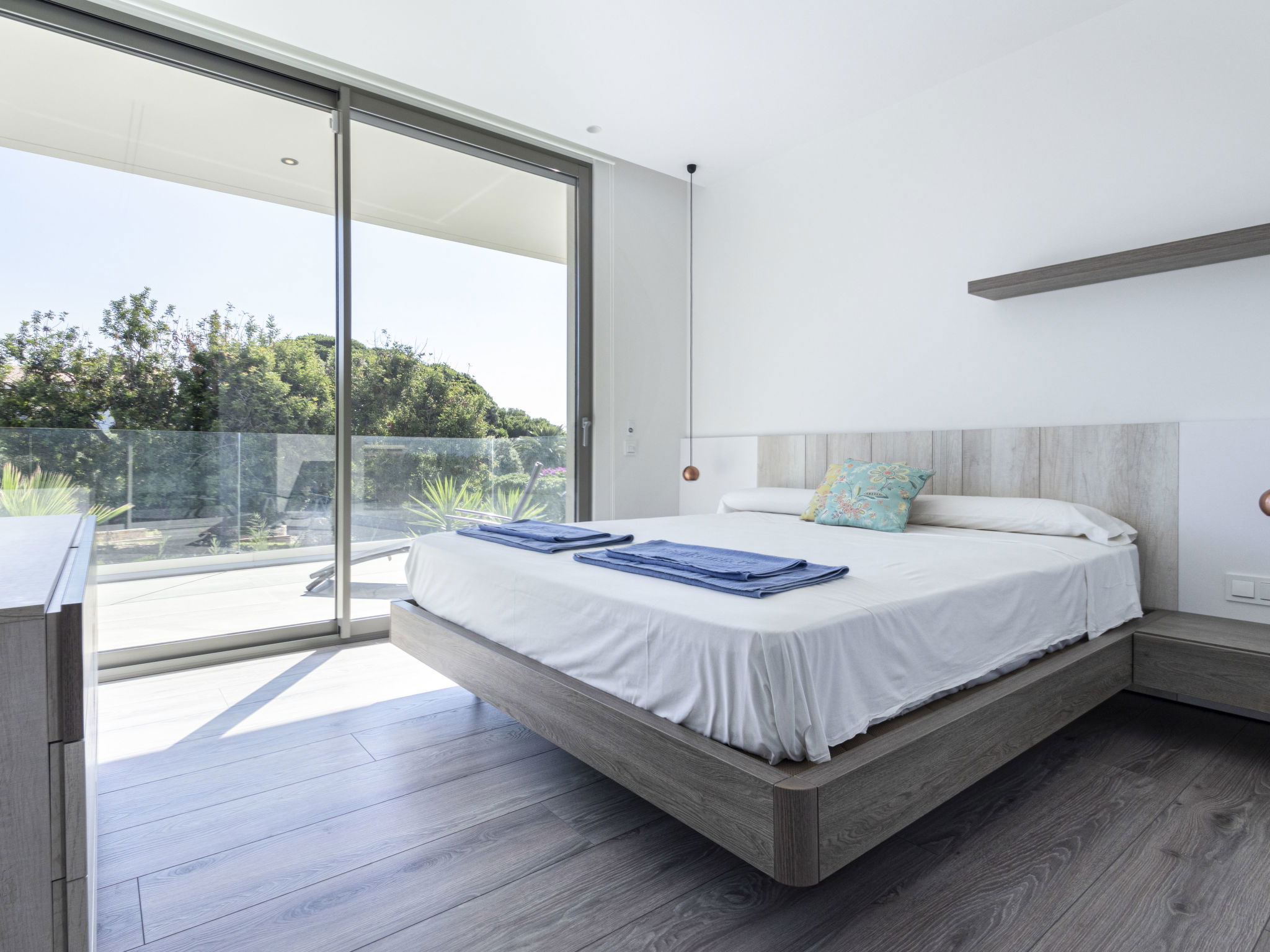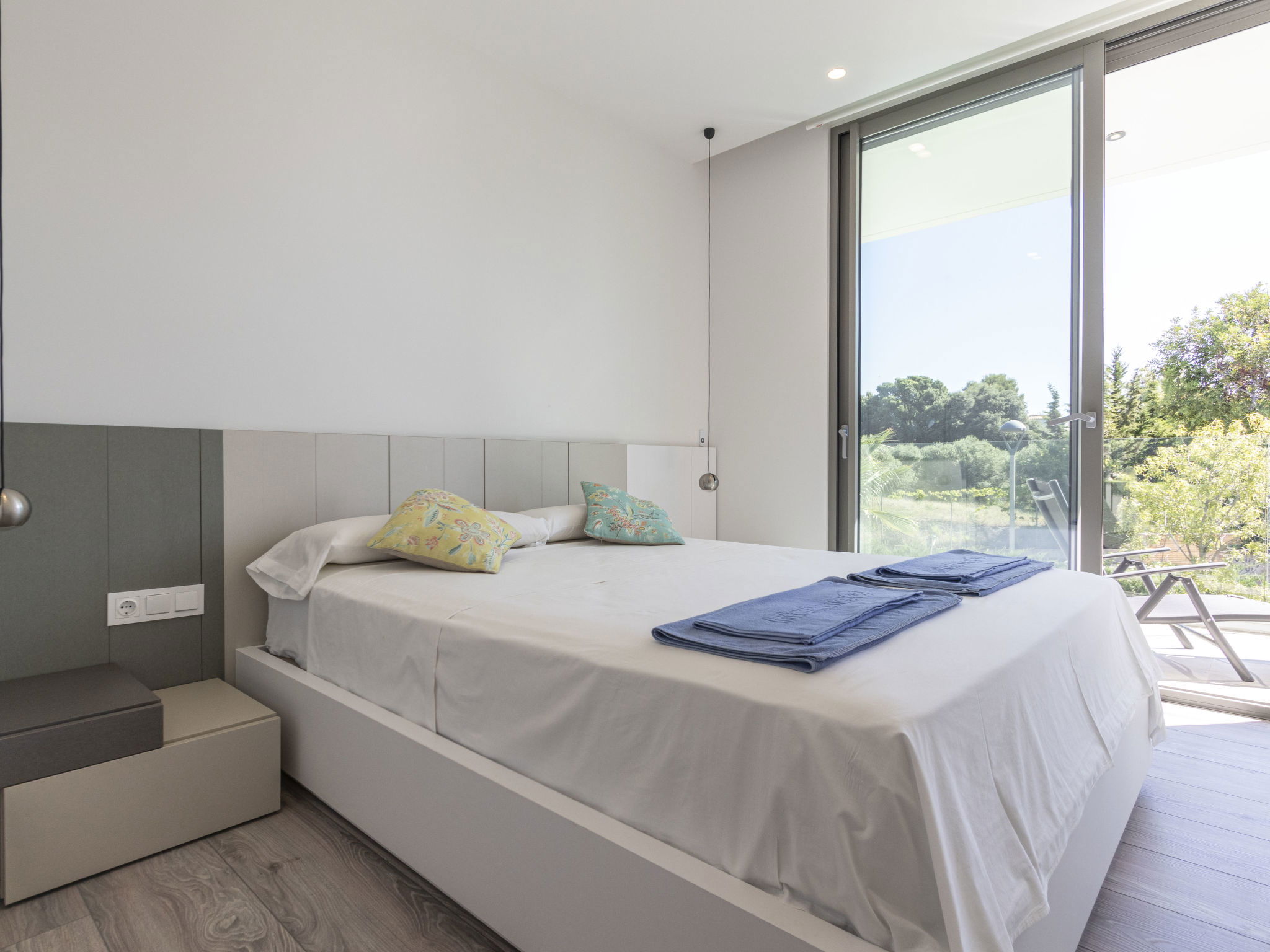 "Ardíaca", 6-room villa 260 m2. Object suitable for 6 adults + 2 children. Spacious and bright, very luxurious and stylish furnishings: open living/dining room with TV and digital TV (flat screen), electric shutters. Exit to the patio, to the swimming pool. Open kitchen (oven, dishwasher, 3 induction hot plates, microwave, electric coffee machine) with electric shutters. Exit to the patio, to the swimming pool. Sep. WC. Air-conditioning, forced-air heating. Solar power. On the lower ground floor: lounge with TV and flat screen. Shower/WC. Air-conditioning, forced-air heating. Upper floor: 1 room with 1 french bed (180 cm, length 200 cm), shower/WC. 1 room with 2 beds (90 cm, length 190 cm). Exit to the terrace. 1 room with 1 french bed (160 cm). Exit to the terrace. 1 room with 1 french bed (160 cm), shower/WC. Exit to the terrace. Shower/WC. Air-conditioning, forced-air heating. Large patio 300 m2. Terrace furniture, barbecue, deck chairs. Very beautiful view of the sea, the swimming pool and the garden. Facilities: washing machine, dryer. Internet (WiFi). Please note: non-smoking house. The pool mentioned in the description is for private use. HUTT-037450 // Reg. Nr.: ESFCTU00004303100046343900000000000000000HUTT-0374501