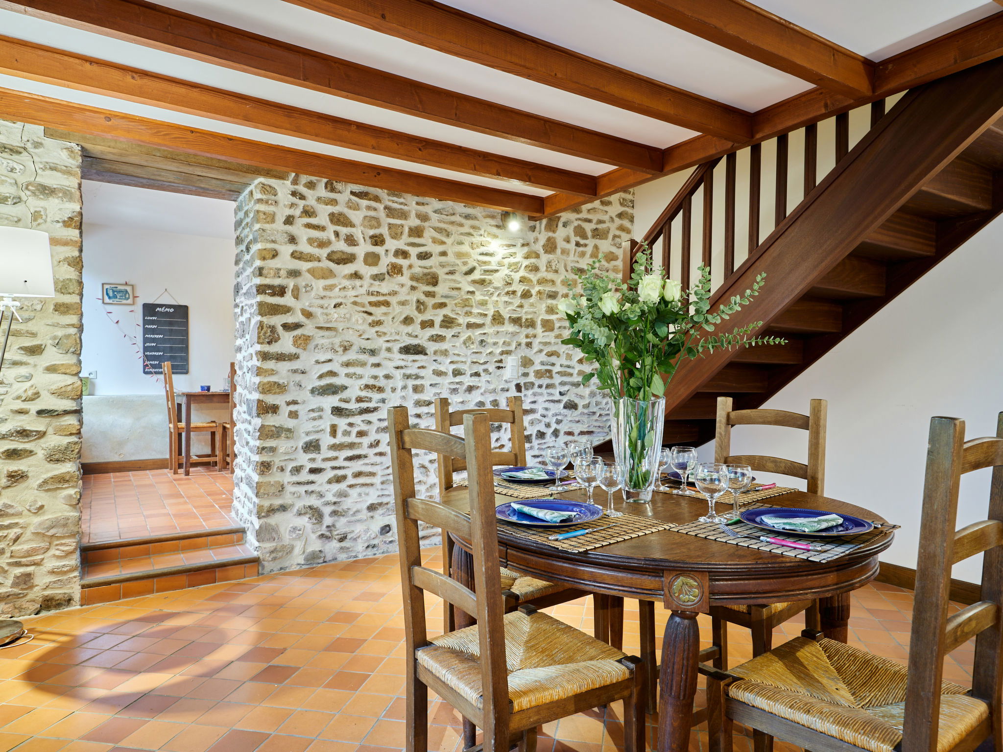 "La Voisinière no.1", 3-room terraced house 75 m2 on 2 levels. Practical furnishings: living/dining room with open-hearth fireplace (only for decoration), dining table and satellite TV. Exit to the patio. Open kitchen (oven, dishwasher, 4 ceramic glass hob hotplates, toaster, kettle, microwave, electric coffee machine). Exit to the patio. Sep. WC. Upper floor: 1 room with 1 french bed. 1 room with 2 beds. Bath/WC. Electric heating. Parquet floors. Lawn. Terrace furniture, barbecue (portable), box-room. Facilities: iron, children's high chair, baby cot. Internet (WiFi, free). Please note: non-smoking house. Maximum 1 pet/ dog allowed. Smoke alarm.