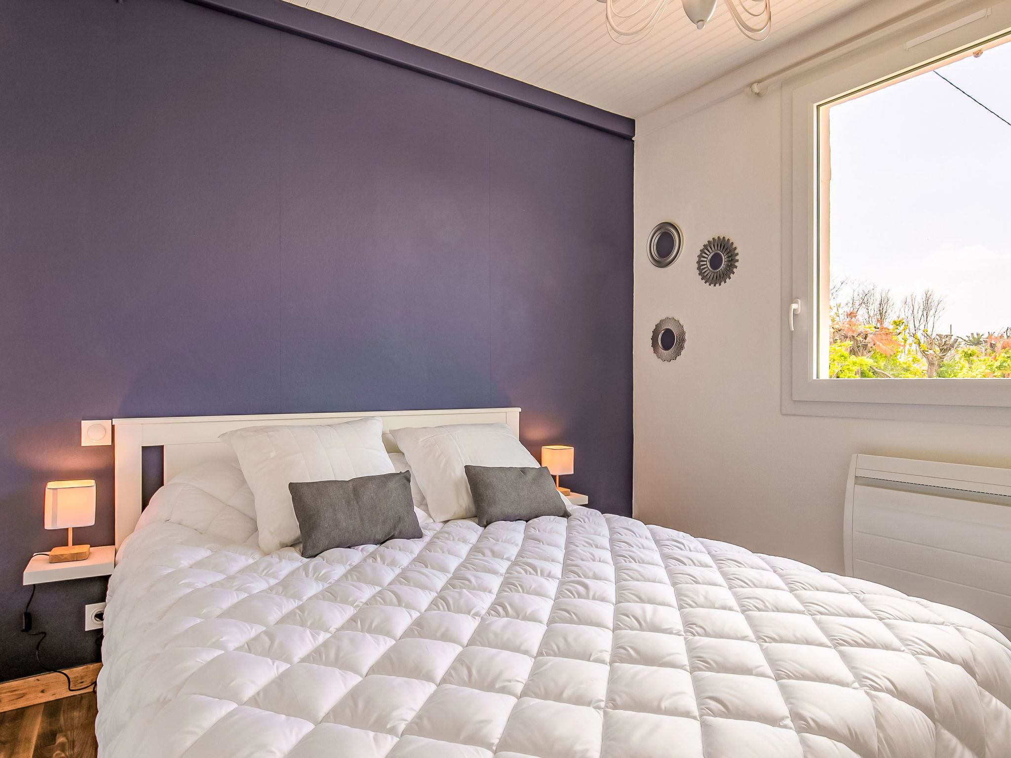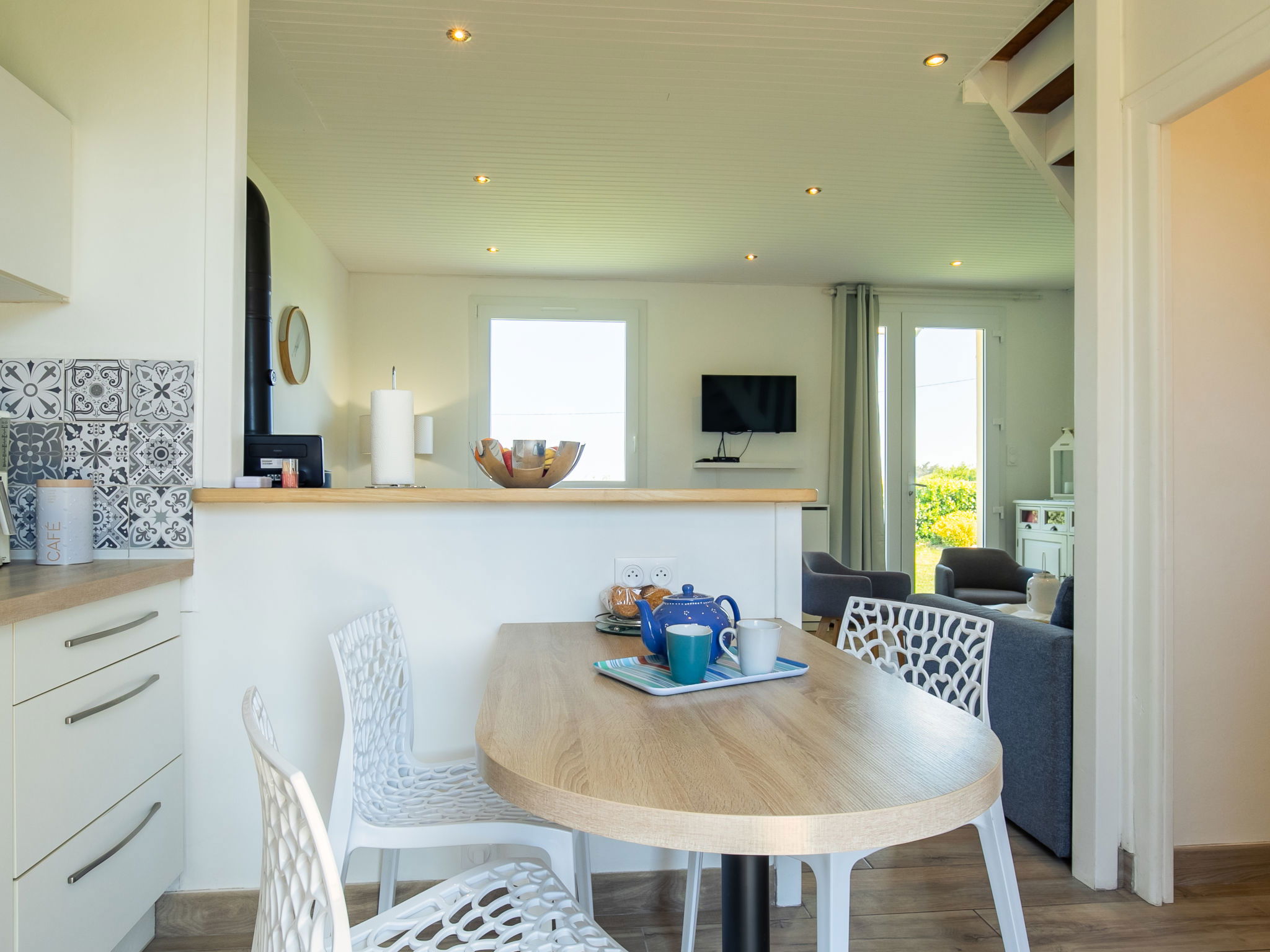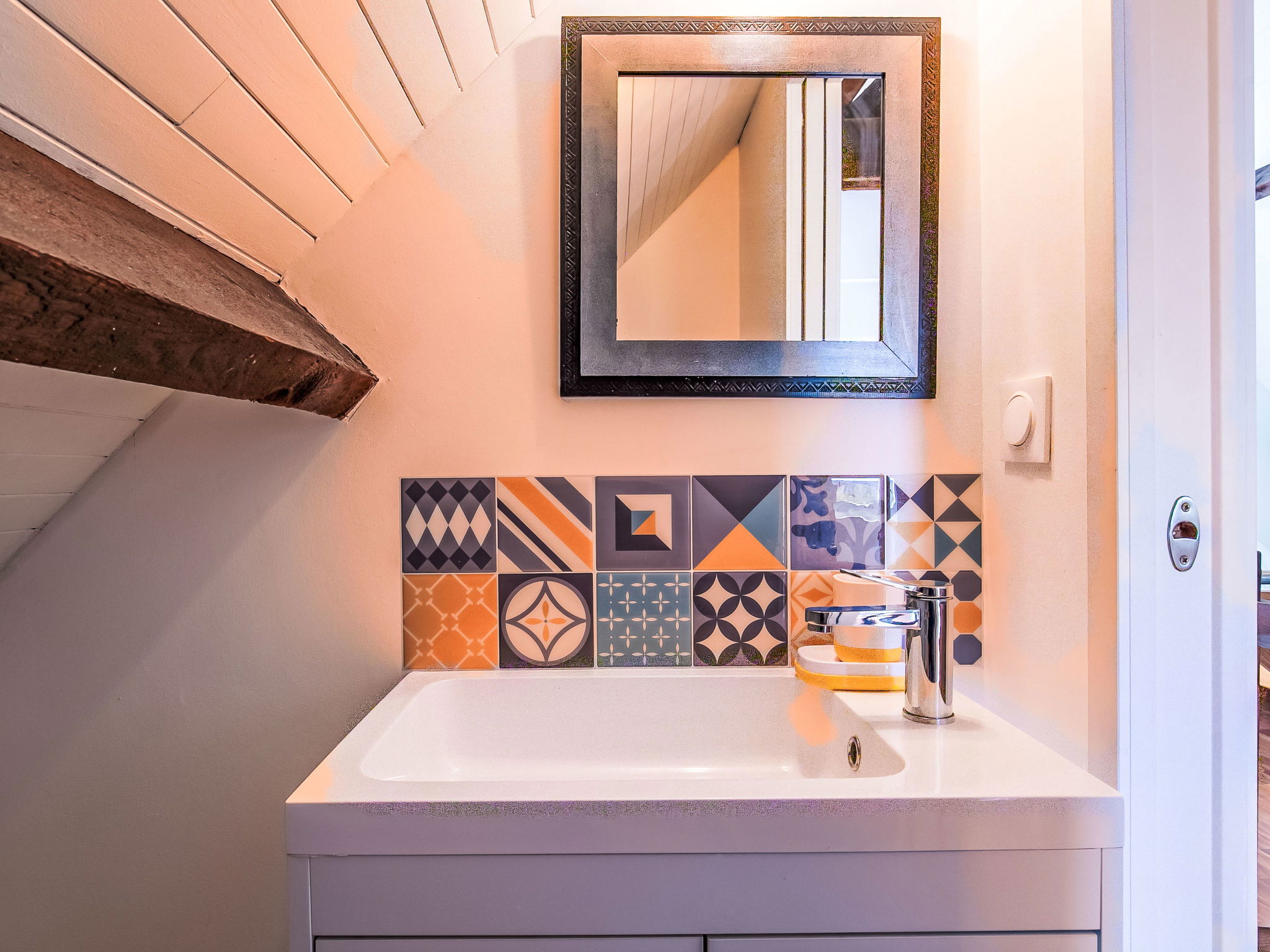 "Le Bruit de la Mer - ", 4-room house 90 m2. Bright, fully renovated in 2021, comfortable and tasteful furnishings: living/dining room with satellite TV, international TV channels and wood-burning stove. Exit to the garden, to the terrace. 2 rooms, each room with 1 french bed (160 cm, length 200 cm). Open kitchen (oven, dishwasher, 4 ceramic glass hob hotplates, toaster, kettle, microwave, freezer, electric coffee machine) with small dining table. Exit to the terrace. Shower, sep. WC. Upper floor: (steep stair) open living/sleeping room 20 m2, with sloping ceilings with 2 beds (90 cm, length 190 cm), electric heating. Parquet floors. Terrace, south facing position and west facing position. Terrace furniture, barbecue (portable), deck chairs (2), box-room. Facilities: washing machine, dryer, iron. Internet (WiFi, free). Please note: non-smoking house. Maximum 2 pets/ dogs allowed. Smoke alarm.