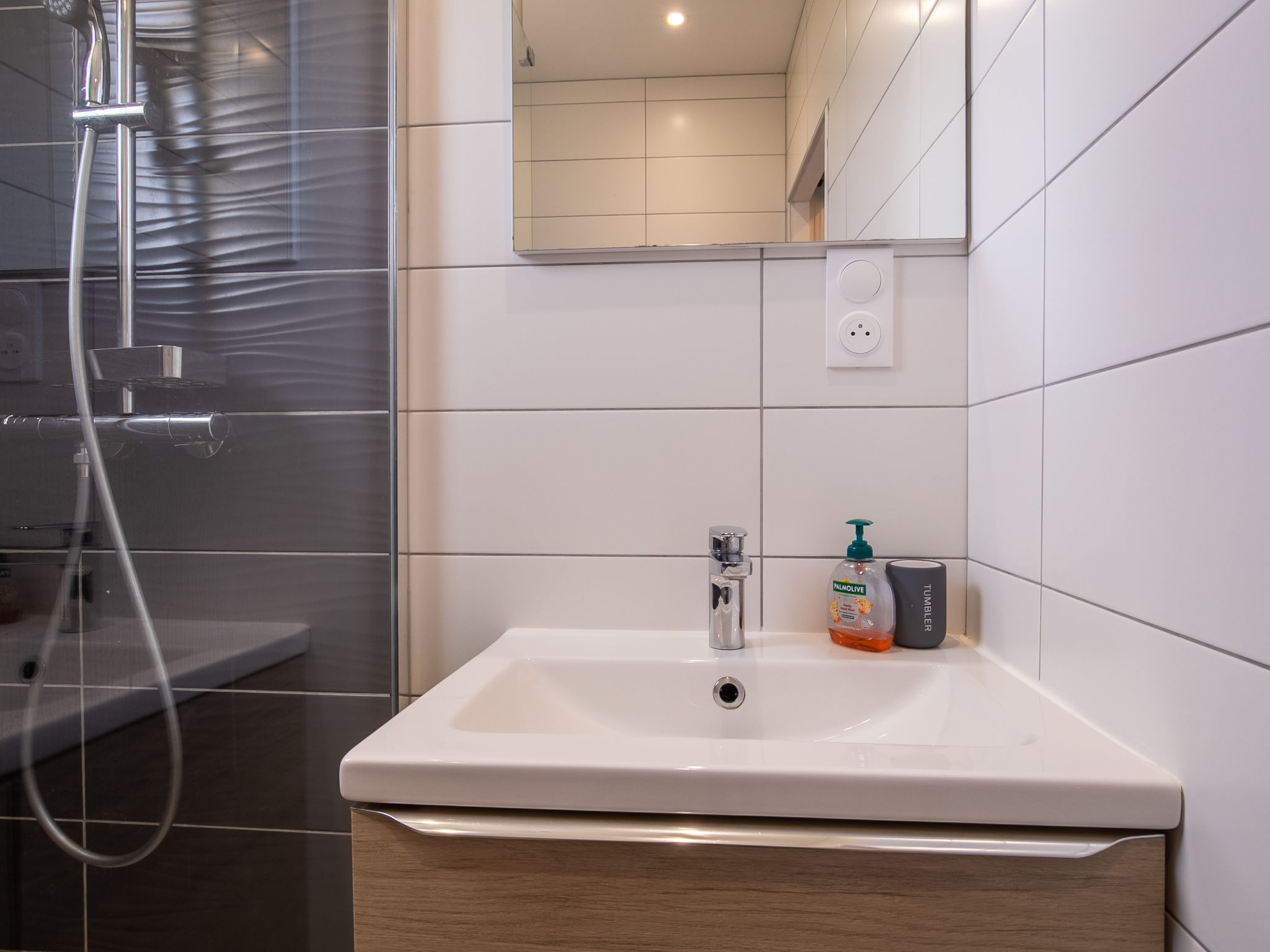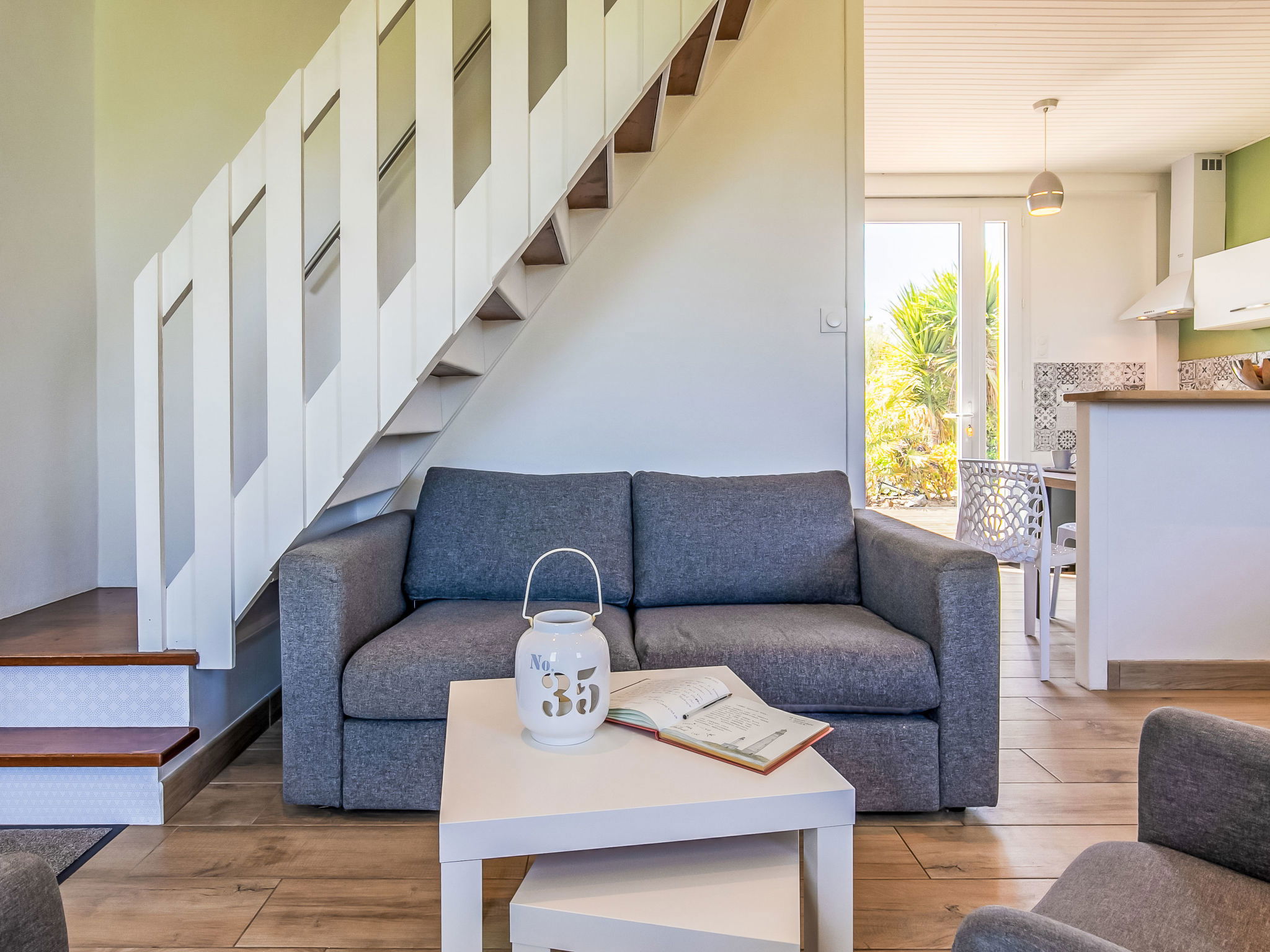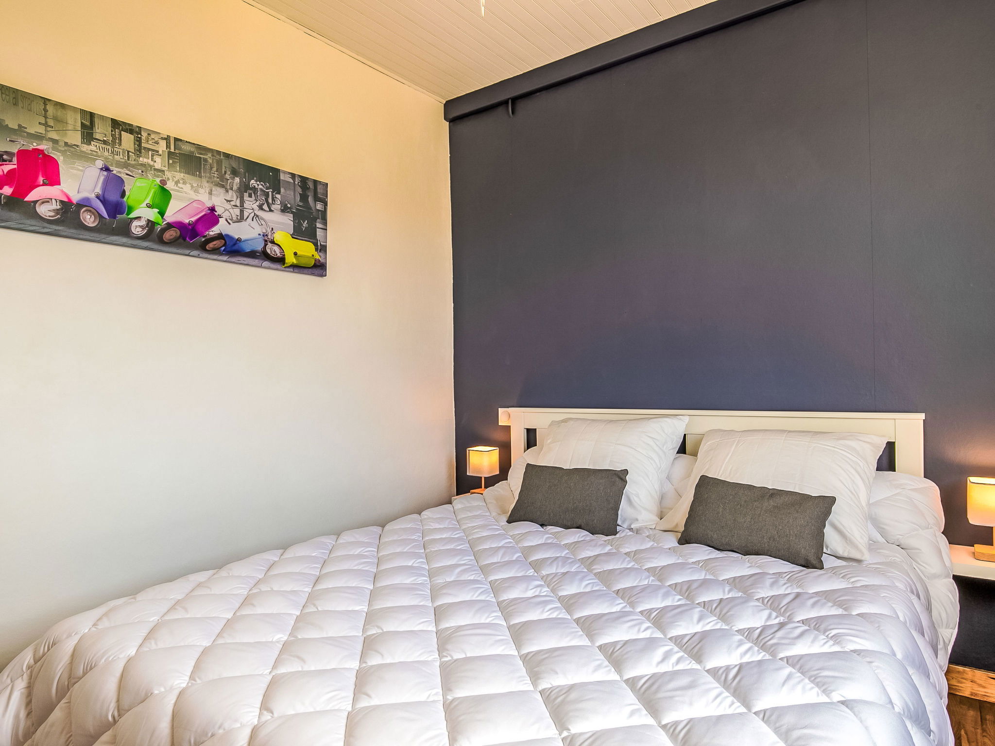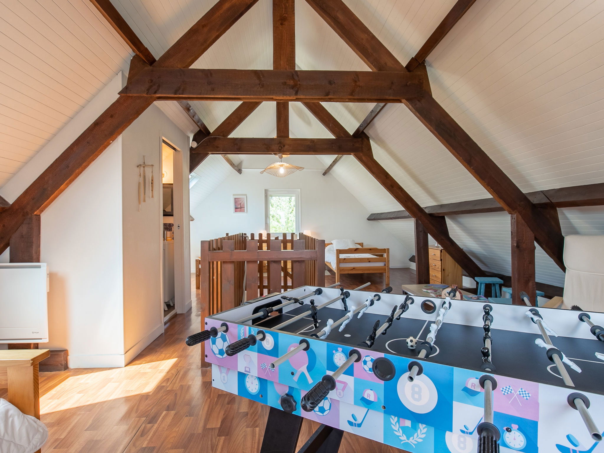 "Le Bruit de la Mer - ", 4-room house 90 m2. Bright, fully renovated in 2021, comfortable and tasteful furnishings: living/dining room with satellite TV, international TV channels and wood-burning stove. Exit to the garden, to the terrace. 2 rooms, each room with 1 french bed (160 cm, length 200 cm). Open kitchen (oven, dishwasher, 4 ceramic glass hob hotplates, toaster, kettle, microwave, freezer, electric coffee machine) with small dining table. Exit to the terrace. Shower, sep. WC. Upper floor: (steep stair) open living/sleeping room 20 m2, with sloping ceilings with 2 beds (90 cm, length 190 cm), electric heating. Parquet floors. Terrace, south facing position and west facing position. Terrace furniture, barbecue (portable), deck chairs (2), box-room. Facilities: washing machine, dryer, iron. Internet (WiFi, free). Please note: non-smoking house. Maximum 2 pets/ dogs allowed. Smoke alarm.