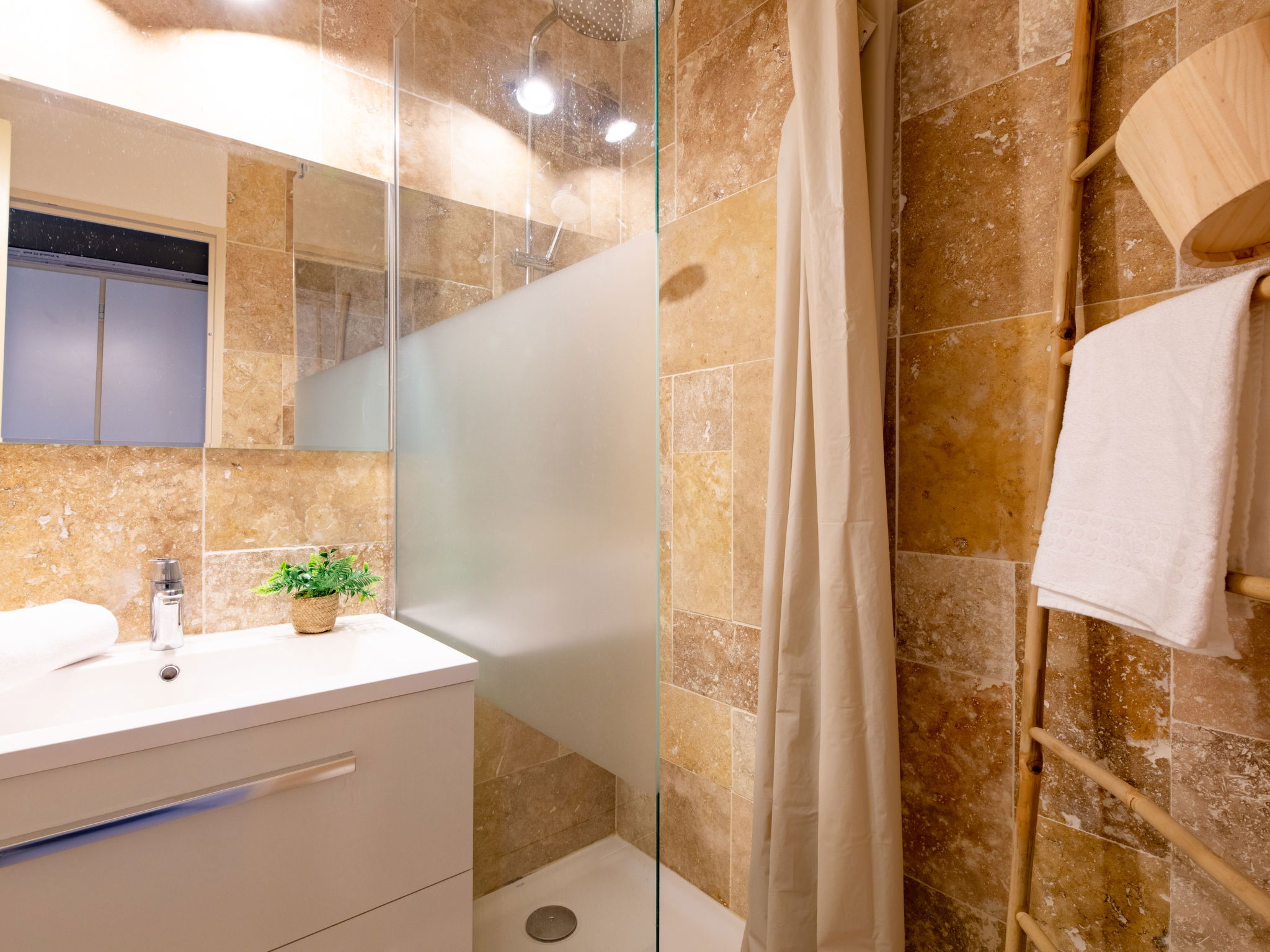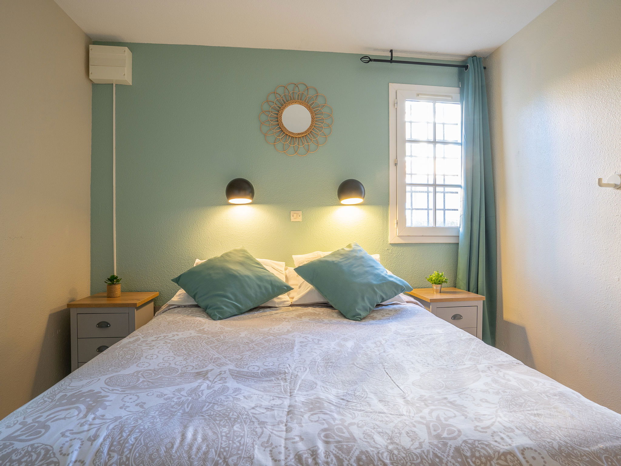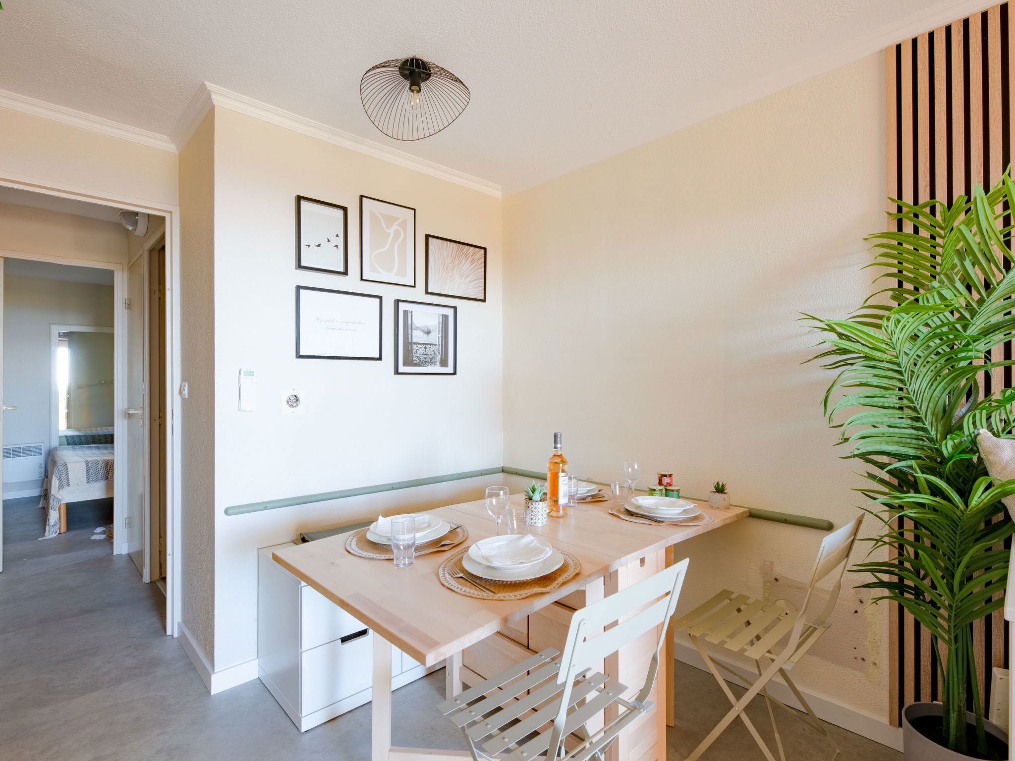 "L'Esquinade ", 2-room apartment 30 m2, on the ground floor. Renovated in 2022, comfortable furnishings: living room with 1 pull-out bed (2 x 80 cm, length 190 cm), TV (flat screen), air conditioning. Exit to the terrace, to the patio. 1 room with 1 french bed (140 cm, length 190 cm). Kitchenette (2 hot plates, dishwasher, toaster, kettle, microwave, freezer, electric coffee machine, Capsules for coffee machine (Nespresso) extra). Shower, sep. WC. Electric heating. Terrace 12 m2, patio. Terrace furniture, deck chairs (1). View of the sea. Facilities: children's high chair, baby cot for up to 2 year olds. Internet (WiFi, extra). Parking space n 2670 (roofed, 1 car), height 180 cm. Please note: suitable for families. Non-smokers only. Maximum 1 small pet/ dog allowed. Smoke alarm. Offer by a private individual according to Art. 155, IV of CGI.
