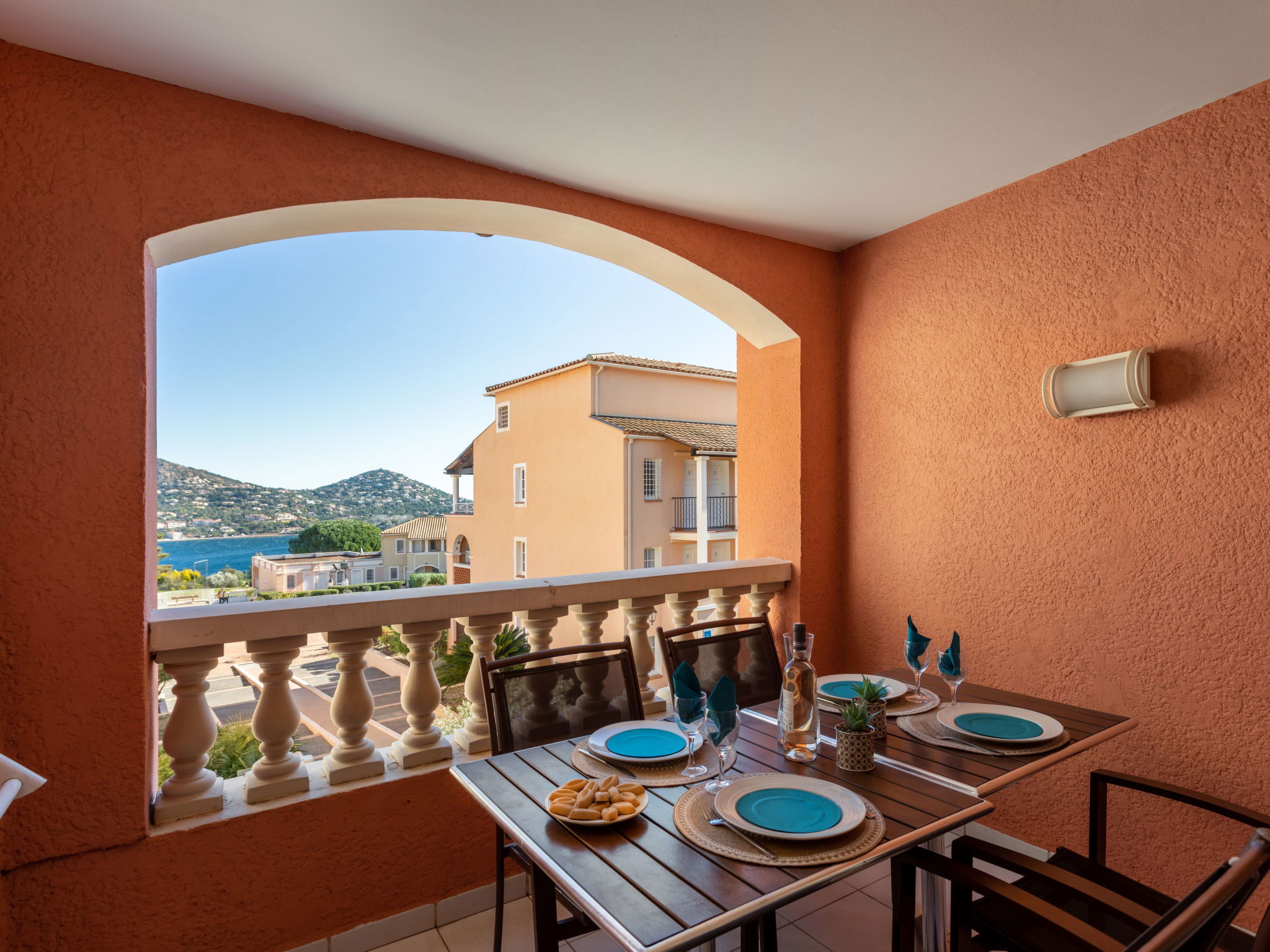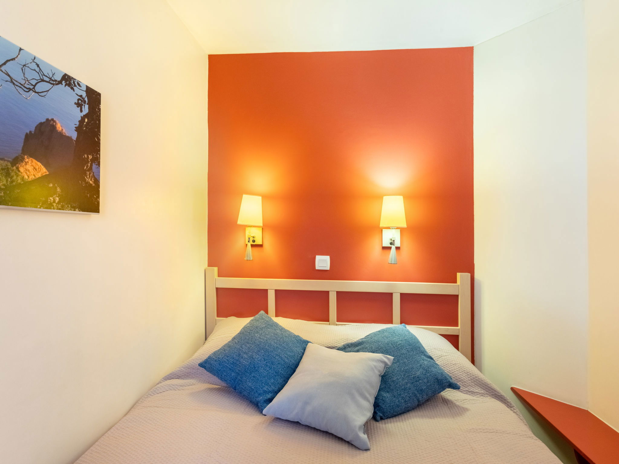 Large resort "Village Cap Estérel - Le Village". On the outskirts, 2 km from the centre of Agay, on a slope, in the residential district, 900 m from the sea, 900 m from the beach, road to cross, on the golf course, in a pedestrian area. For shared use: park 210 ha, 5 swimming pools (seasonal availability: 06.Apr. - 03.Nov.). Children's pool, boccia, children's playground (slide, swing). In the complex: spa area (extra), shopping facilities, laundry (extra). Shop 500 m, grocery, supermarket 6 km, restaurant 500 m, bakery, bus stop "Ligne 21" 300 m, railway station "Saint-Raphaël-Valescure TGV" 9 km, sandy beach "Tiki Plage" 900 m. Marina 1 km, golf course (9 hole), tennis 500 m. Nearby attractions: Anthéor 8 km, Saint-Raphaël 9 km, Fréjus 13 km, Cannes 33 km, Saint-Tropez 50 km, Nice 76 km. Well-known lakes can easily be reached: Lac Saint-Cassien. Hiking paths: Massif de l'Estérel. Please note: car-free holiday complex, no lift. Entertainment in the season. Suitable for families, childminding in the season (extra). Guarded residence. Additional accommodations can be booked. Access to the apartments is via steps, even on the ground floor.