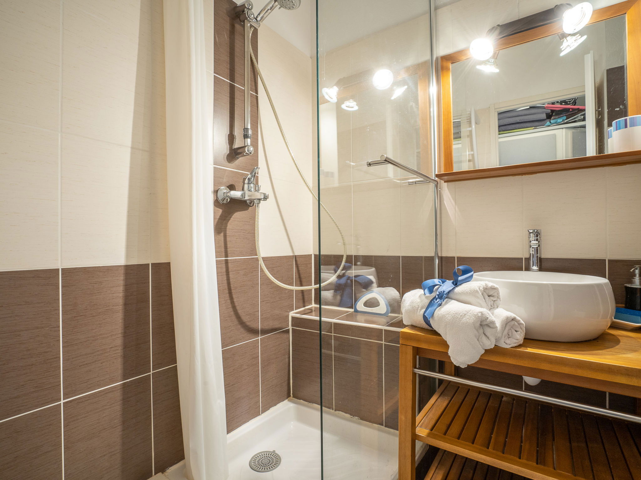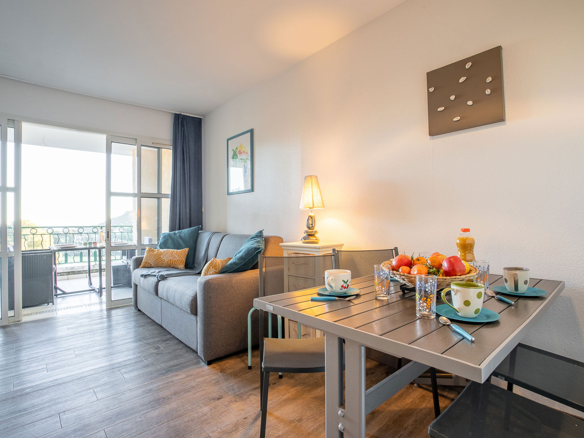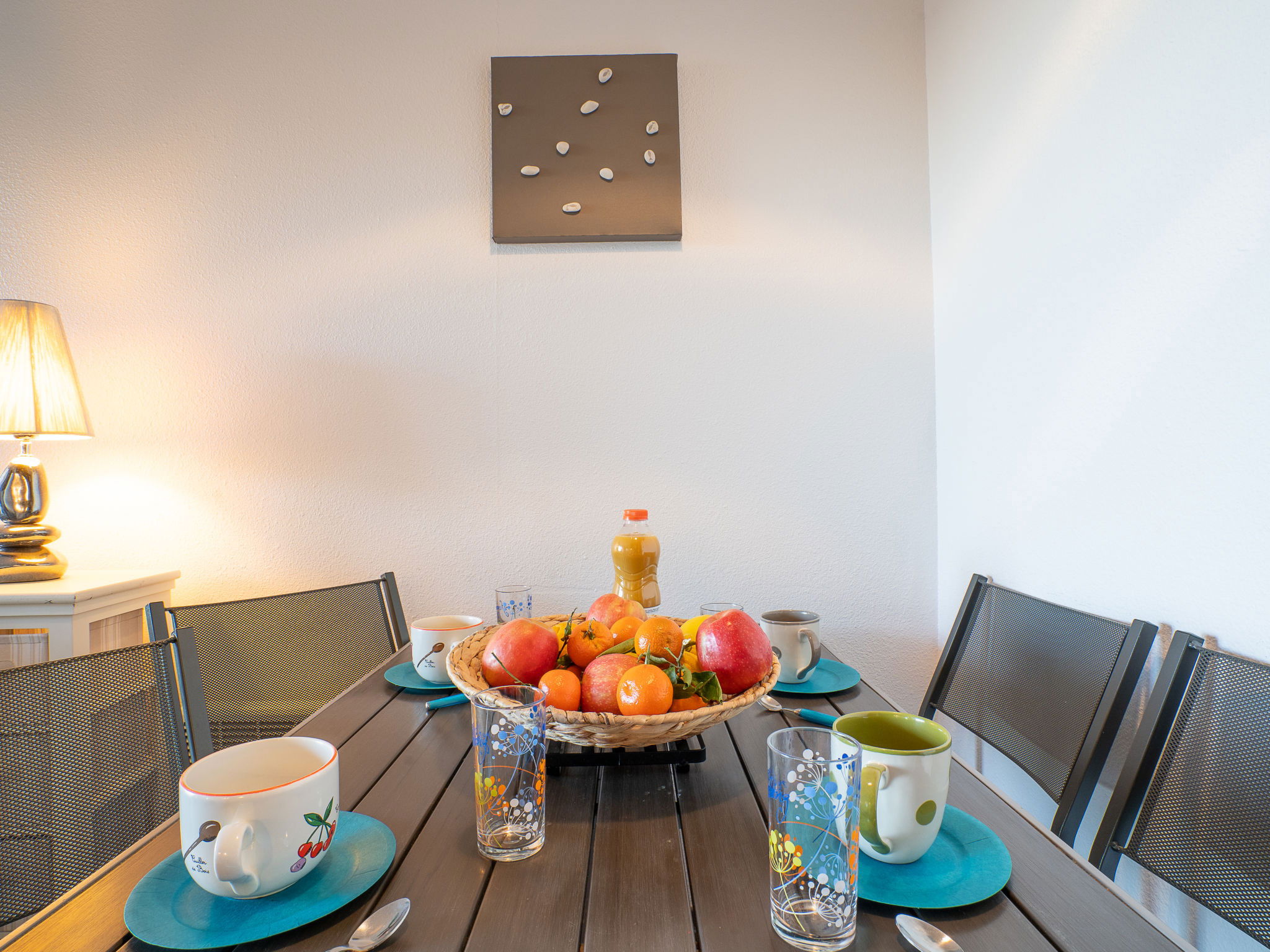 "Le Village ", 1-room studio 23 m2 on 1st floor. Object suitable for 2 adults + 2 children. Renovated in 2021, beautiful and cosy furnishings: living room with 1 double sofabed (140 cm, length 190 cm), TV (flat screen). Exit to the terrace. Sleeping alcove with 1 x 2 bunk beds (90 cm, length 190 cm). Kitchenette (2 induction hot plates, toaster, kettle, microwave, freezer, electric coffee machine, Capsules for coffee machine (Senséo)). Shower/WC. Electric heating. Terrace 8 m2, roofed. Terrace furniture. View of the sea. Facilities: washing machine. Internet (WiFi, extra). Reserved parking (1 car). Please note: non-smokers only. Smoke alarm. Instead of an enclosed bedroom, some sleeping areas are located in an open-plan area (gallery, alcove, etc.). Offer by a private individual according to Art. 155, IV of CGI.