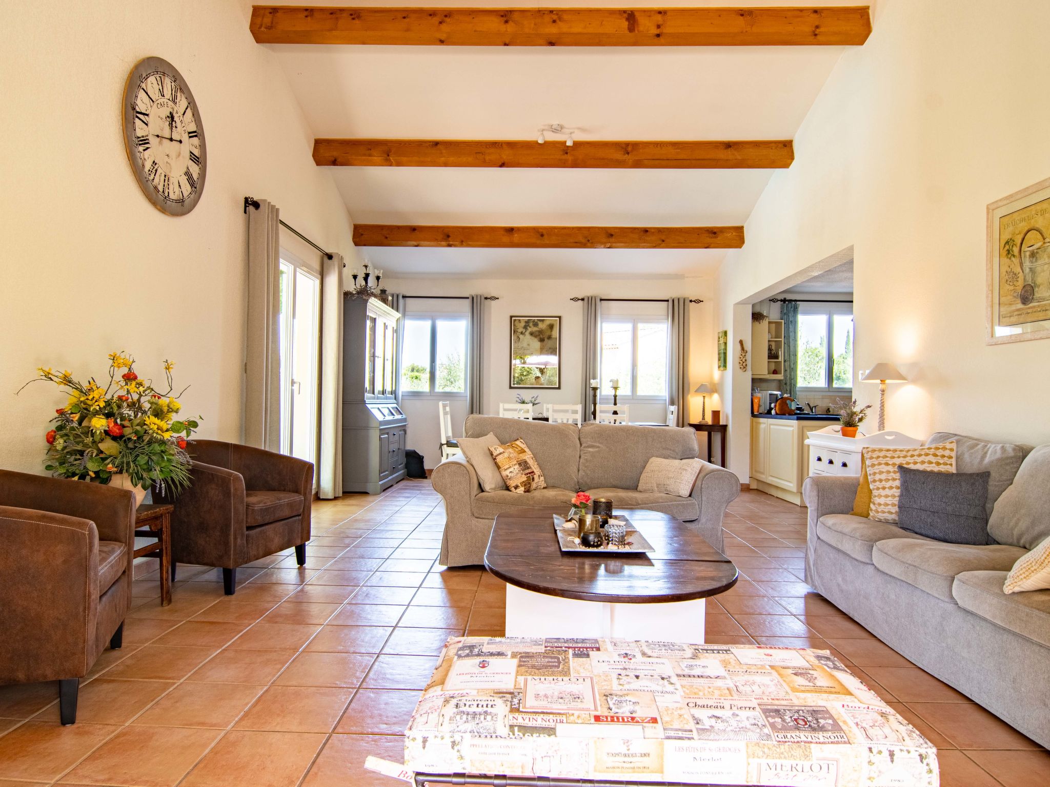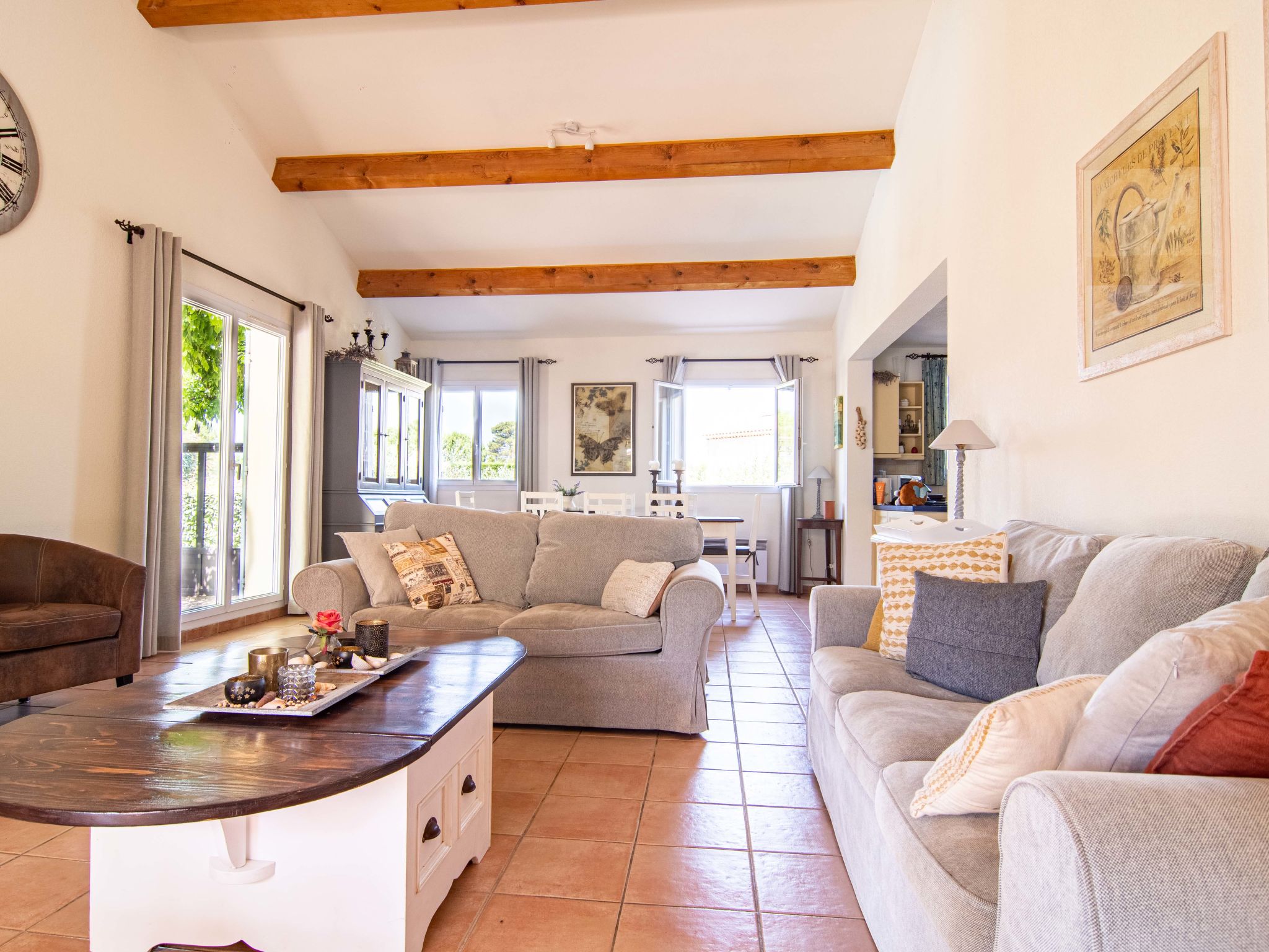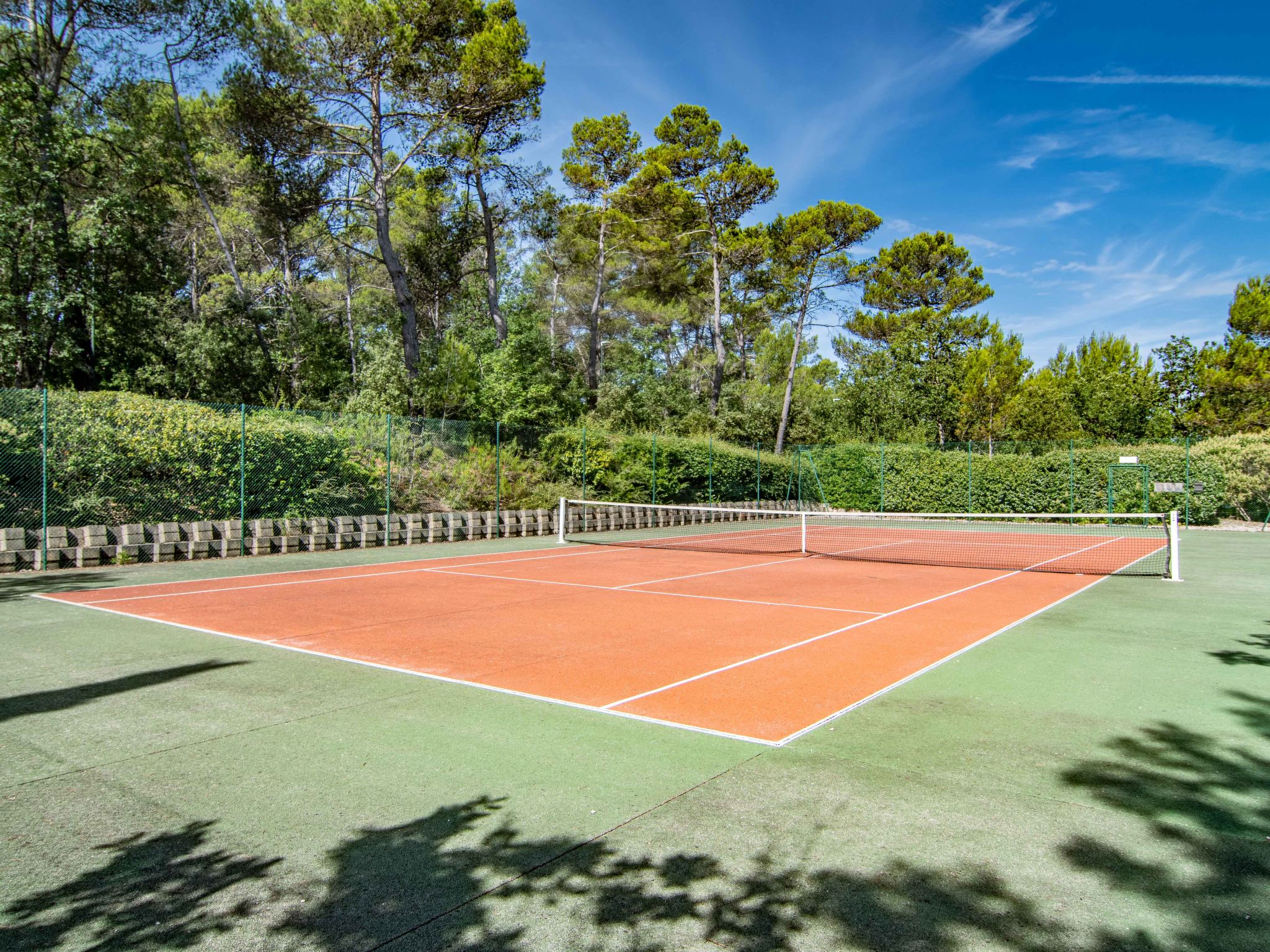 Residence "Le Jardin du Golf". 59 houses in the residence. 2 km from the centre of Nans les Pins, 11 km from the centre of Saint Maximin La sainte Baume, 26 km from the centre of Aubagne, 46 km from the sea, 56 km from the lake. For shared use: tennis (2 x hard court), table tennis, boccia. Private: well-kept garden 1'000 m2, swimming pool (10 x 5 m, depth 50 - 190 cm, seasonal availability: 01.Jun. - 12.Oct.) with shutter cover. In the complex: reception, bar, playroom. Bread roll service. Grocery 2 km, restaurant 2 km, café 2 km, bus stop 500 m, sandy beach "Prado Marseille" 46 km. Golf course (18 hole) 1.3 km. Nearby attractions: Circuit du Castellet 55 km, Calanques de Cassis 41 km, Aix en Provence 51 km. Hiking paths: Parc régional de La Sainte Beaume. Please note: entertainment in the season. The house is located on an estate which also has a free-form communal swimming pool open from 01.05 to 01.10.