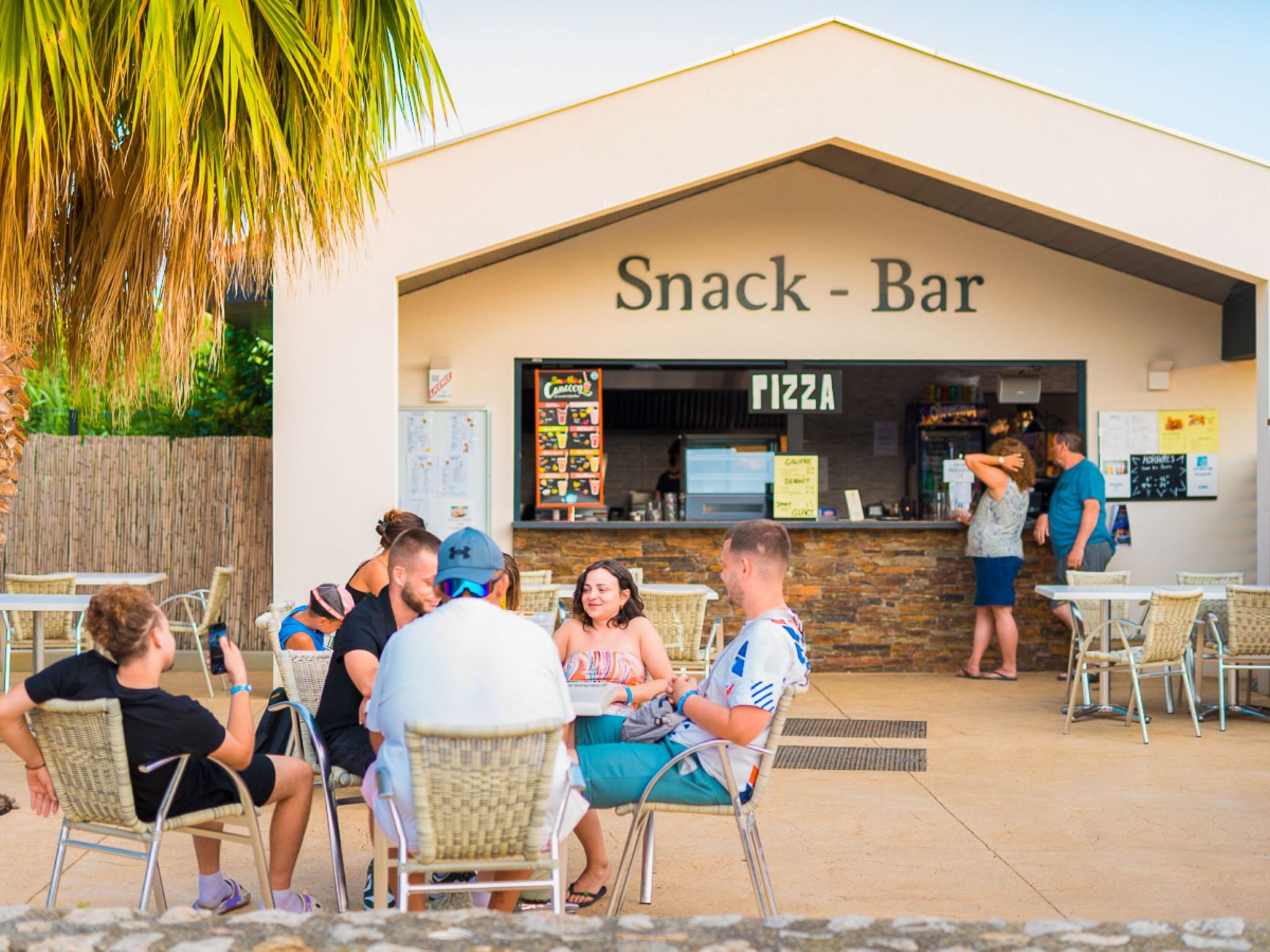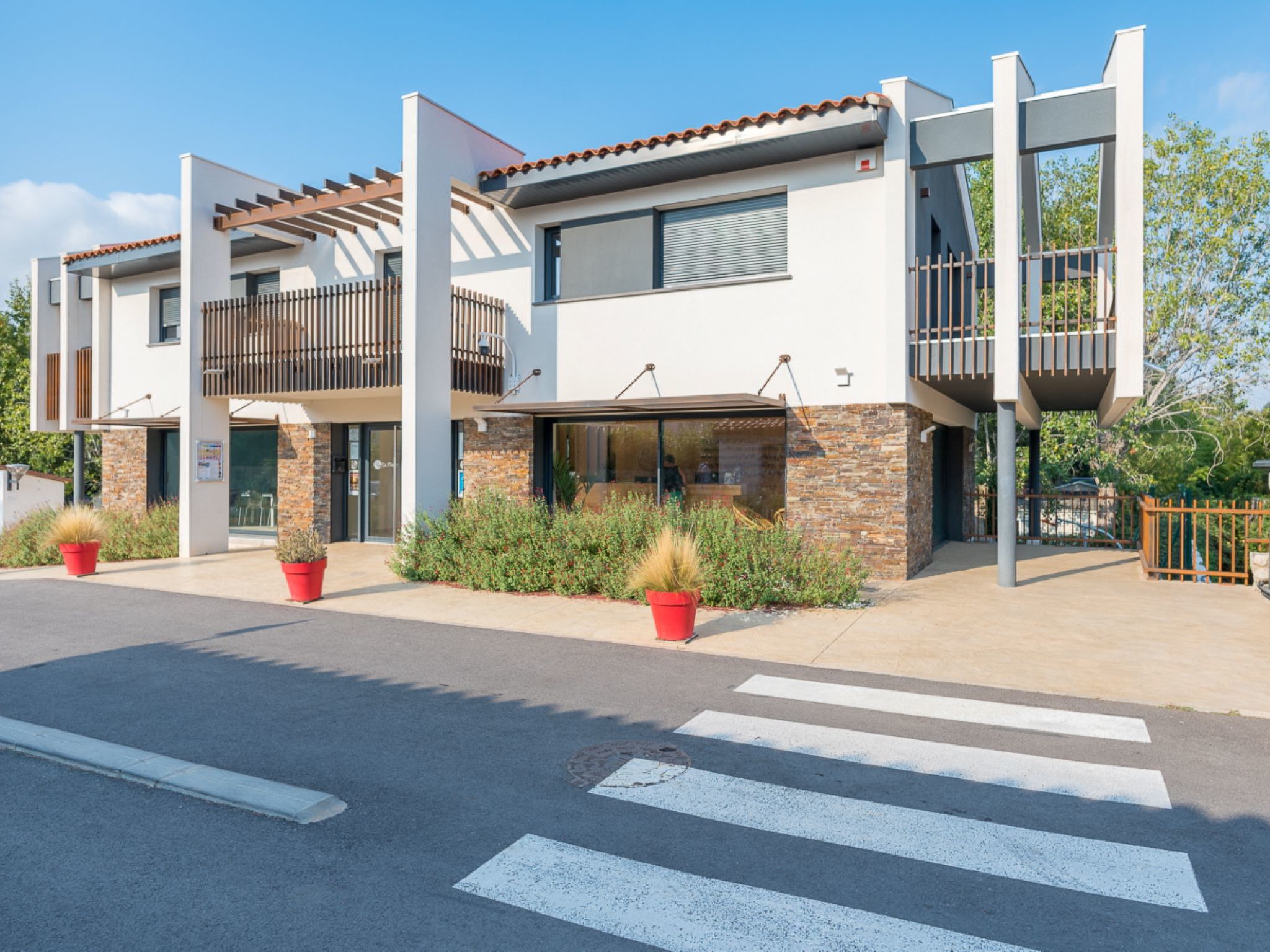 Resort "Camping La Plage". 193 houses in the residence. 200 m from the centre, 200 m from the sea, road to cross. For shared use: property, trees, swimming pool (24 x 8 m, depth 152 cm, seasonal availability: 03.Apr. - 20.Sep.). Children's pool, boccia, children's playground. Private: property 90 m2. In the house: reception, washing machine, tumble dryer (for shared use, extra). Parking on the premises. Shop 50 m, bus stop "Rond-point des évadés" 2 km, sandy beach 200 m. The owner does not accept any groups. Please note: the photograph shows a typical example. The holiday properties may differ in living space, floorplan, equipment and furnishing.