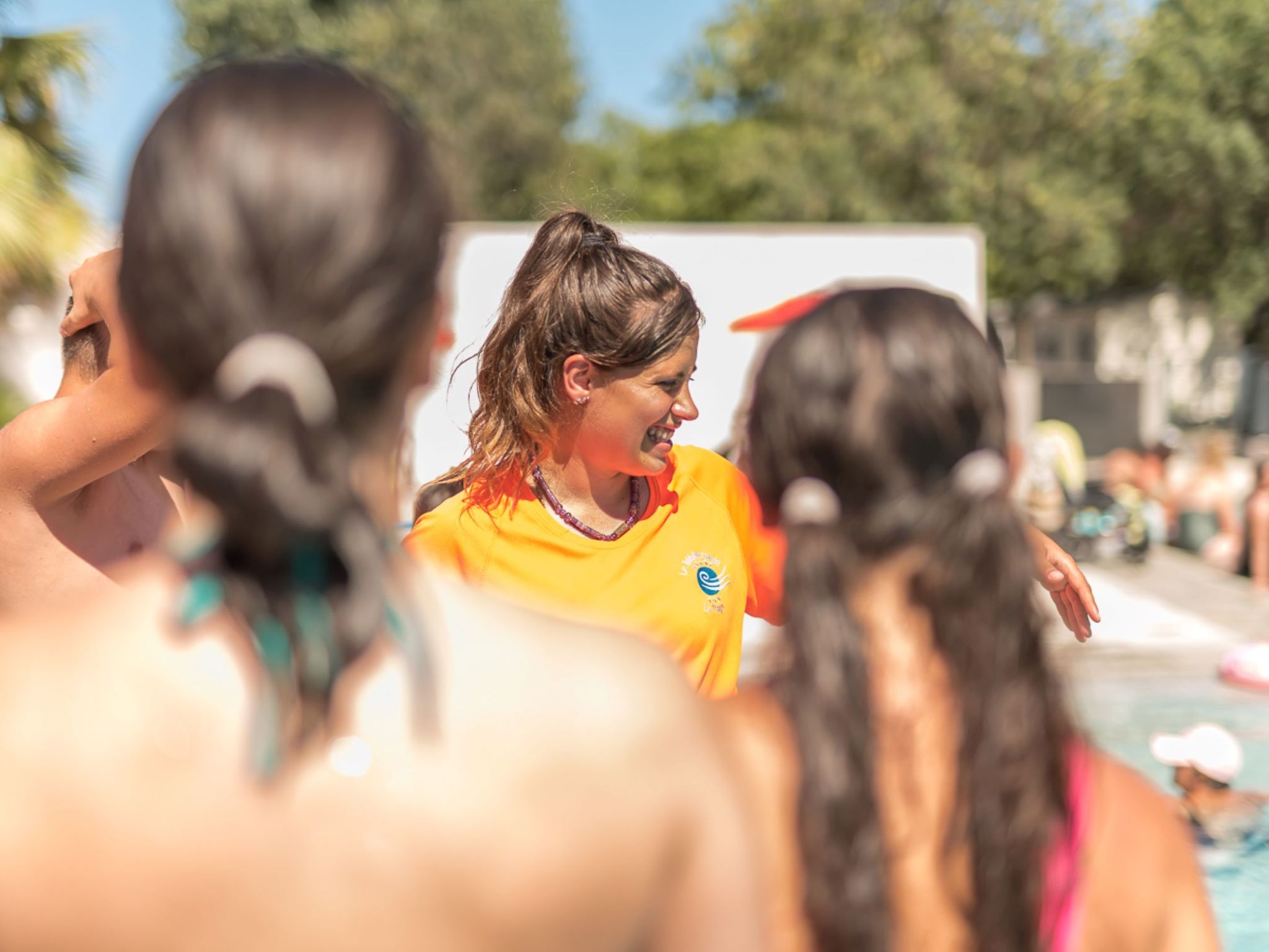 Resort "Camping La Plage". 193 houses in the residence. 200 m from the centre, 200 m from the sea, road to cross. For shared use: property, trees, swimming pool (24 x 8 m, depth 152 cm, seasonal availability: 03.Apr. - 20.Sep.). Children's pool, boccia, children's playground. Private: property 90 m2. In the house: reception, washing machine, tumble dryer (for shared use, extra). Parking on the premises. Shop 50 m, bus stop "Rond-point des évadés" 2 km, sandy beach 200 m. The owner does not accept any groups. Please note: the photograph shows a typical example. The holiday properties may differ in living space, floorplan, equipment and furnishing.