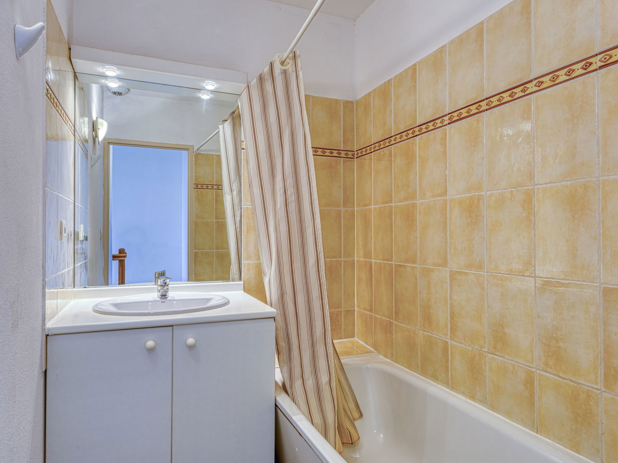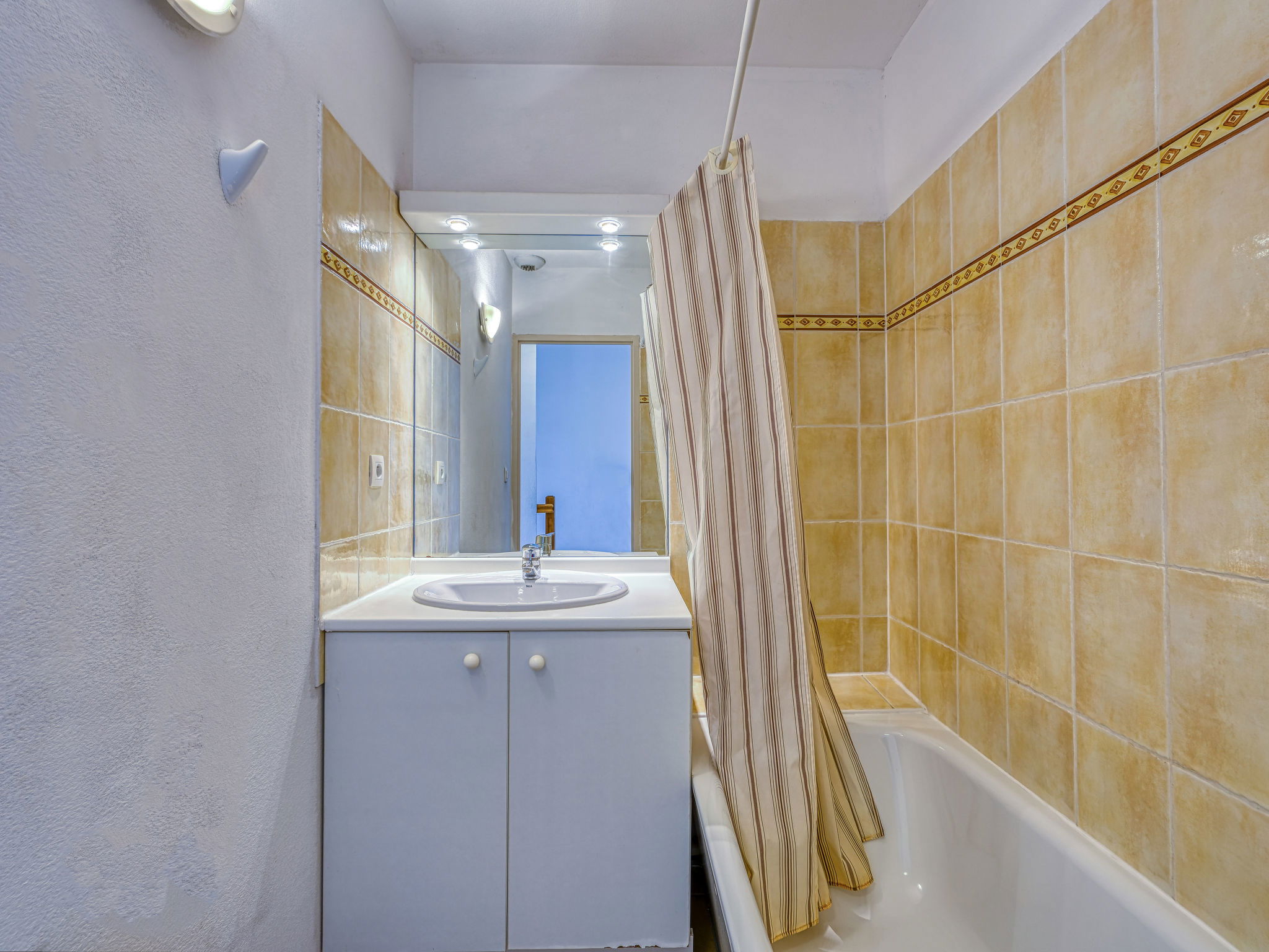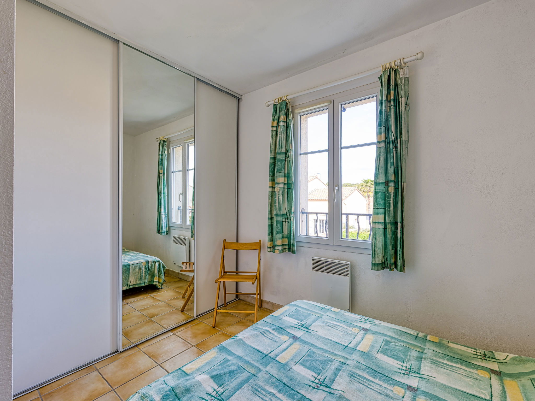 Residence "Les Grandes Bleues 3". 500 m from the centre of Narbonne-Plage, in a quiet position, 500 m from the sea, road to cross. For shared use: garden (fenced). Children's playground, parking, public parking on the road. Shop, grocery, restaurant, bar 500 m, bus stop 300 m, railway station "Narbonne" 17 km, sandy beach 500 m, diving center 2 km, indoor swimming pool 10 km. Sports harbour 2 km, riding stable 5 km. Nearby attractions: Réserve Africaine de Sigean 33 km, Espace balnéoludique Gruissan 6 km, Cité de Carcassonne 73 km.