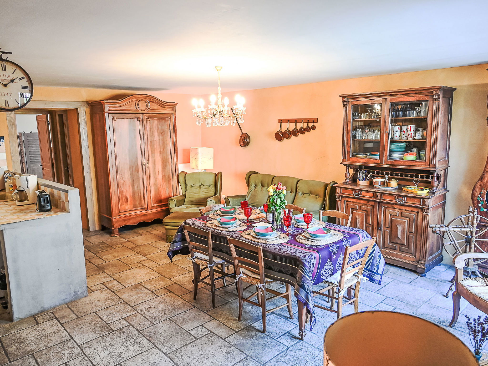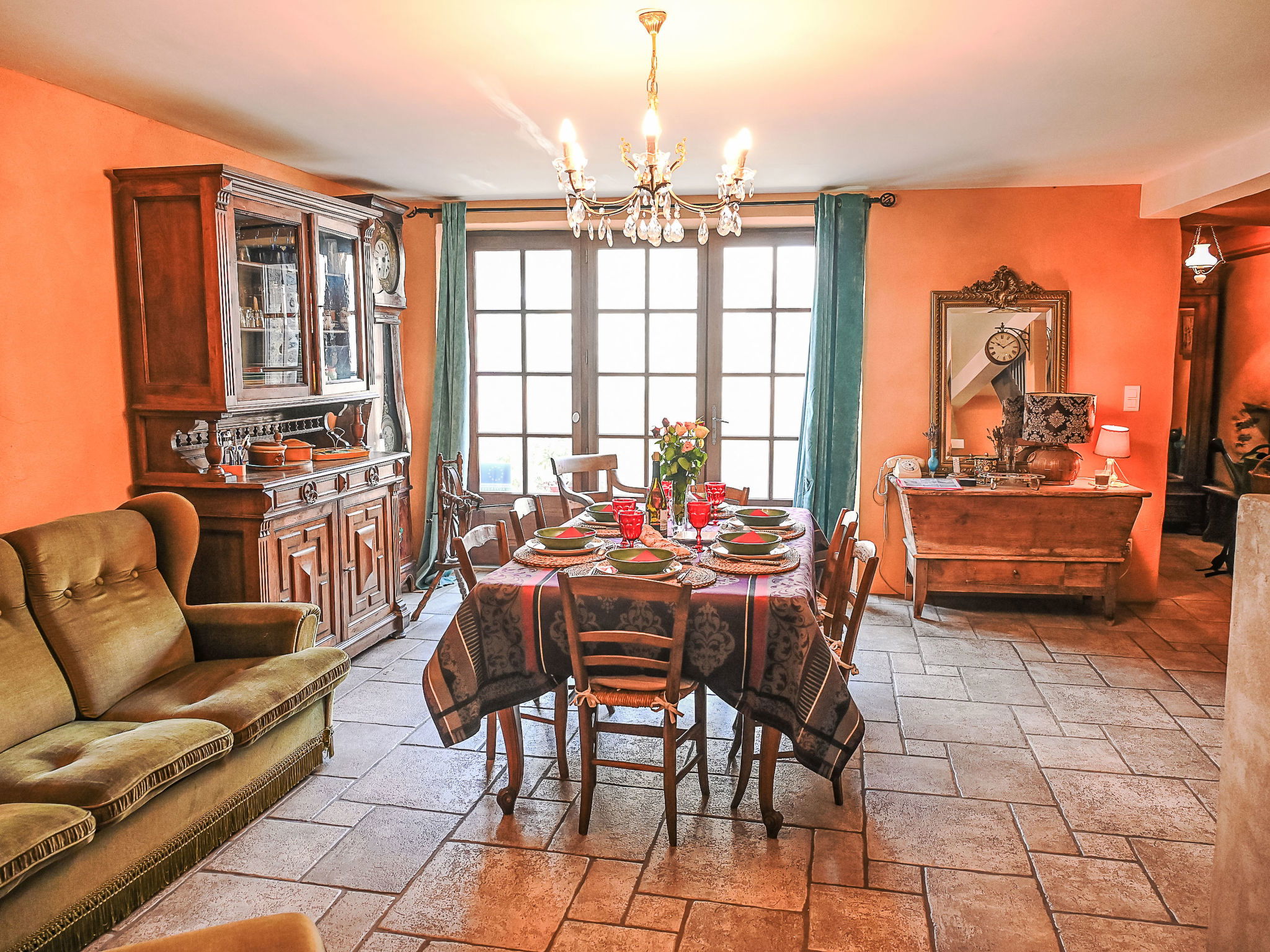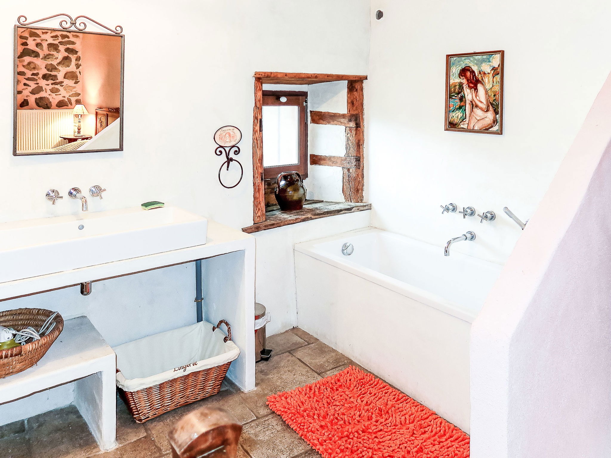 "Varenne", 4-room house 120 m2 on 2 levels. Tasteful and cosy furnishings: 1 room with 1 bed (120 cm, length 190 cm), 1 french bed (140 cm, length 190 cm), bathroom and double hand-basin. Dining room with dining table. Exit to the terrace. Open kitchen (5 hot plates, oven, dishwasher, toaster, kettle, microwave, freezer, electric coffee machine). Sep. WC. Upper floor: living room with TV, hi-fi system and DVD. Exit to the balcony. 1 room with Dressing room with 1 bed (120 cm, length 190 cm), 1 french bed (140 cm, length 190 cm). Shower/WC, double hand-basin. Solar energy heating, oil heating. Natural stone floors. Facilities: washing machine, iron, children's high chair. Internet (WiFi, free). Please note: non-smoking house. Maximum 2 pets/ dogs allowed. Smoke alarm.