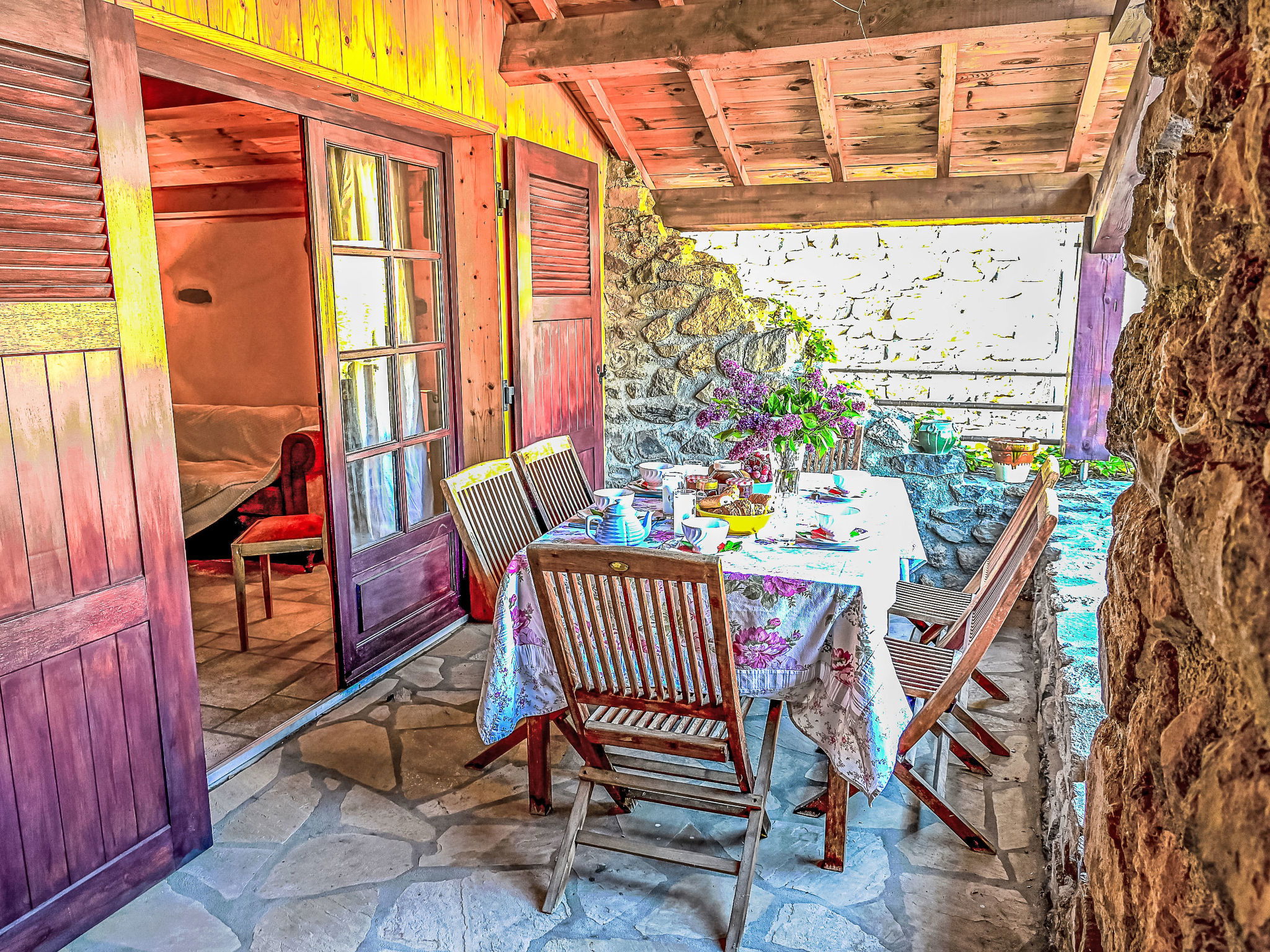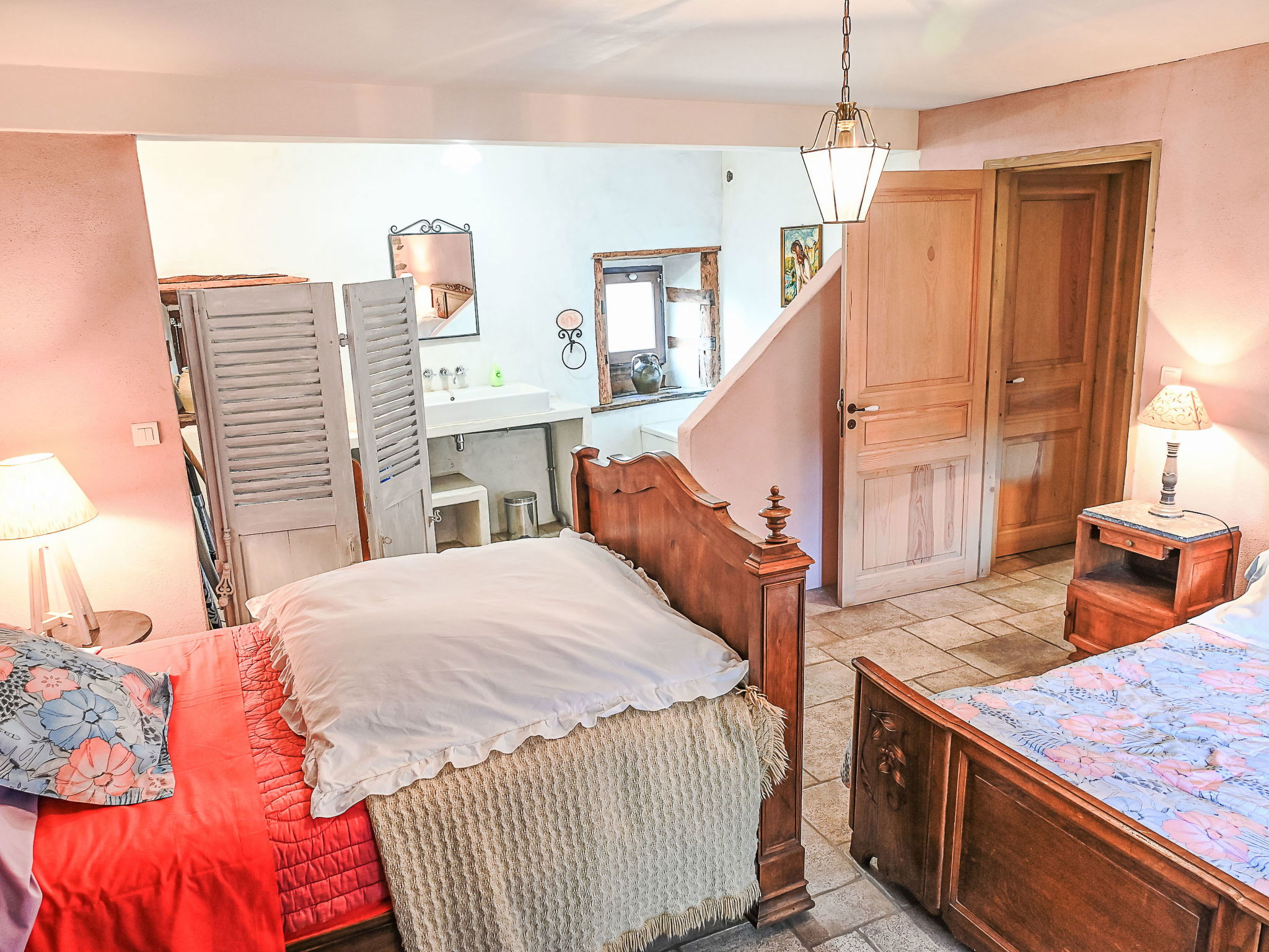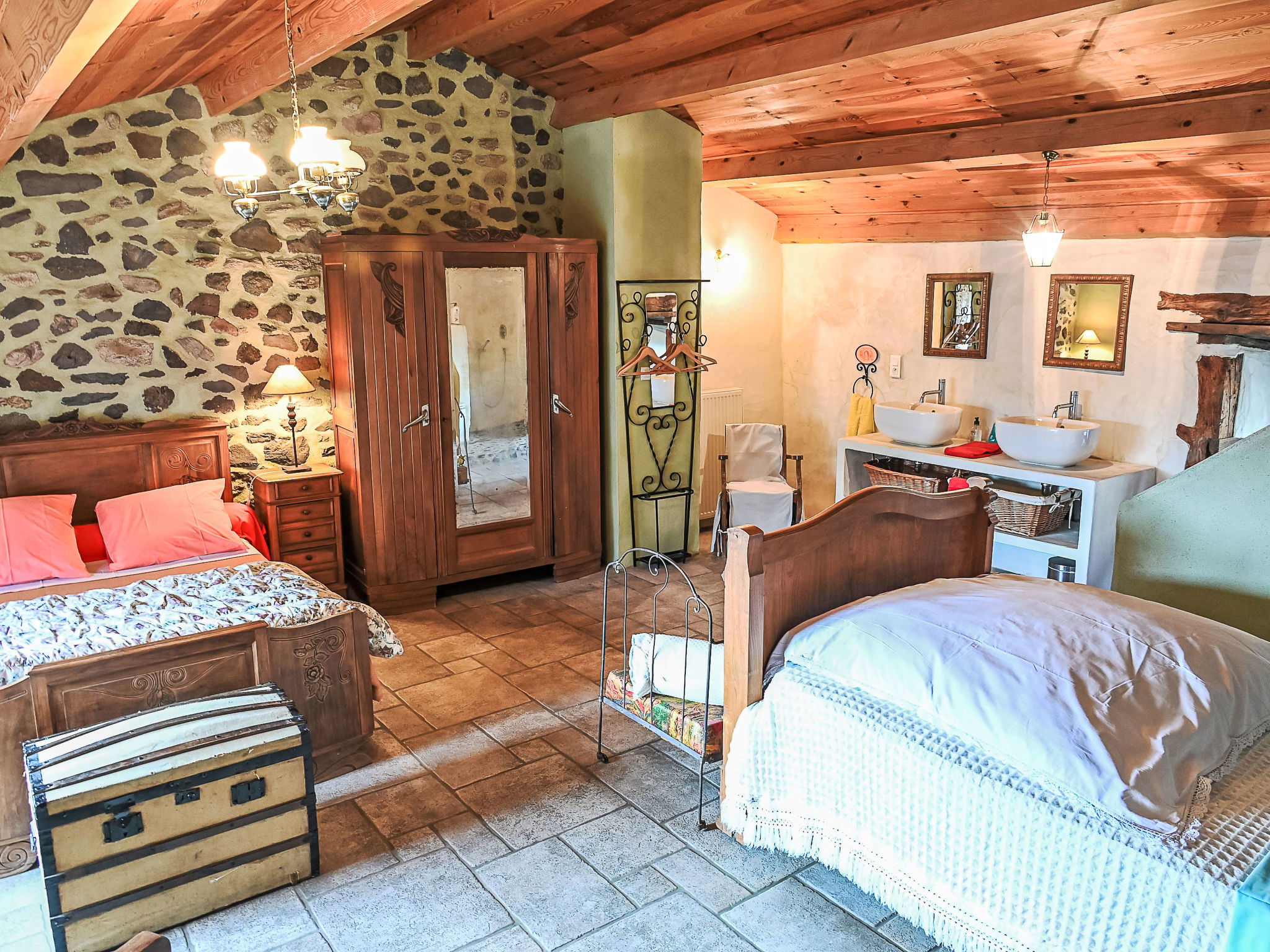 "Varenne", 4-room house 120 m2 on 2 levels. Tasteful and cosy furnishings: 1 room with 1 bed (120 cm, length 190 cm), 1 french bed (140 cm, length 190 cm), bathroom and double hand-basin. Dining room with dining table. Exit to the terrace. Open kitchen (5 hot plates, oven, dishwasher, toaster, kettle, microwave, freezer, electric coffee machine). Sep. WC. Upper floor: living room with TV, hi-fi system and DVD. Exit to the balcony. 1 room with Dressing room with 1 bed (120 cm, length 190 cm), 1 french bed (140 cm, length 190 cm). Shower/WC, double hand-basin. Solar energy heating, oil heating. Natural stone floors. Facilities: washing machine, iron, children's high chair. Internet (WiFi, free). Please note: non-smoking house. Maximum 2 pets/ dogs allowed. Smoke alarm.