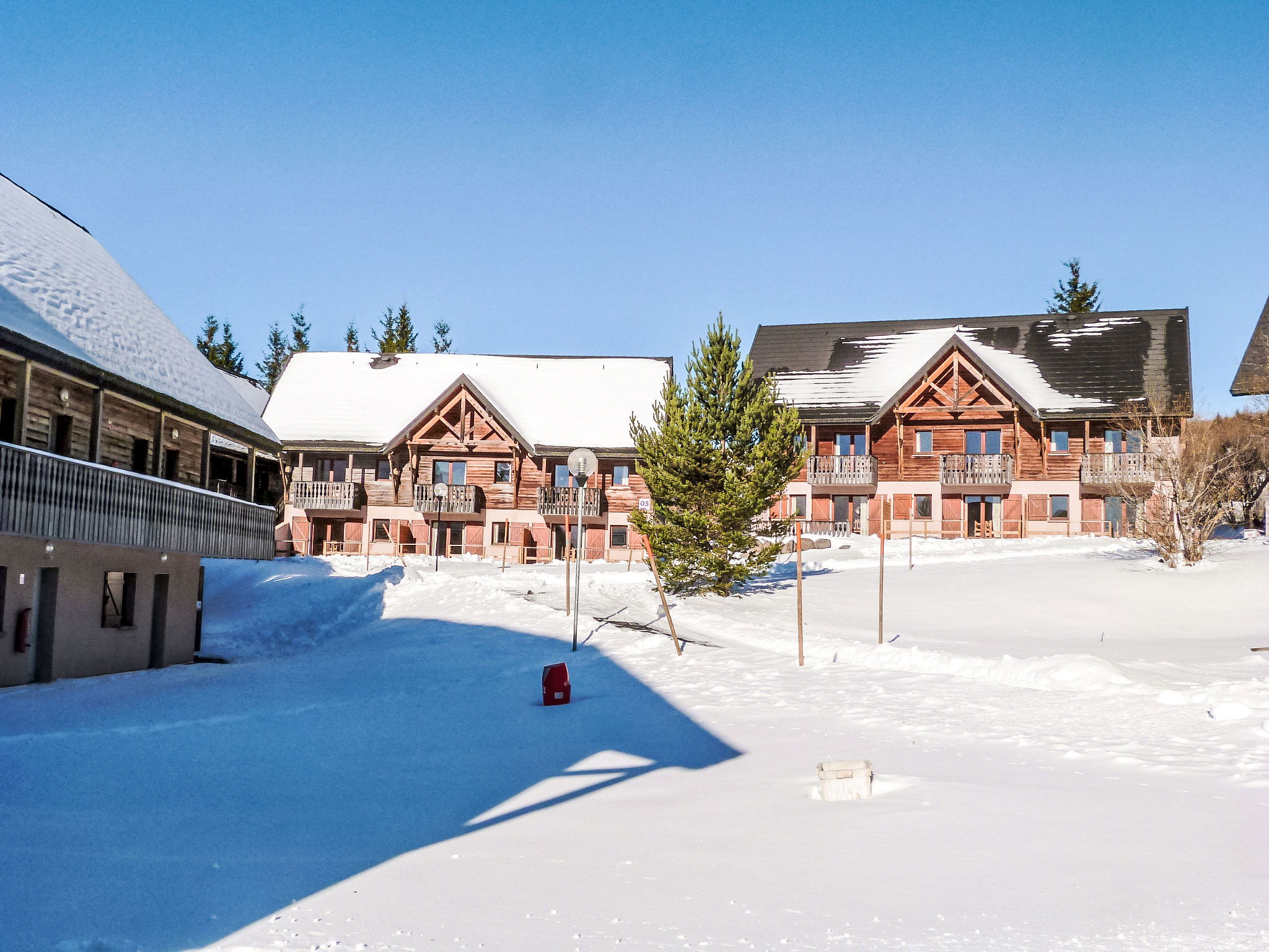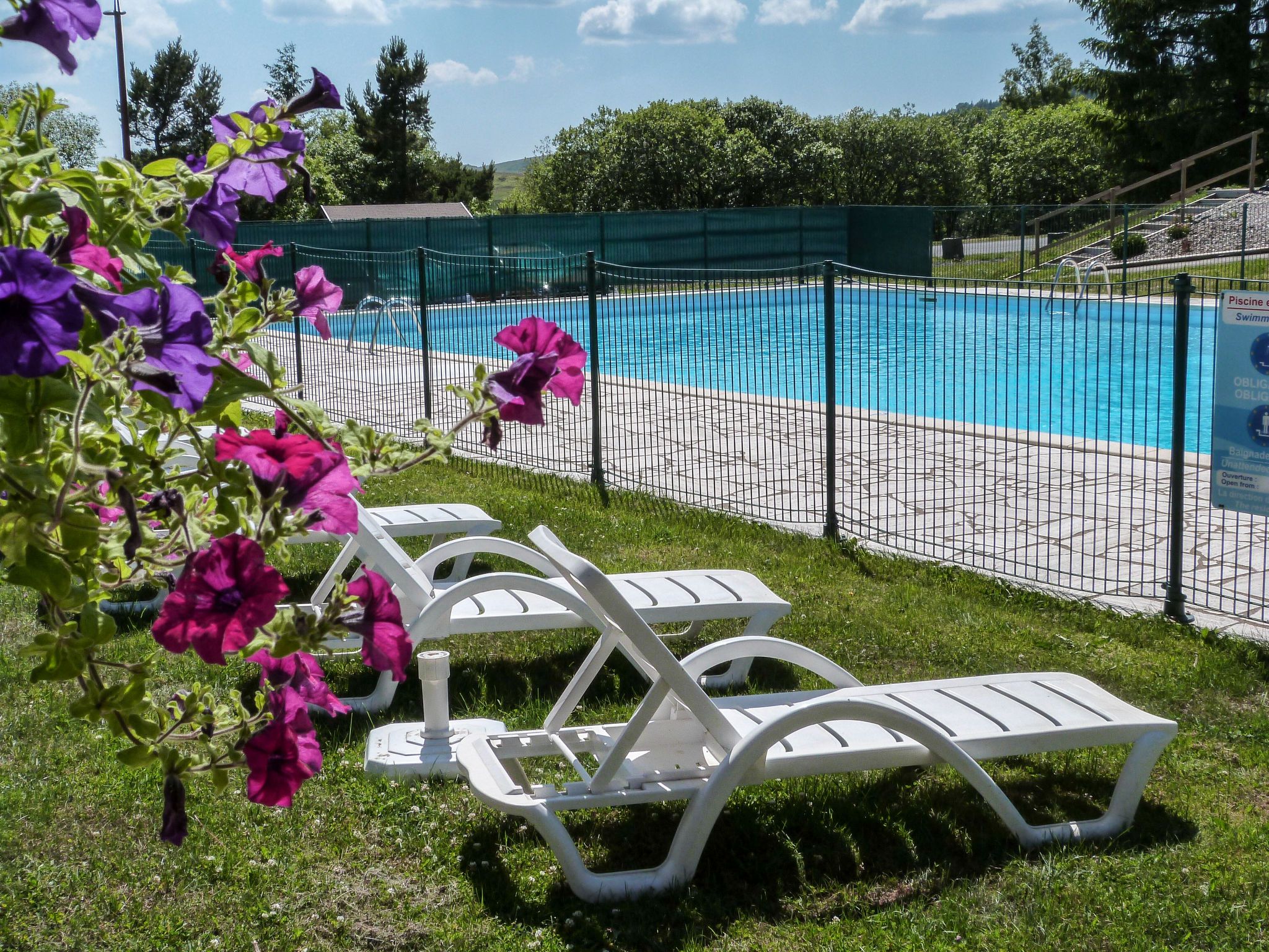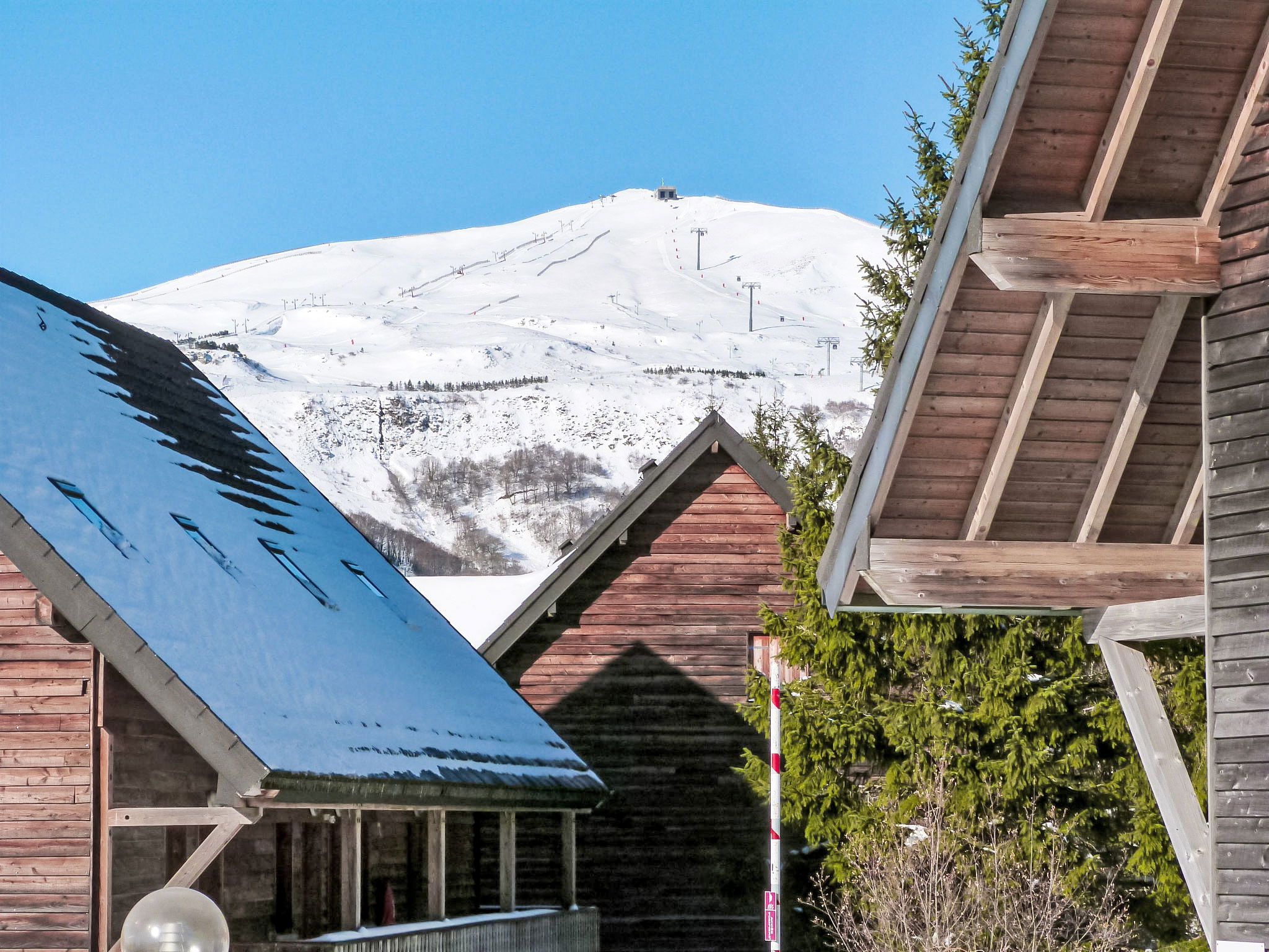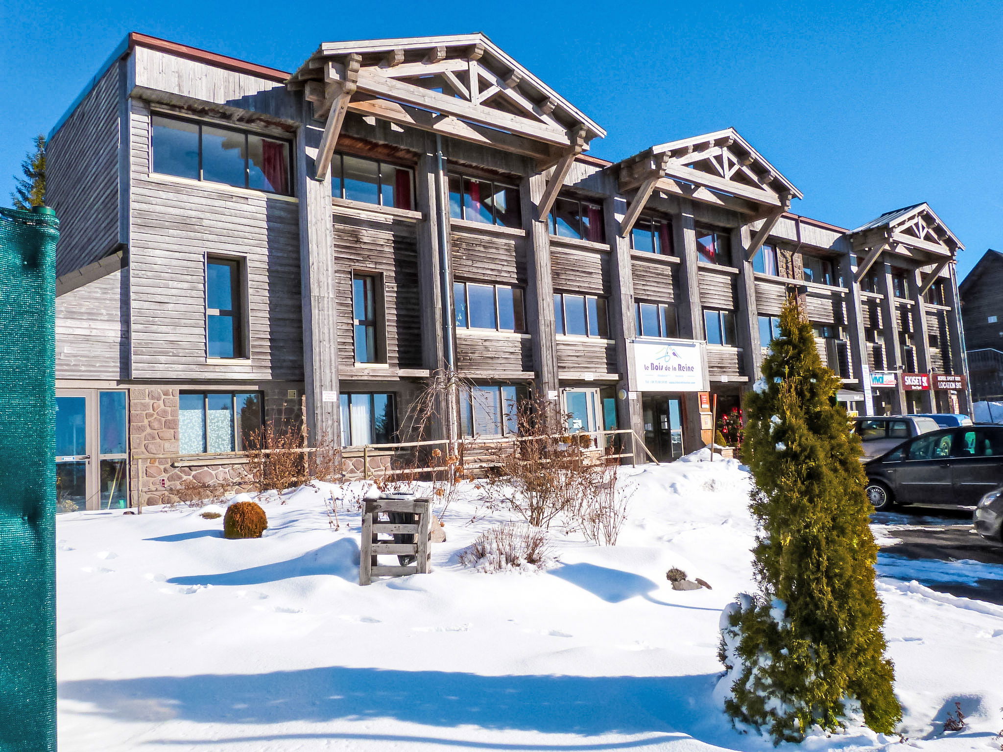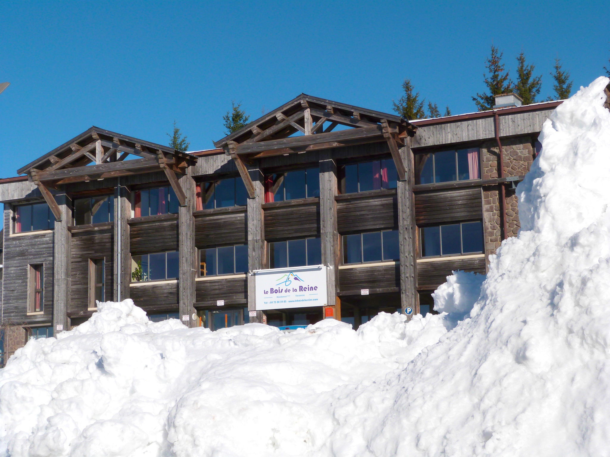 Located at the entrance of the resort, the residence is composed of hamlets divided into 30 chalets with 6 to 8 apartments. Child friendly holiday village "Le Bois de la Reine". In the centre of Super Besse, in the resort, in a quiet position on top of a hill, 2 km from the lake, 1 km from the skiing area, 600 m from the river, in the countryside, in a pedestrian area. For shared use: park with plants and trees, swimming pool heated (10 x 8 m, seasonal availability: 25.Jun. - 02.Sep.). Boccia, children's playground. In the complex: reception, lounge with TV, internet access, sauna (extra). Relaxation room, table tennis, billiard table, playroom, table football, central heating system, washing machine, tumble dryer (for shared use, extra). Bread roll service. Parking. Grocery 600 m, restaurant 800 m, bus stop 300 m, railway station "Clermont-Ferrand" 20 km, park "L'enclos de tibou", lake des Hermines 800 m. Riding stable 2 km, sports centre 600 m, cable car, gondola lift, skisport facilities, slopes, ski school 800 m, sled run 200 m. Nearby attractions: Clermont-ferrand 20 km. Well-known ski regions can easily be reached: Super Besse, Grand Sancy. Well-known lakes can easily be reached: des Hermines 2 km. Hiking paths: GR 4. Please note: car-free holiday complex, car recommended. Reception open 17:00-20:00 hrs. Suitable for families, baby equipment on request (included). Fishing [permit required]. Please note: the photograph shows a typical example. Additional accommodations can be booked.