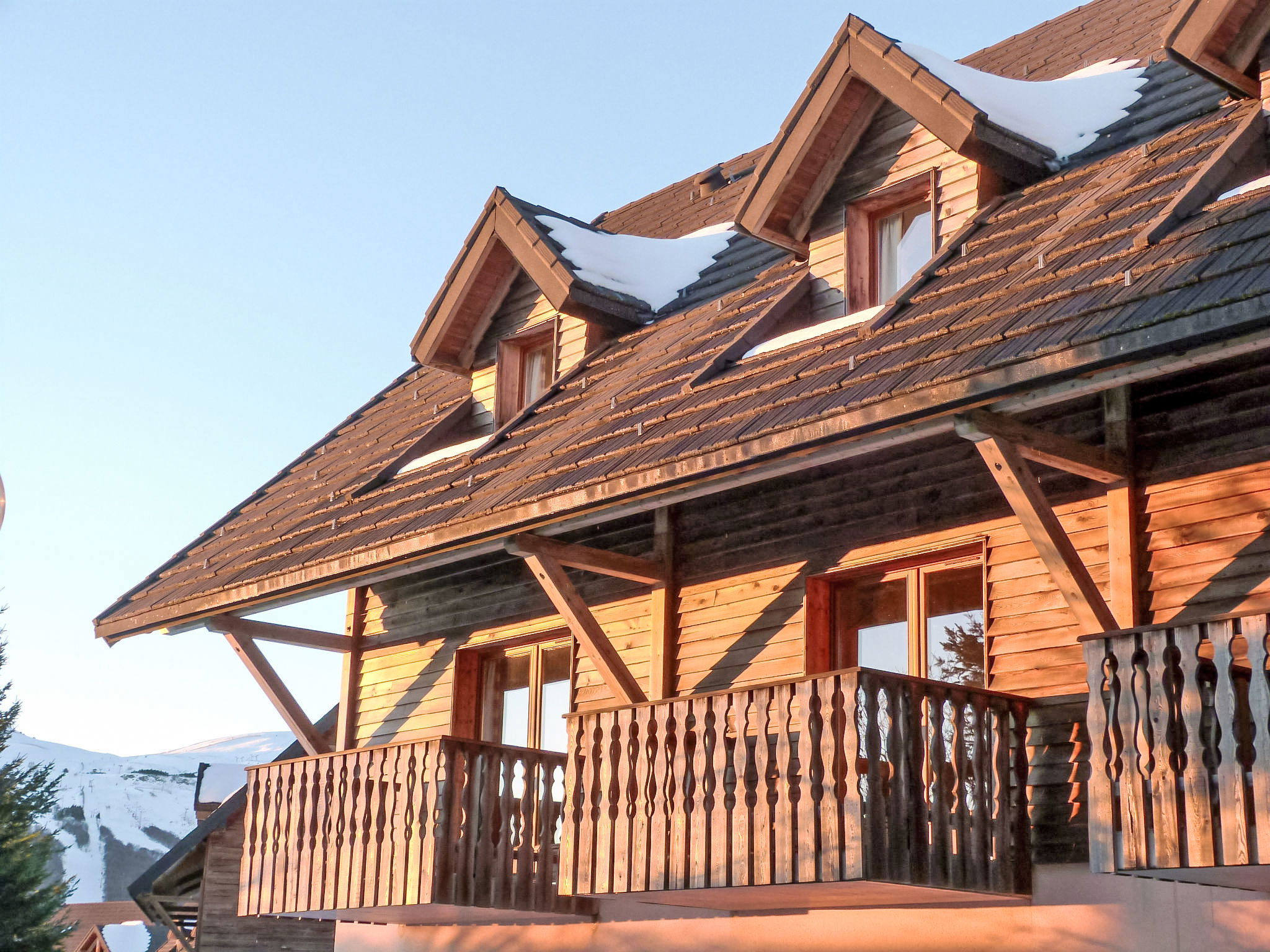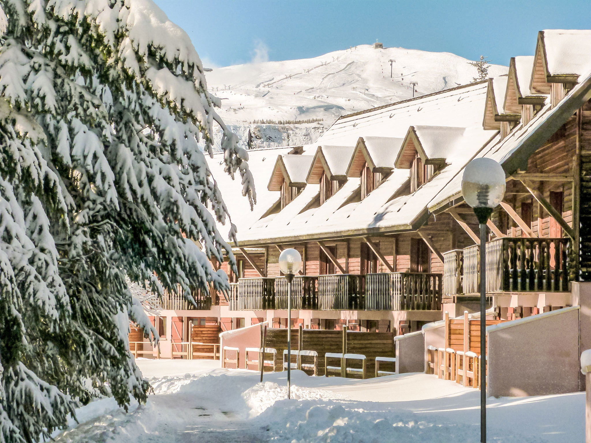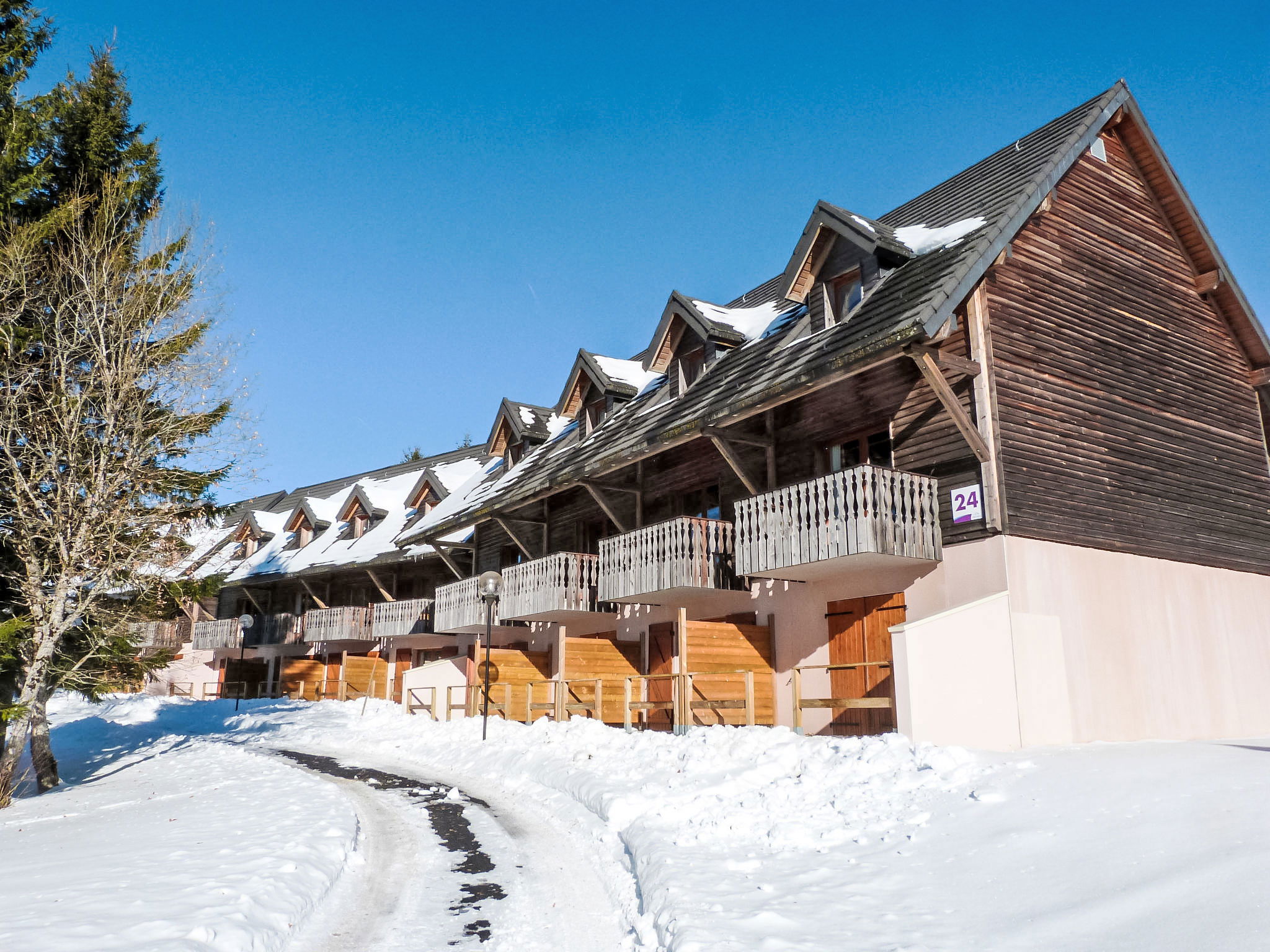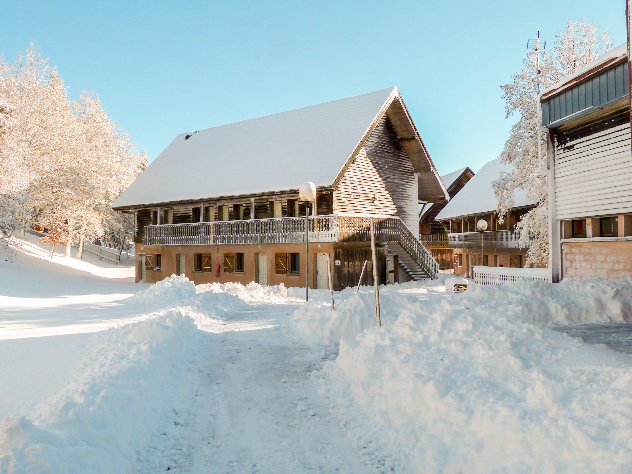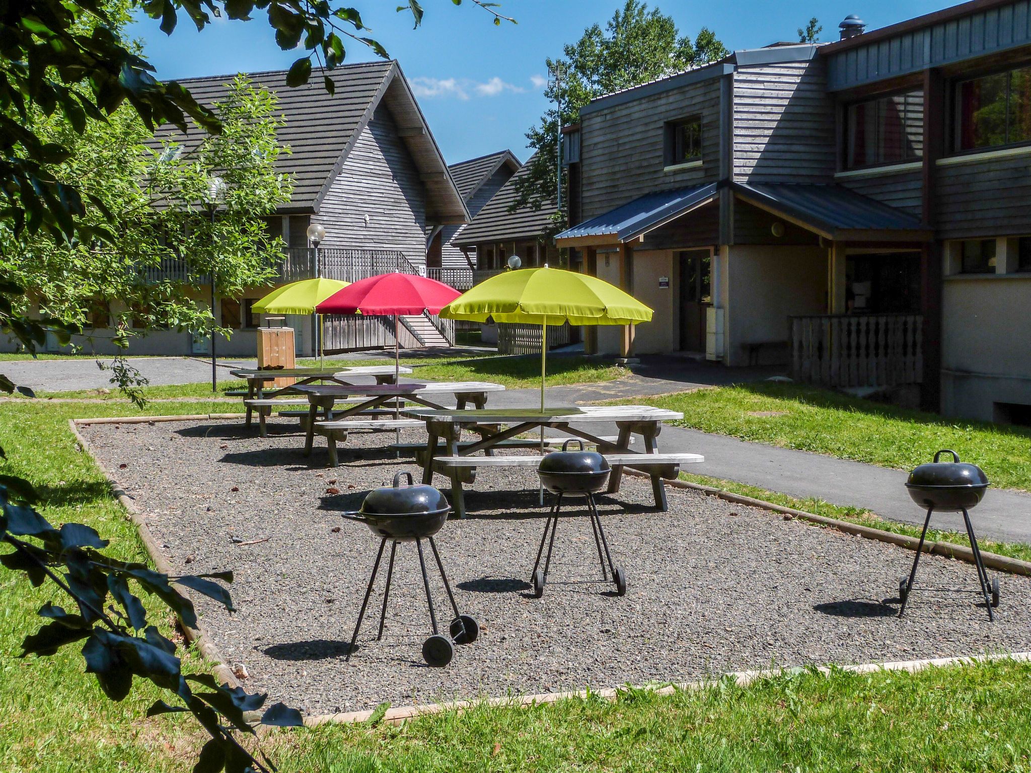 Located at the entrance of the resort, the residence is composed of hamlets divided into 30 chalets with 6 to 8 apartments. Child friendly holiday village "Le Bois de la Reine". In the centre of Super Besse, in the resort, in a quiet position on top of a hill, 2 km from the lake, 1 km from the skiing area, 600 m from the river, in the countryside, in a pedestrian area. For shared use: park with plants and trees, swimming pool heated (10 x 8 m, seasonal availability: 25.Jun. - 02.Sep.). Boccia, children's playground. In the complex: reception, lounge with TV, internet access, sauna (extra). Relaxation room, table tennis, billiard table, playroom, table football, central heating system, washing machine, tumble dryer (for shared use, extra). Bread roll service. Parking. Grocery 600 m, restaurant 800 m, bus stop 300 m, railway station "Clermont-Ferrand" 20 km, park "L'enclos de tibou", lake des Hermines 800 m. Riding stable 2 km, sports centre 600 m, cable car, gondola lift, skisport facilities, slopes, ski school 800 m, sled run 200 m. Nearby attractions: Clermont-ferrand 20 km. Well-known ski regions can easily be reached: Super Besse, Grand Sancy. Well-known lakes can easily be reached: des Hermines 2 km. Hiking paths: GR 4. Please note: car-free holiday complex, car recommended. Reception open 17:00-20:00 hrs. Suitable for families, baby equipment on request (included). Fishing [permit required]. Please note: the photograph shows a typical example. Additional accommodations can be booked.