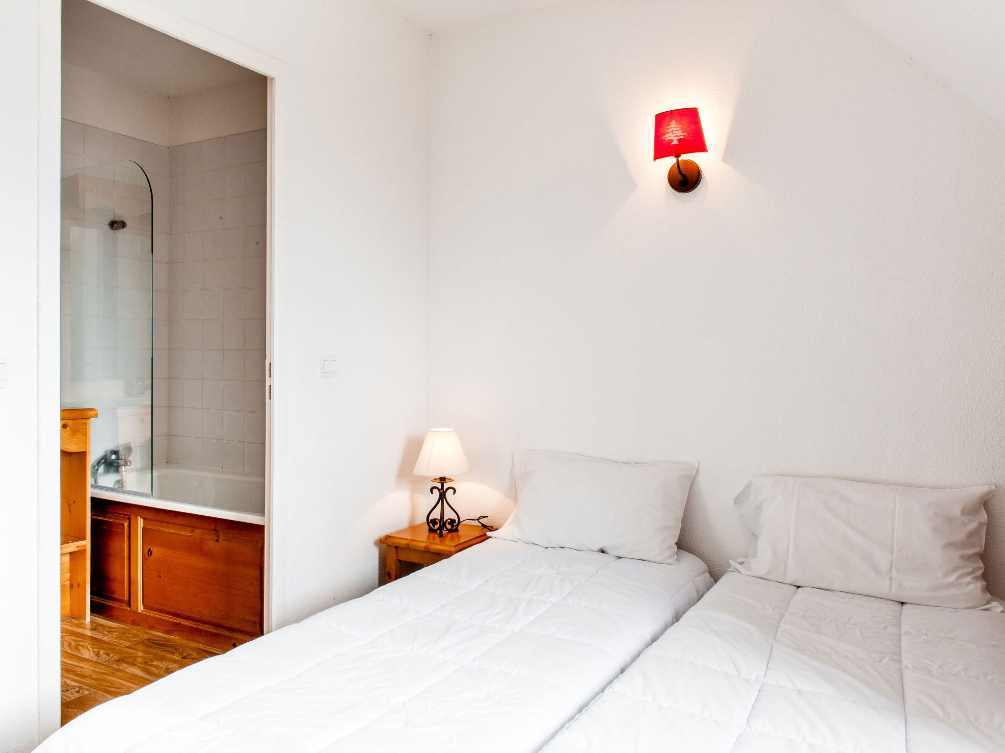 3-room maisonette 45 m2. Living/dining room with 1 double sofabed and TV (flat screen). Sleeping alcove with 1 x 2 bunk beds (80 cm). Kitchenette (dishwasher, 4 ceramic glass hob hotplates, microwave, grill, electric coffee machine). Shower/WC. Upper floor: 1 room with 1 french bed. 1 room with 2 beds. Bathroom, sep. WC. Heating. Balcony. Parking. Suitable for families. Maximum 1 pet/ dog allowed.