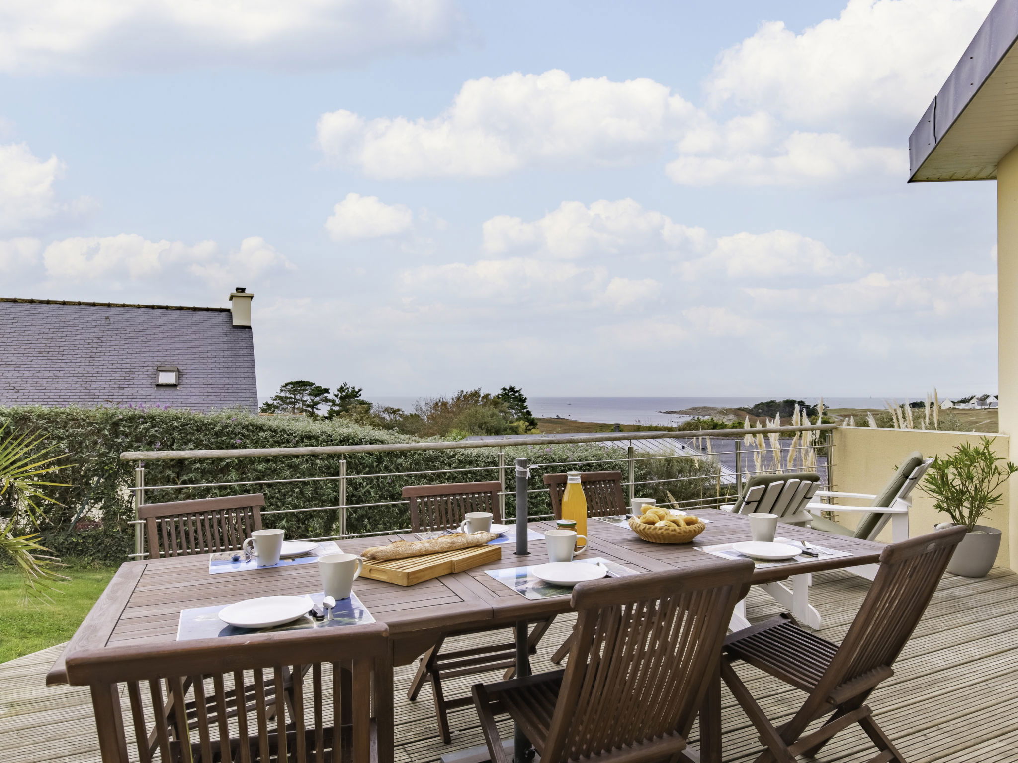 "Maison de Plain Pied - Vue Mer", 4-room house 120 m2. Modern and tasteful furnishings: living/dining room with dining table, satellite TV, international TV channels and DVD. Exit to the terrace. 1 room with 1 french bed (160 cm, length 200 cm), shower. Exit to the terrace. 1 room with 2 beds (90 cm, length 200 cm). 1 room with 1 french bed (140 cm, length 190 cm). Open kitchen (oven, dishwasher, 3 induction hot plates, toaster, kettle, microwave, freezer, electric coffee machine) with small dining table. Shower/WC, sep. WC. Heating. Terrace, south-west facing position. Terrace furniture, barbecue (portable), deck chairs (2), box-room. Beautiful view of the sea. Facilities: washing machine, dryer, iron, children's high chair, baby cot for up to 2 year olds. Internet (WiFi, free). Please note: non-smoking house. Maximum 1 pet/ dog allowed. Smoke alarm.