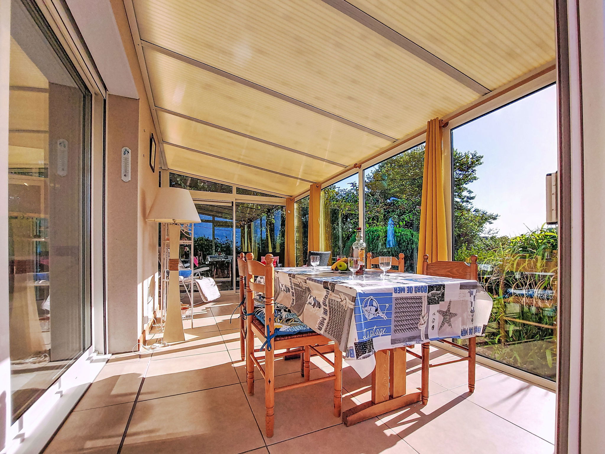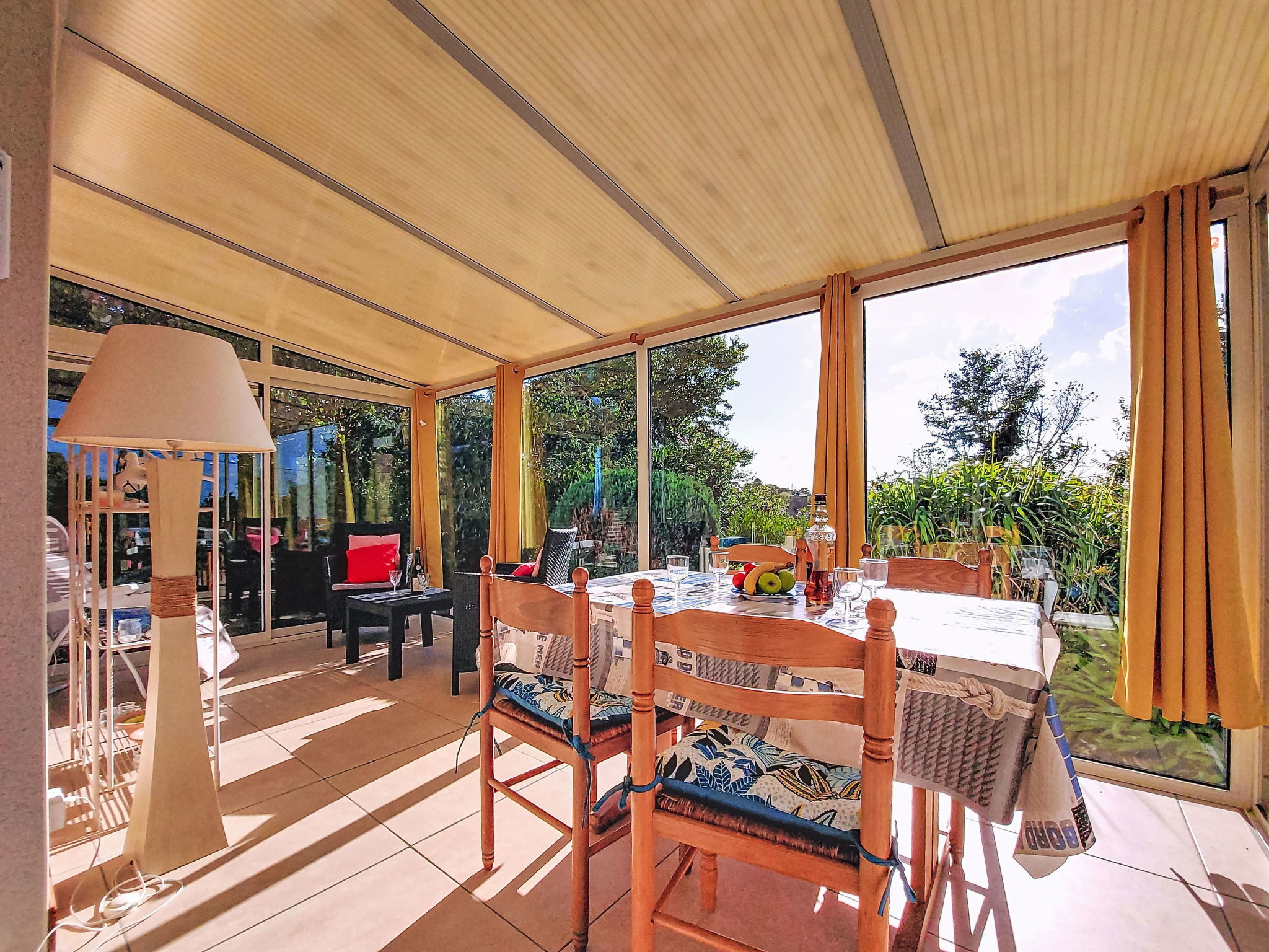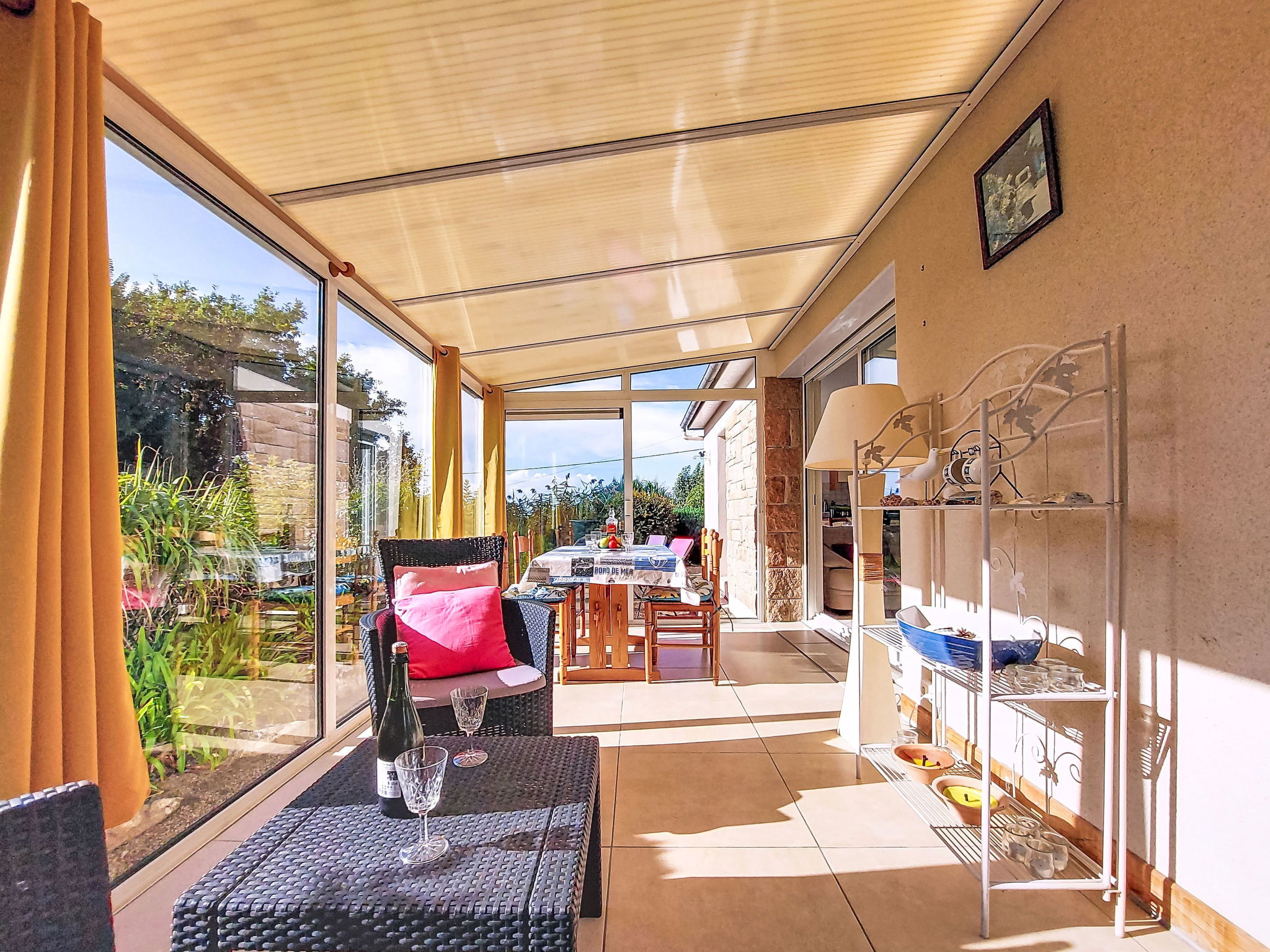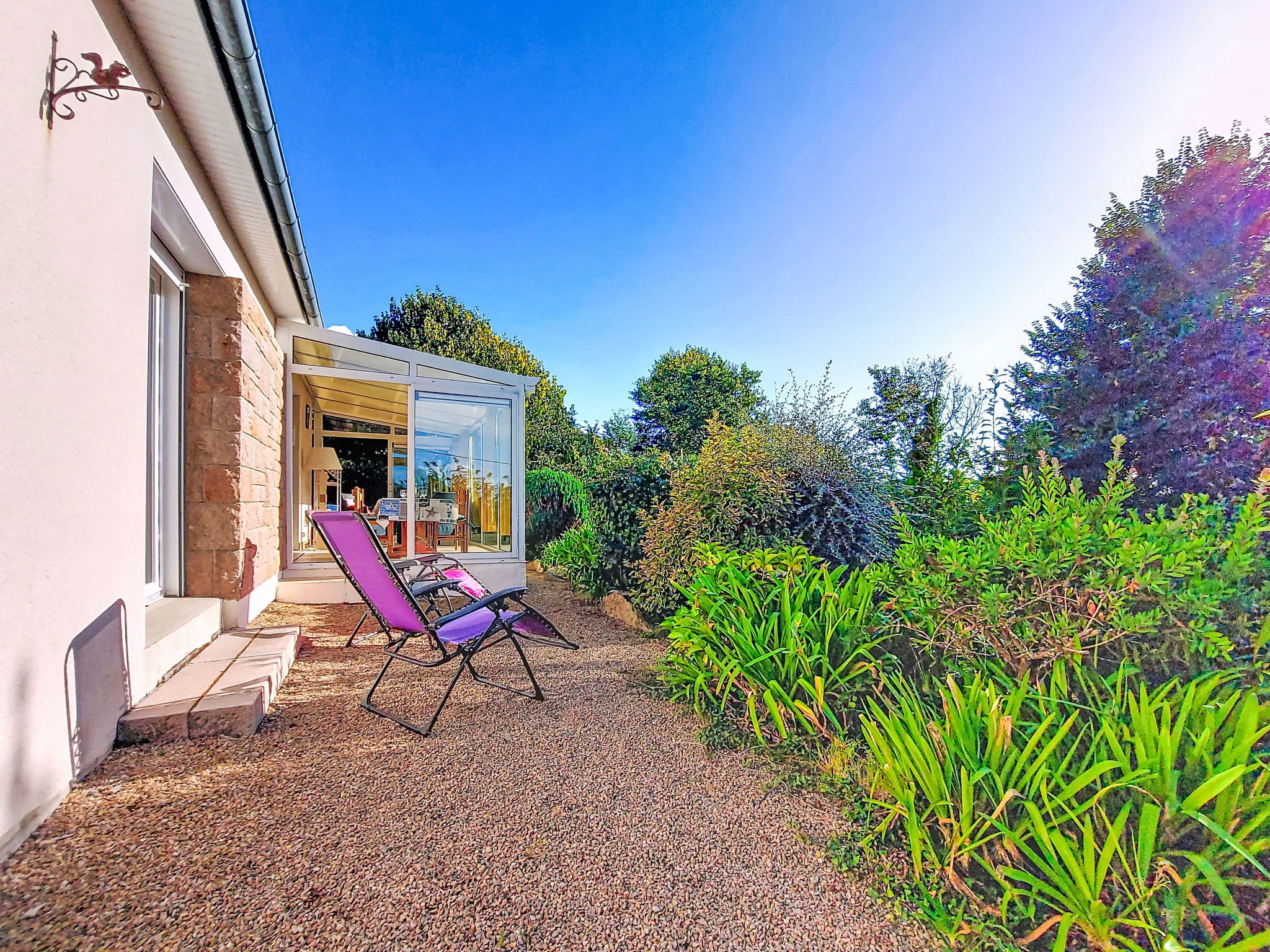 "Kerguntuil", 3-room house 60 m2. Bright, beautiful and cosy furnishings: living room with veranda with dining table and TV. Exit to the veranda. 1 room with 1 french bed ". 6.5 km from the centre of Pleumeur-Bodou, 3 km from the centre of Tregaste-Plage, 13 km from the centre of Lannion, 1 km from the sea. Private: large garden 1'500 m2 (not fenced) with lawn and wildlife garden, natural garden, parking on the premises. Grocery 3 km, supermarket 4.5 km, bus stop 3 km, sandy beach 2 km.
