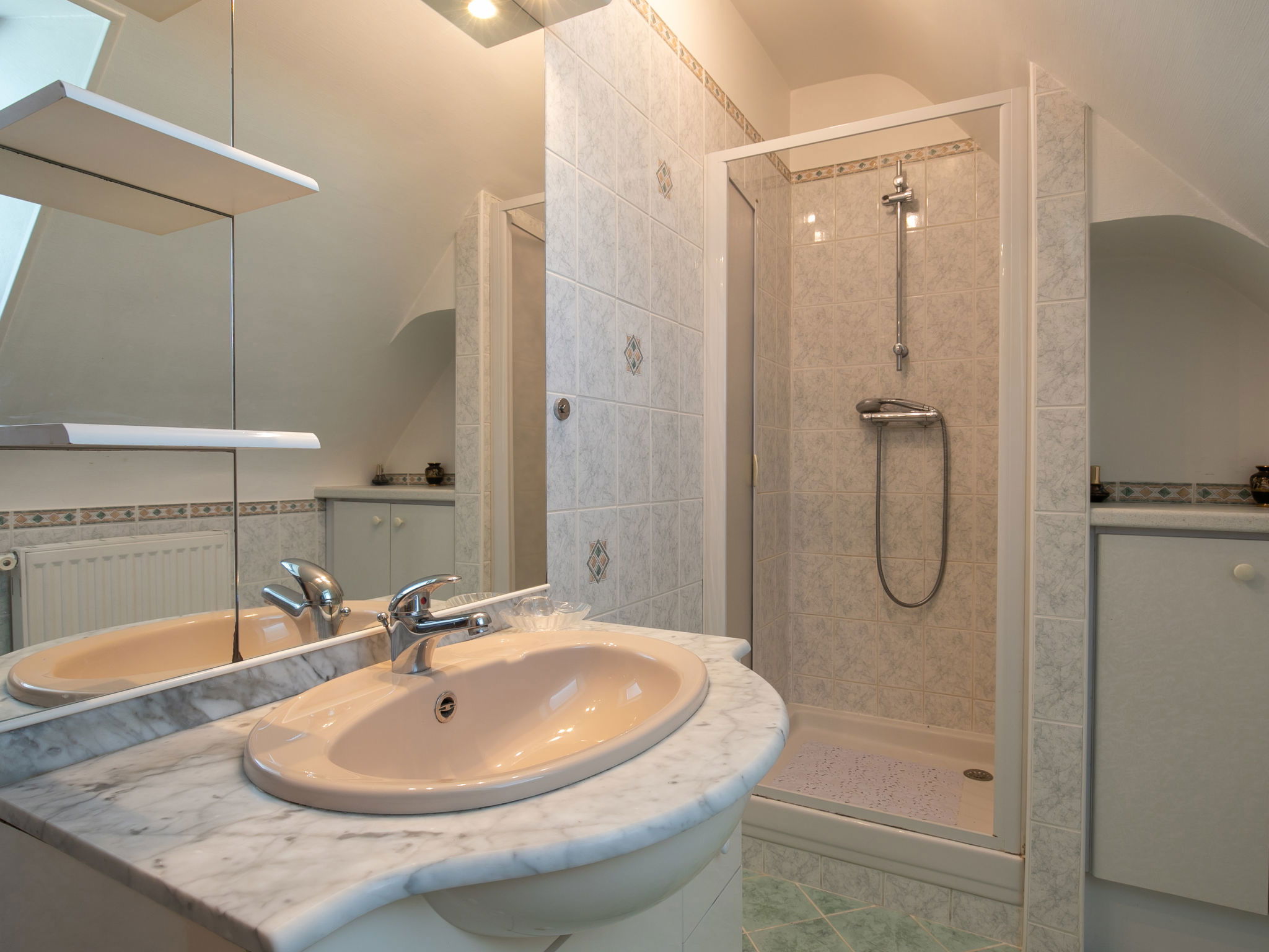 "Gueradur", 5-room house 150 m2 on 2 levels. Beautiful and cosy furnishings: living/dining room with veranda with open-hearth fireplace, dining table and TV (flat screen), hi-fi system and DVD. Exit to the veranda. 1 room with 1 french bed (140 cm, length 190 cm). Kitchen (oven, dishwasher, 4 gas rings, toaster, kettle, microwave, freezer, electric coffee machine) with TV. Bathroom, sep. WC. Upper floor: 2 rooms with sloping ceilings, each room with 1 french bed (140 cm, length 190 cm), TV. 1 room with sloping ceilings with 1 bed (90 cm, length 190 cm). Shower/WC. Gas heating. Parquet floors. Terrace. Terrace furniture, barbecue, deck chairs (2), box-room. Facilities: washing machine, dryer, children's high chair, baby cot for up to 2 year olds, hair dryer. Internet (WiFi, free). Please note: non-smoking house. Maximum 2 pets/ dogs allowed. Smoke alarm.