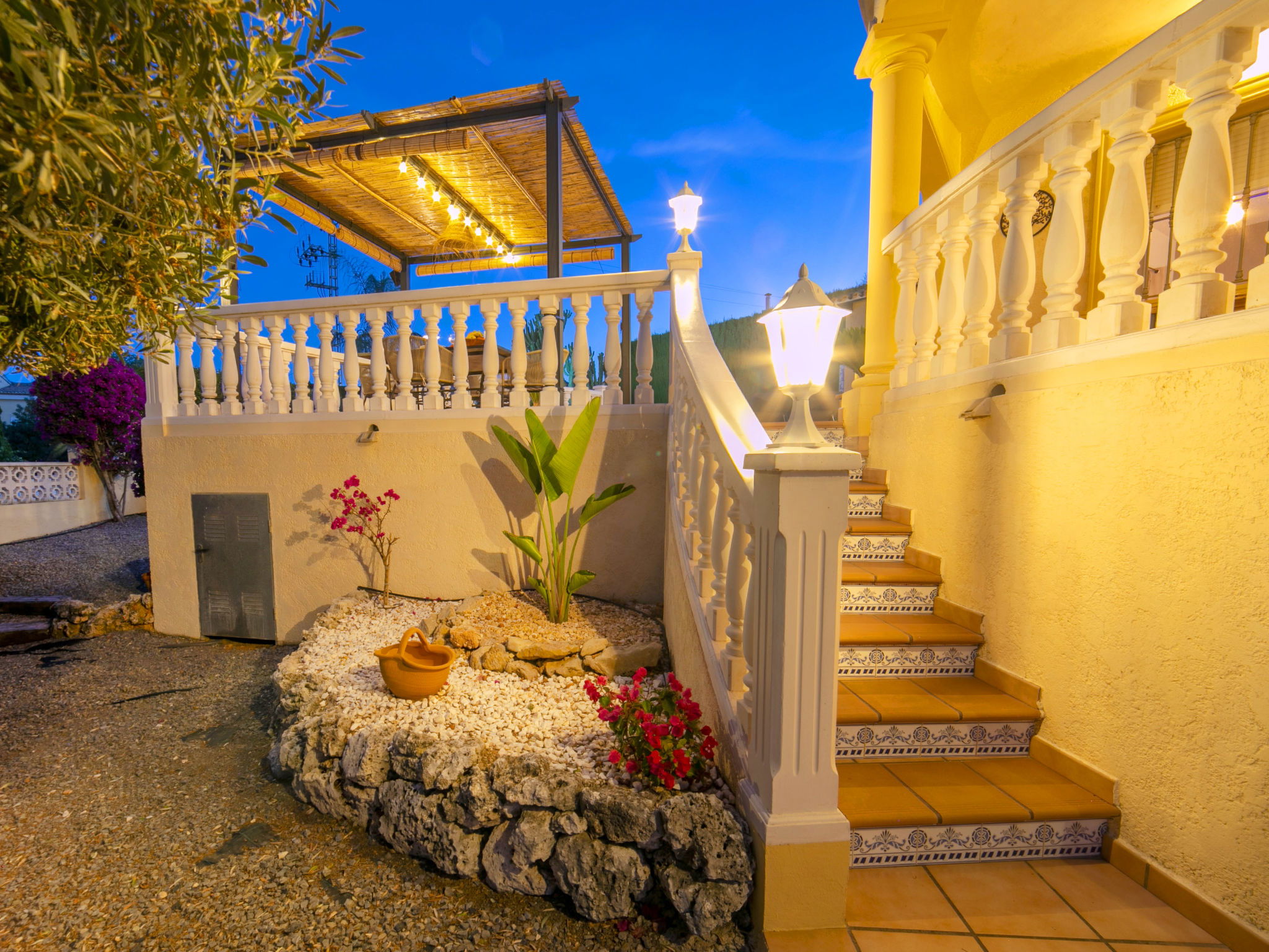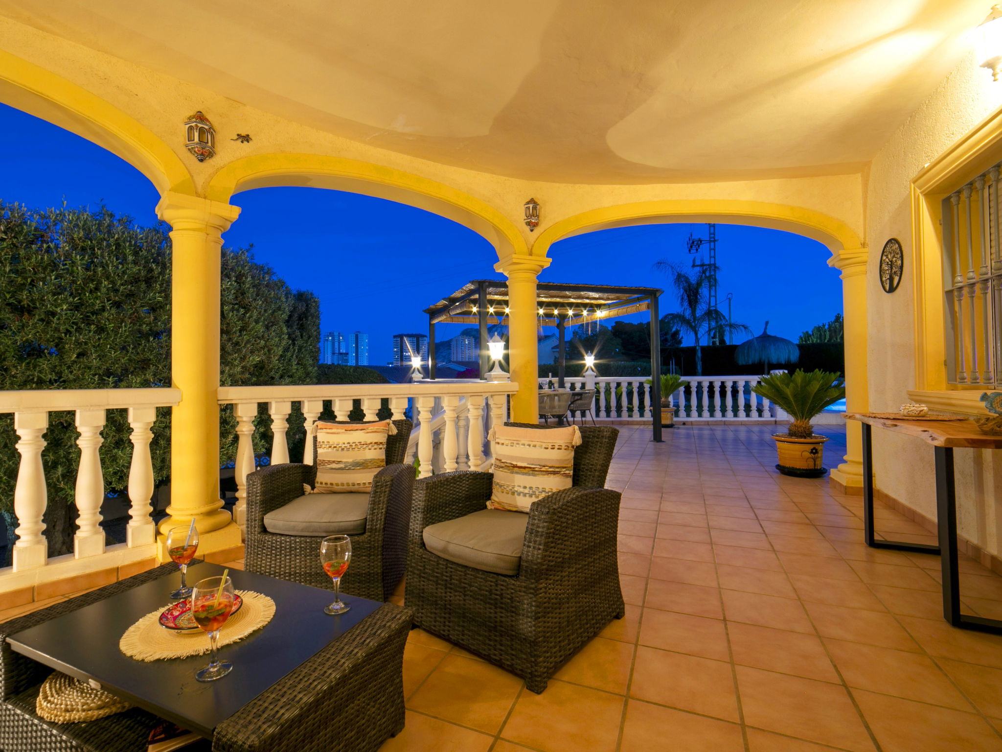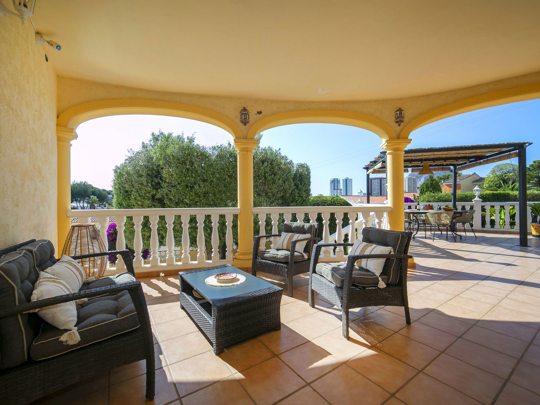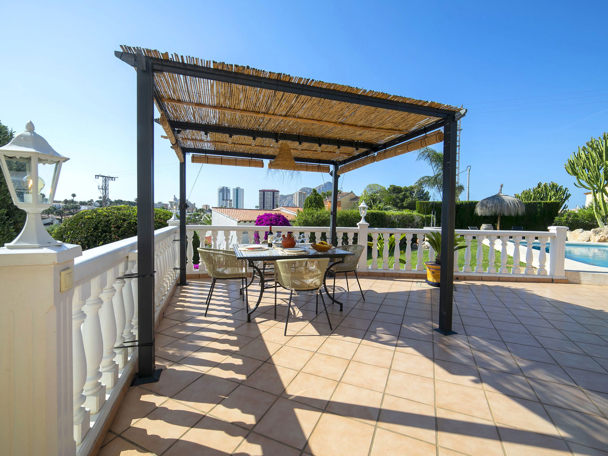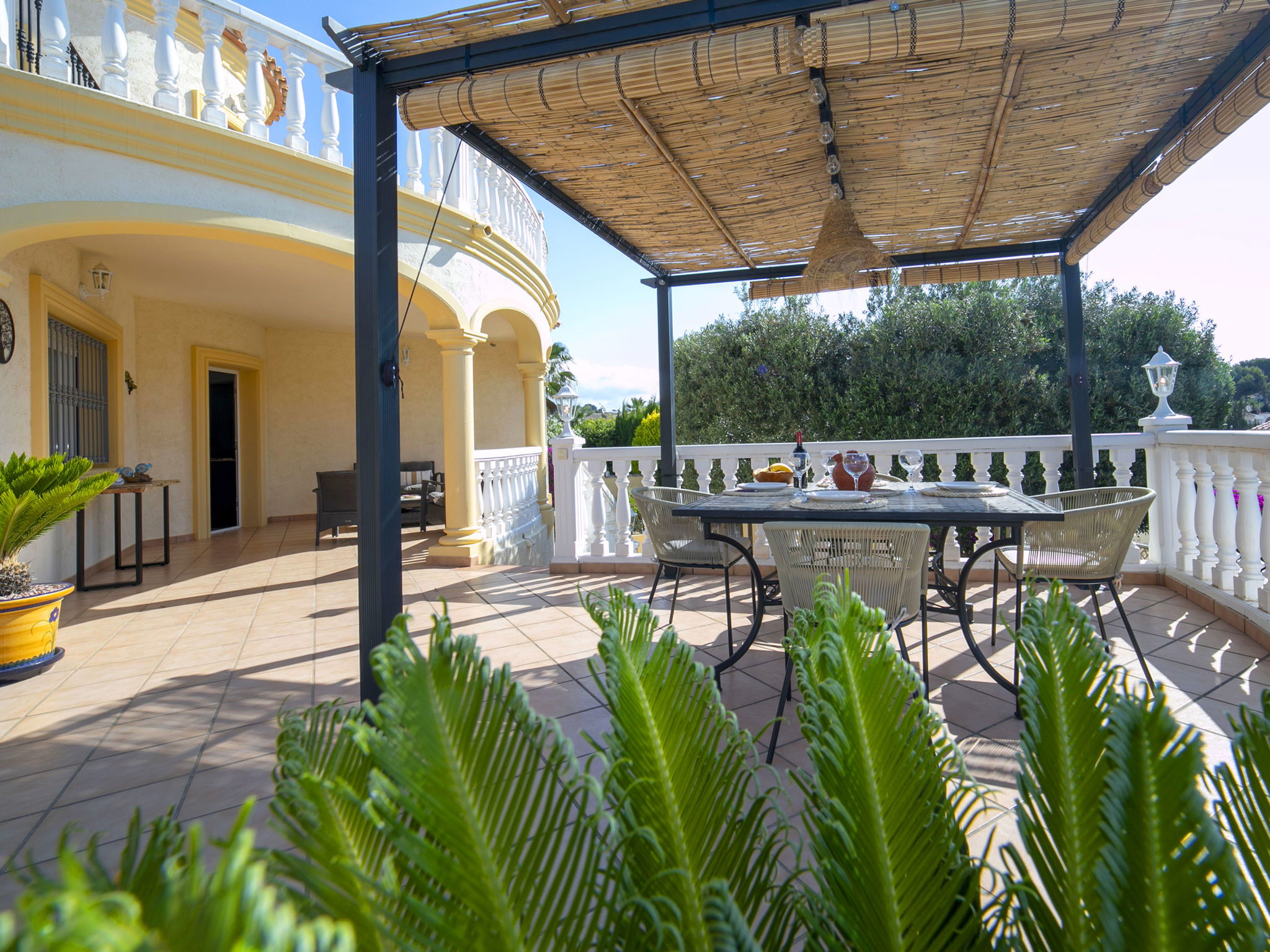 Costeres 1 km from Playa La Fossa: Large, child friendly house "Hawaii", 2 storeys. Outside the resort, 3 km from the centre of Calpe, in the district Costeres, in a quiet position residential area (villas), 900 m from the sea, from the beach. Private: property 800 m2 (fenced) with lawn, natural garden, swimming pool (8 x 4 m, depth 100 - 200 cm, seasonal availability: 01.Jan. - 31.Dec.) with internal staircase. Outdoor shower, garden furniture, barbecue, parking on the premises. Shop 1 km, grocery 1 km, supermarket 1 km, restaurant, bar, café 750 m, pub garden 750 m, 43 minute walk to the centre, bus stop "Bus Local" 750 m, sandy beach "Playa de la Fossa" 1.1 km, diving center 2.5 km, swimming bay 900 m. Sports harbour 2.5 km, marina 2.5 km, golf course (9 hole) 9.7 km, surf school 2.5 km, sailing school 2.5 km, tennis 2.5 km. Nearby attractions: Peñon de Ifach 2.5 km, Salinas de Calpe 2.3 km. Hiking paths: Siera de Olta 10.2 km, Sierra de Bernia 22.2 km, Sendero Calalga 900 m. Please note: suitable for families. Groups of teenagers on request only. Neighbourhood highly sensitive to noise. Quietness and good behaviour expected.