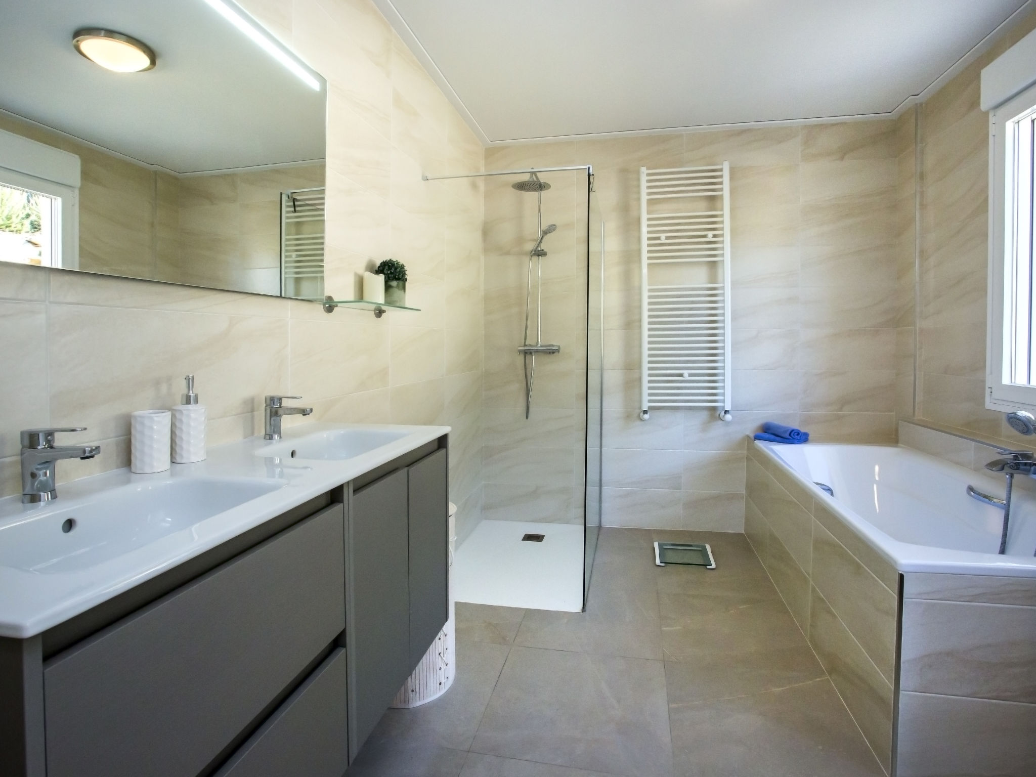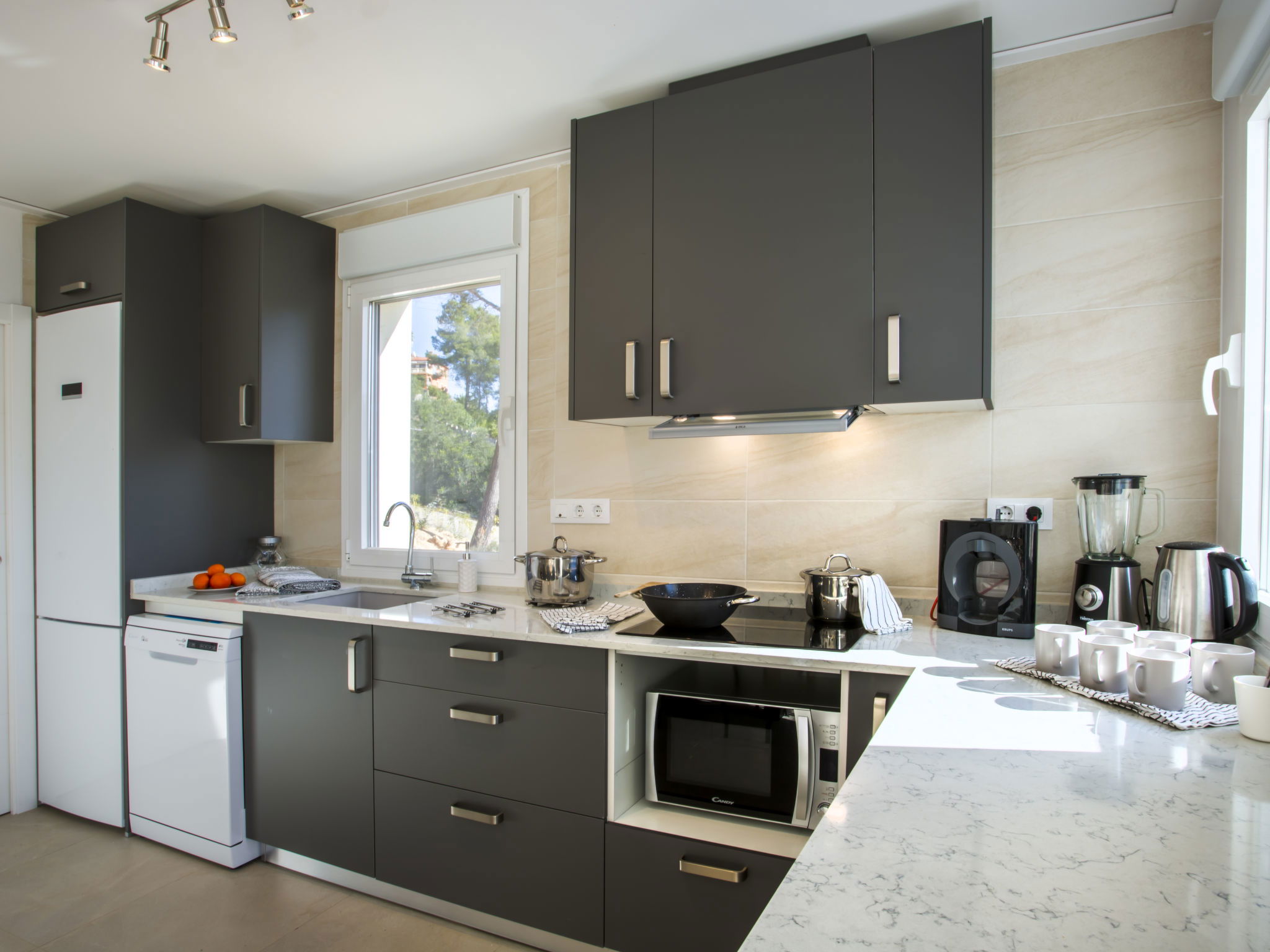 "Villa Cara Mull Alcalalí", 9-room villa 350 m2 on 2 levels. Spacious and bright, very beautiful and luxurious furnishings: living/dining room with satellite TV. Exit to the terrace, pergola. 1 room 35 m2 with 1 french bed (180 cm, length 200 cm), bath/shower/WC and double hand-basin. Exit to the terrace. 2 rooms, each room with 1 french bed (180 cm, length 200 cm). Exit to the terrace. Large, open kitchen (oven, dishwasher, 3 induction hot plates, toaster, kettle, microwave, freezer, electric coffee machine). Shower, sep. WC. On the lower ground floor: living/dining room with satellite TV. Exit to the terrace, to the swimming pool. 1 room with 1 french bed (180 cm, length 200 cm), shower/WC. Exit to the terrace, to the swimming pool. 3 rooms, each room with 1 french bed (180 cm, length 200 cm). Exit to the terrace, to the swimming pool. Large, open kitchen (oven, dishwasher, 4 induction hot plates, toaster, microwave, freezer, electric coffee machine). Sep. WC, bath/shower/WC. 2 large terraces. Terrace furniture, barbecue, deck chairs, sitting area. Marvellous view of the mountains, the valley and the countryside. Facilities: washing machine, dryer, safe, iron, children's high chair, baby cot, hair dryer. Internet (WiFi, free). Maximum 1 pet/ dog allowed. TV with Smart TV. VT-513471-A // Reg. Nr.: ESFCTU00000304900046121000000000000000000VT-513471-A0