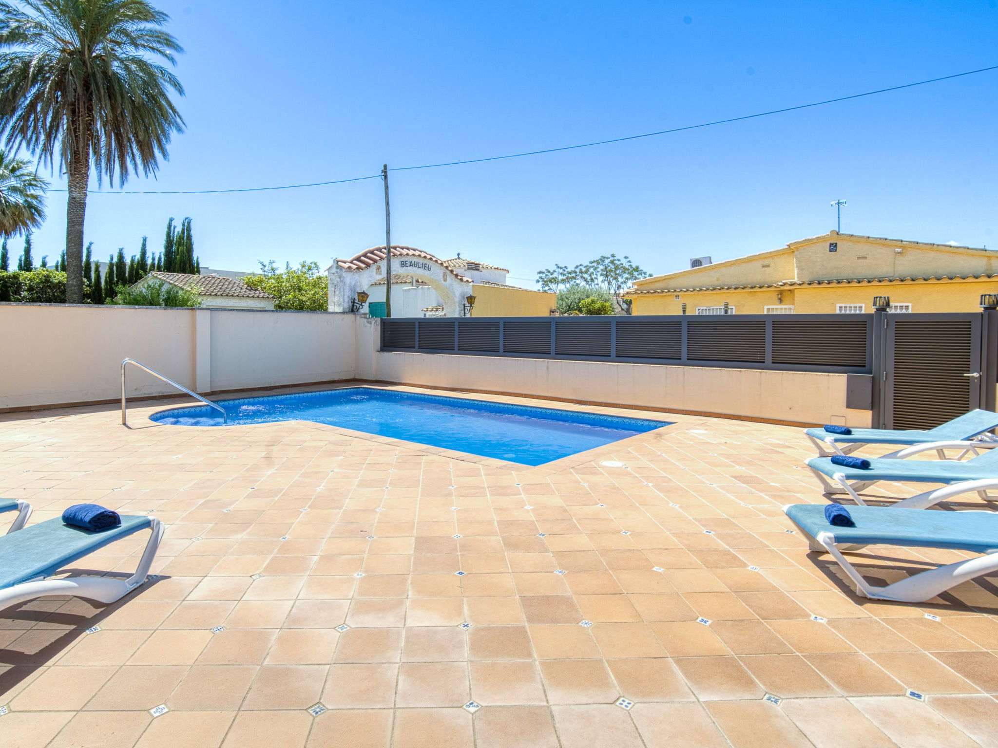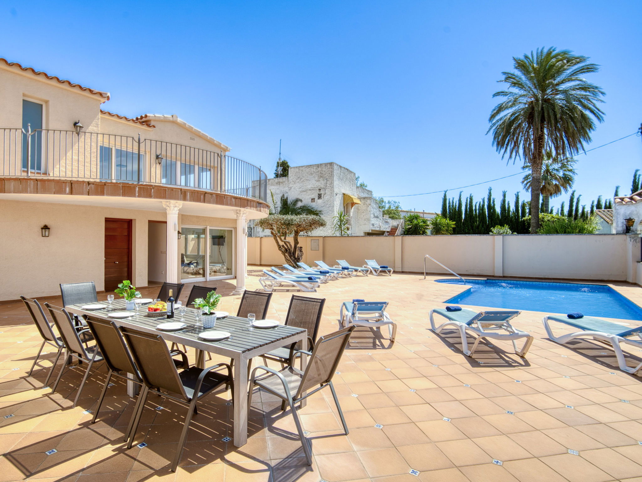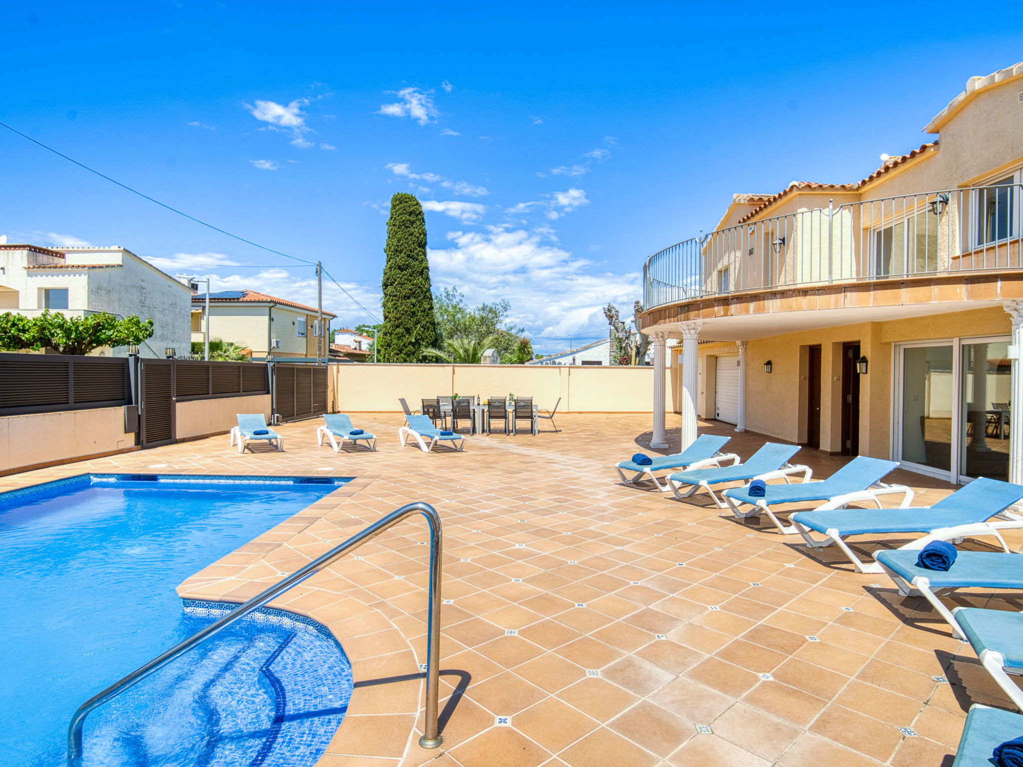Large, beautiful, comfortable house "Requesens", 2 storeys. In the district of Requesens 400 m from the centre of Empuriabrava, in a quiet, sunny position residential area (villas), traffic calmed area, 900 m from the sea, 120 m from the canal, in a cul-de-sac. Private: swimming pool angular (9 x 4 m, depth 100 - 200 cm, seasonal availability: 01.Apr. - 30.Oct.) with internal staircase. Parking, single garage. Shop 800 m, supermarket 800 m, restaurant, bar, café 900 m, internet café 900 m, bus stop 3 km, sandy beach "Empuriabrava" 900 m. Nearby attractions: Parque acuático Roses 6 km, Museo Dalí Figueres 15 km, Ruïnas de Empuries 21 km, Castillo y Festival de Perelada 12 km, Aeródromo y túnel del viento 2 km, Monasterio de Sant Pere de Rodes 23 km. The keys‘ handover takes place by the agency in Empuriabrava.
