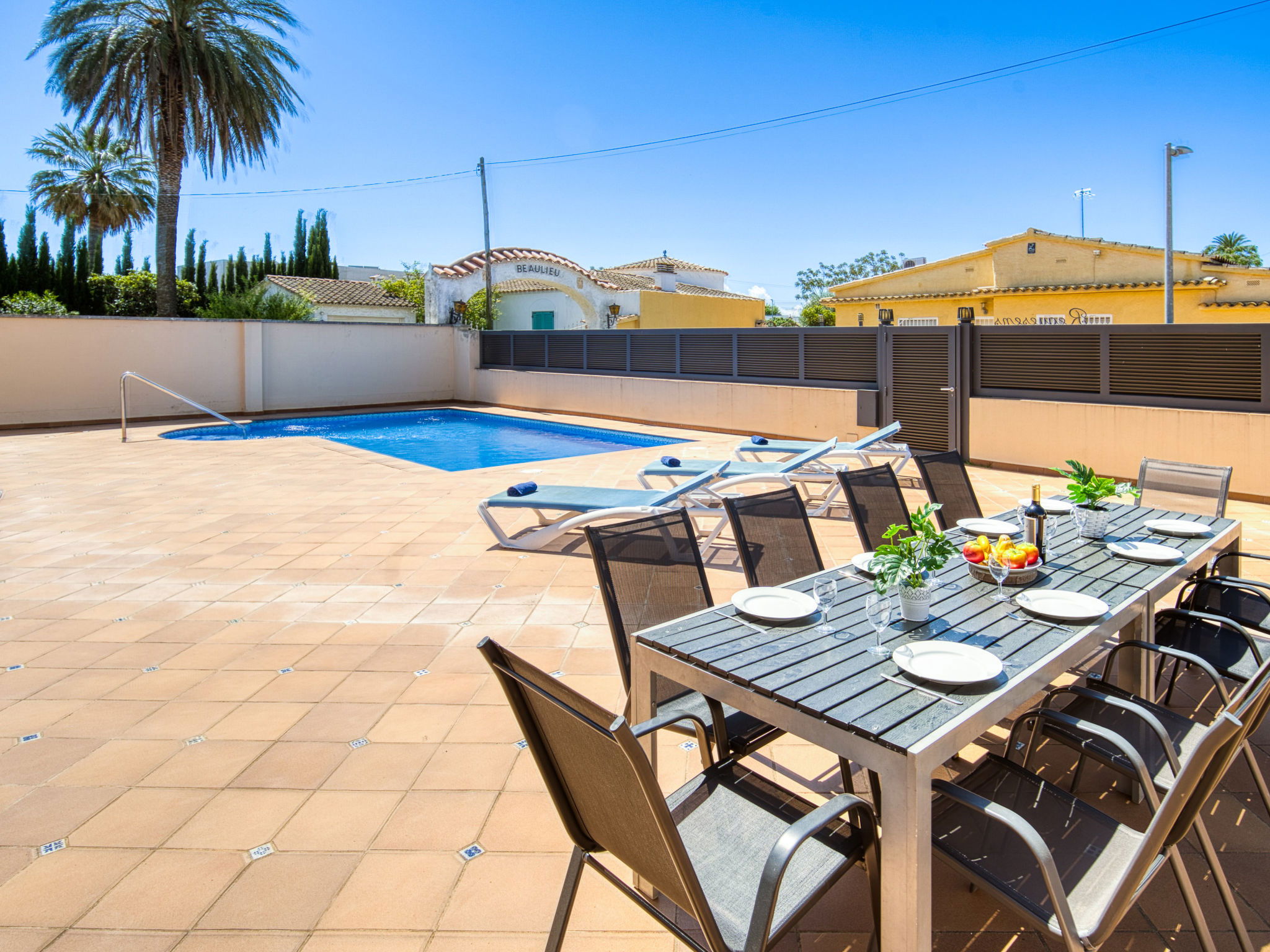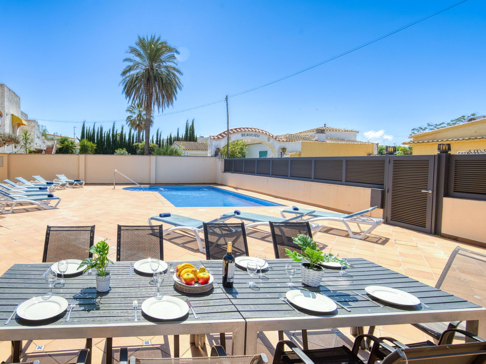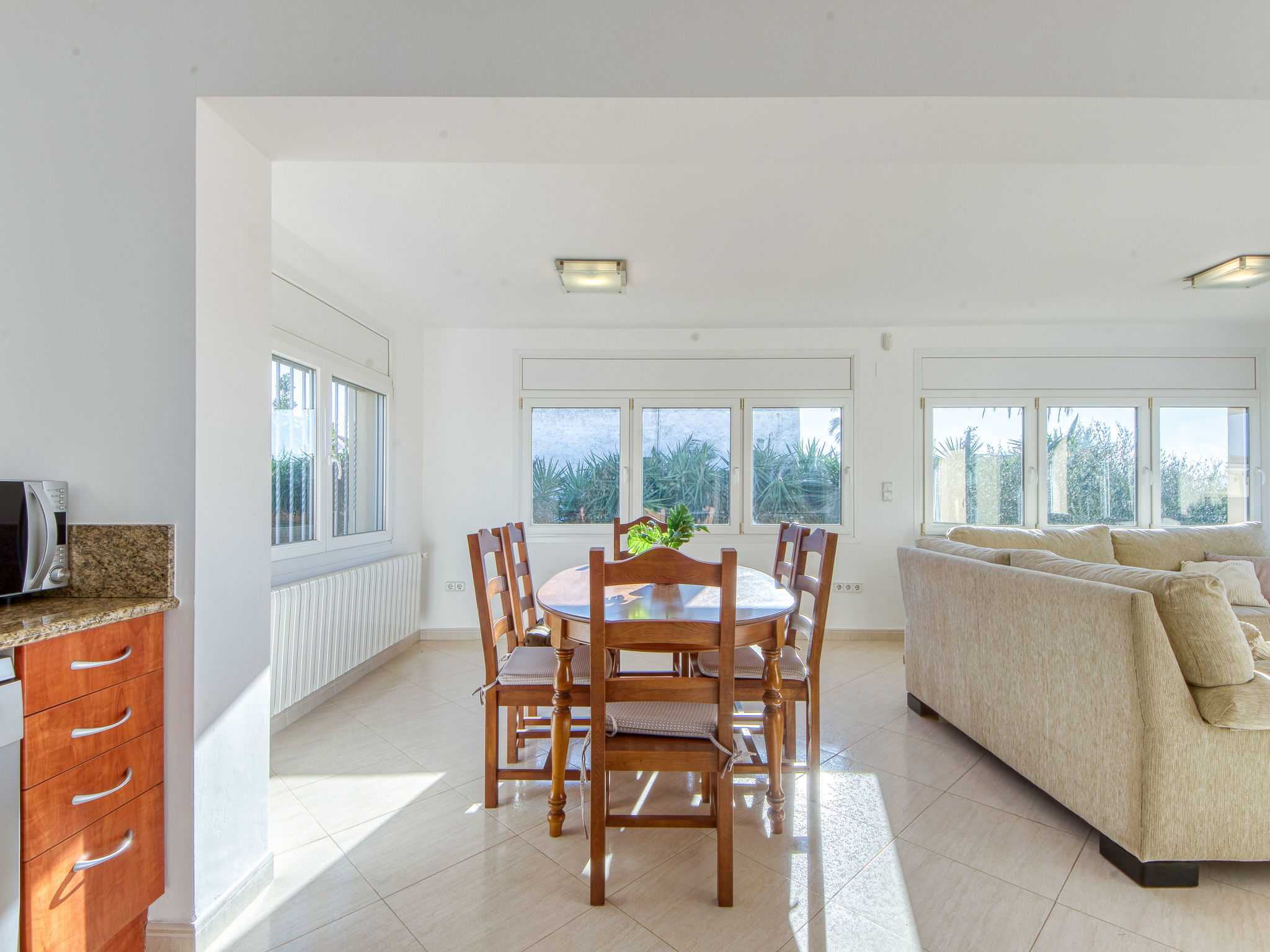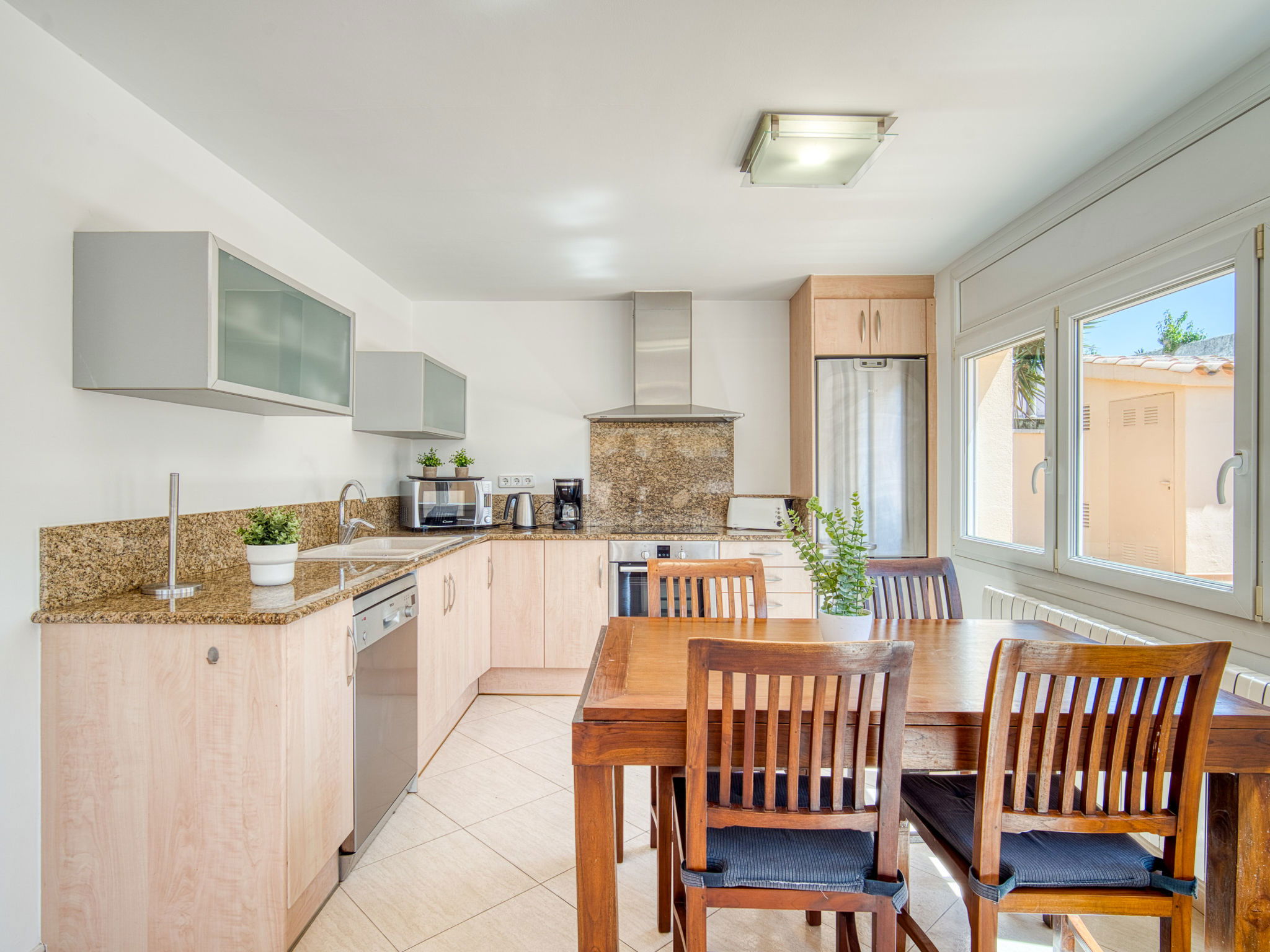 Large, beautiful, comfortable house "Requesens", 2 storeys. In the district of Requesens 400 m from the centre of Empuriabrava, in a quiet, sunny position residential area (villas), traffic calmed area, 900 m from the sea, 120 m from the canal, in a cul-de-sac. Private: swimming pool angular (9 x 4 m, depth 100 - 200 cm, seasonal availability: 01.Apr. - 30.Oct.) with internal staircase. Parking, single garage. Shop 800 m, supermarket 800 m, restaurant, bar, café 900 m, internet café 900 m, bus stop 3 km, sandy beach "Empuriabrava" 900 m. Nearby attractions: Parque acuático Roses 6 km, Museo Dalí Figueres 15 km, Ruïnas de Empuries 21 km, Castillo y Festival de Perelada 12 km, Aeródromo y túnel del viento 2 km, Monasterio de Sant Pere de Rodes 23 km. The keys‘ handover takes place by the agency in Empuriabrava.