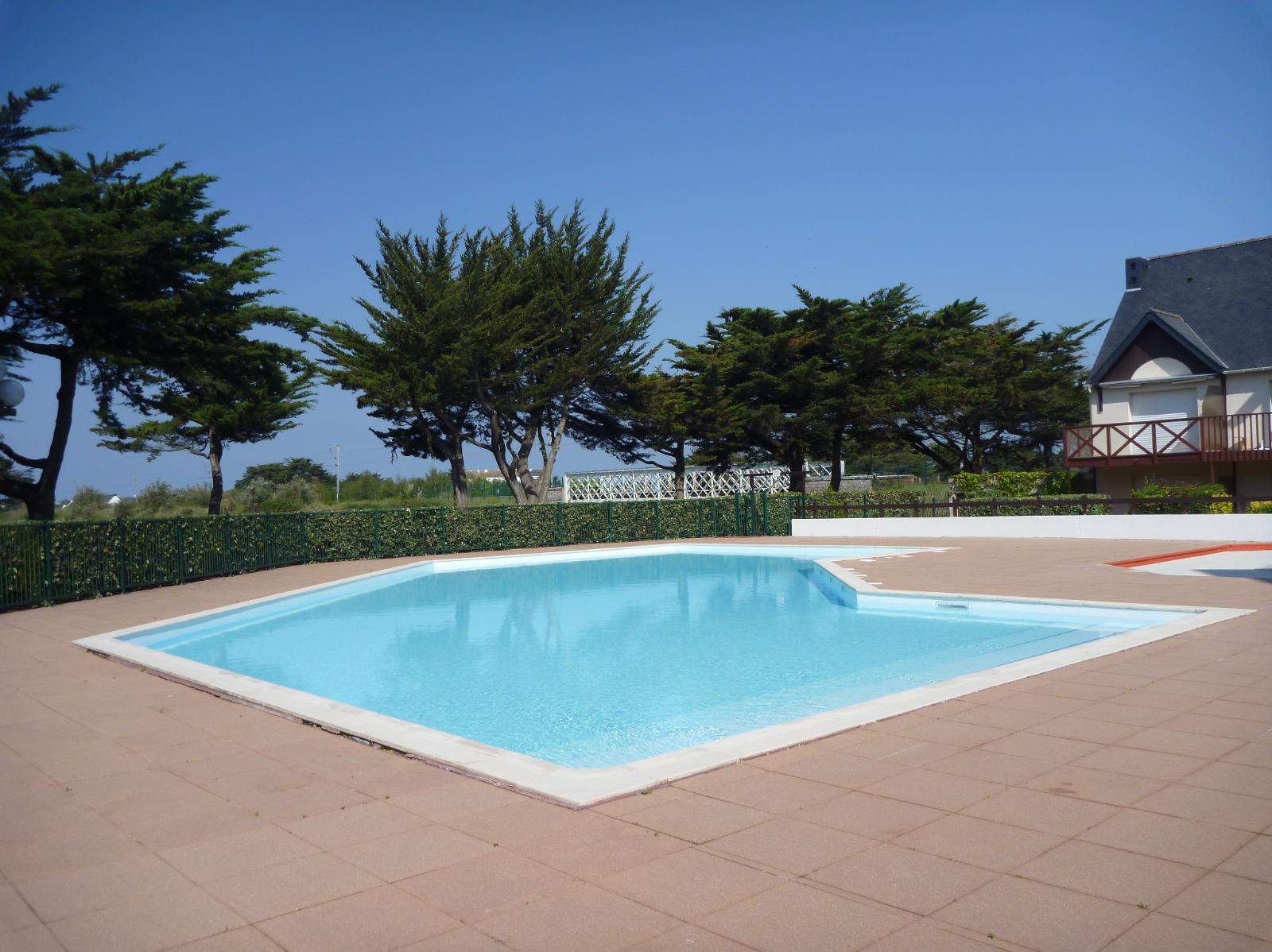 In holiday village with swimming pool 800m from the beach.