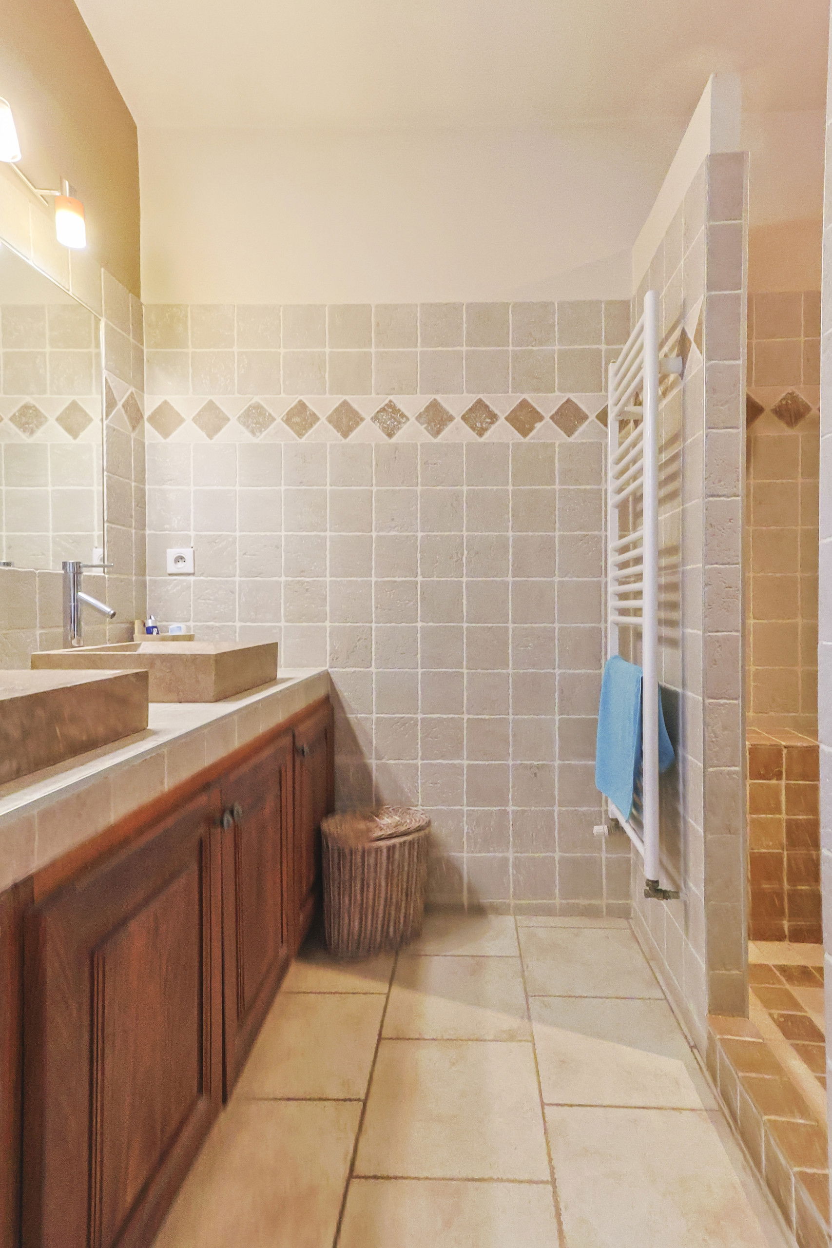It offers a large garden (2500m²), which is entirely fenced, but also a beautiful private swimming pool (9x4.5m, 160cm deep) with a children’s pool (90cm deep), a Pétanque court, pingpong and a small field to play ball.