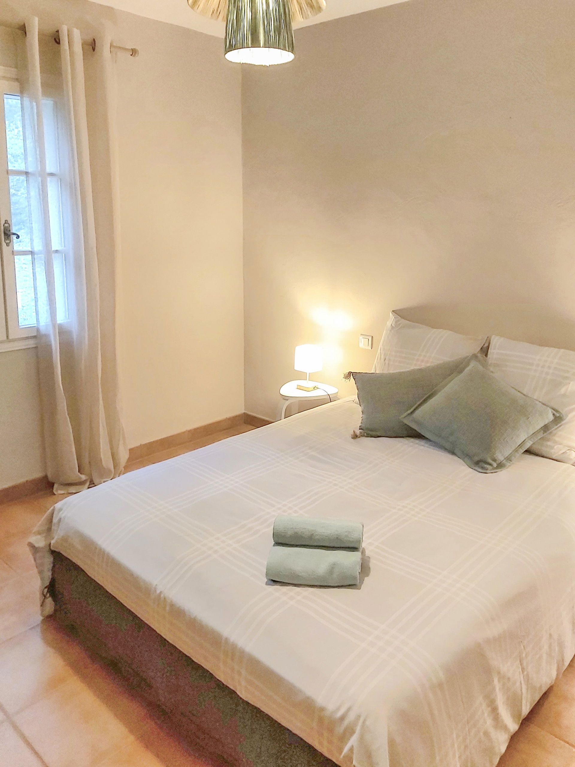 On the ground floor, you'll find the fully equipped open kitchen, the living room with a fireplace, the dining area, 2 bedrooms with a double bed, and a bathroom with a shower. On the floor, there is the 3rd bedroom and the 2nd bathroom. The entire house is tastefully and practically furnished with pleasant spaces and air conditioning. The property ensures total privacy; there is no overlooking!