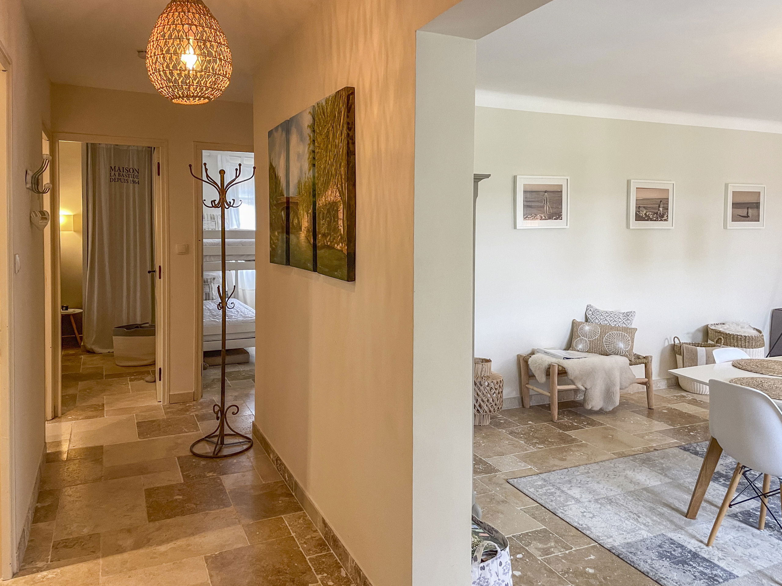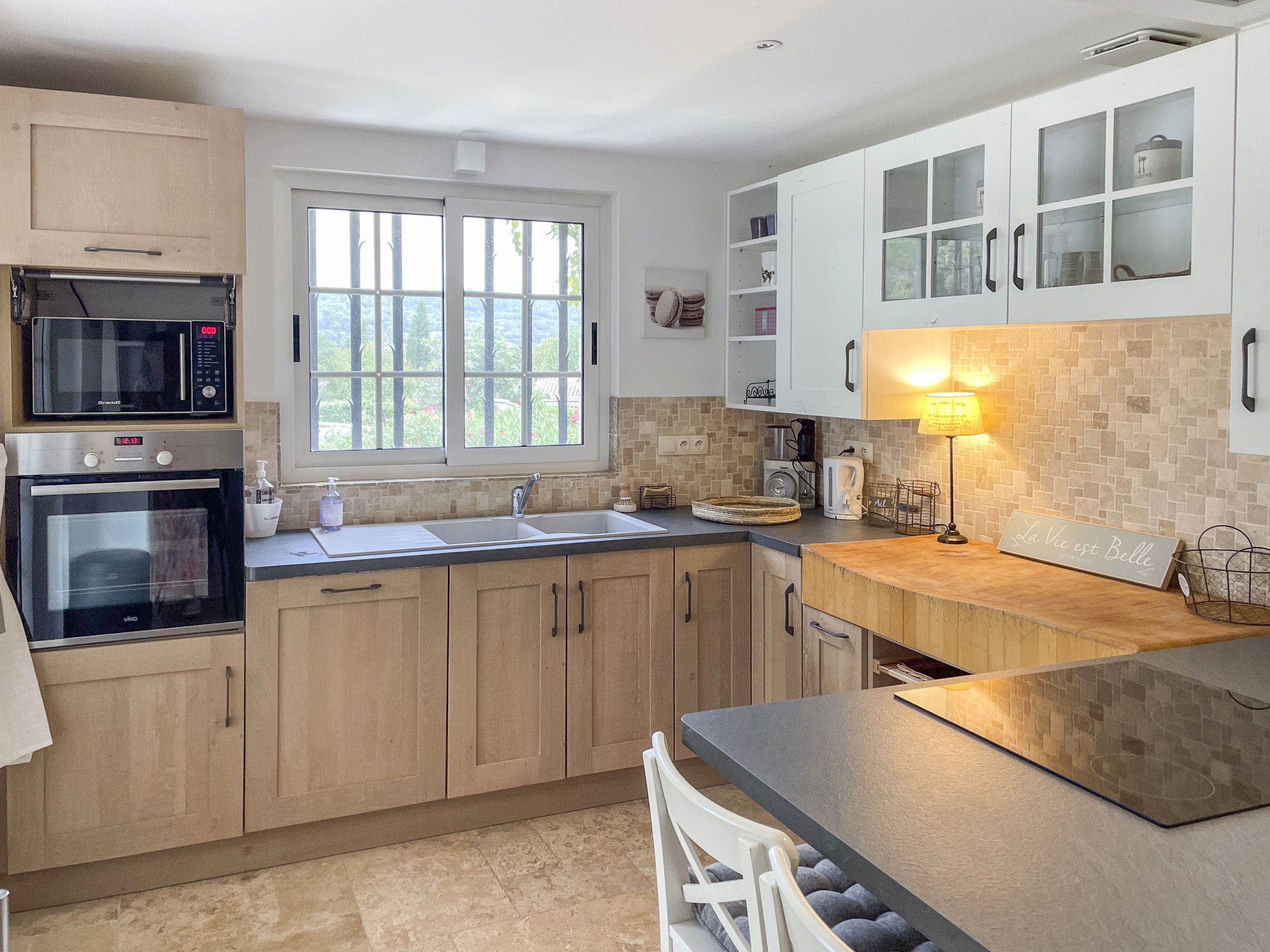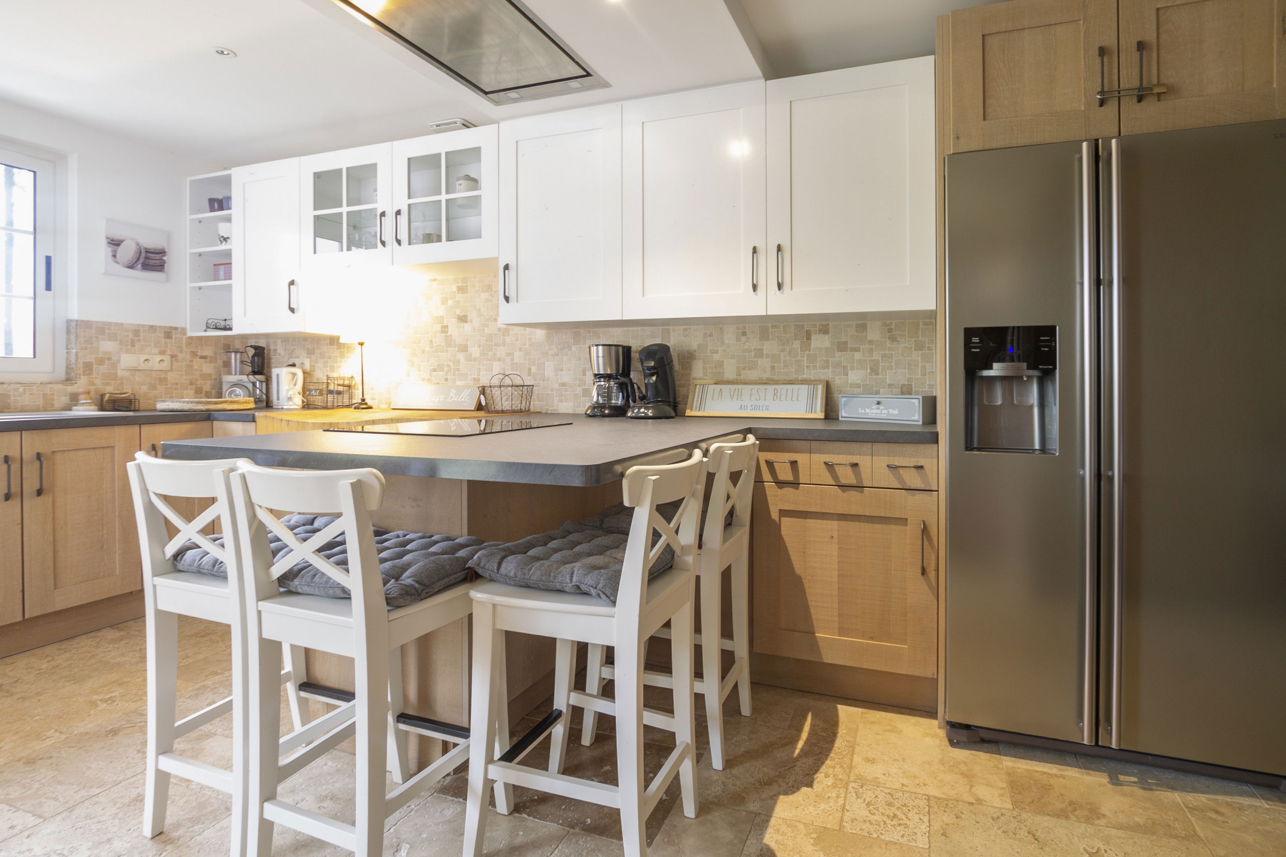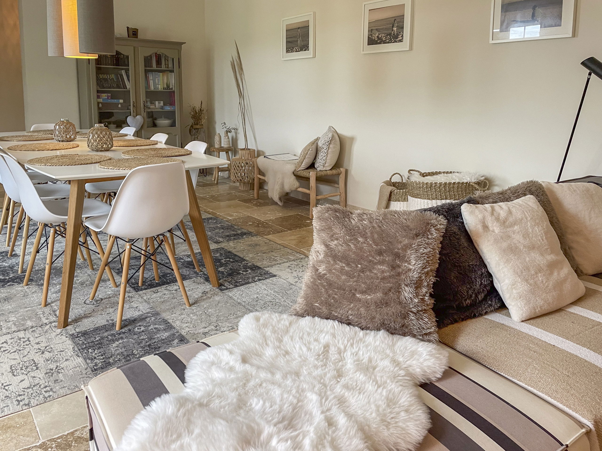 This holiday home has been very tastefully decorated with love and care. All rooms are on the ground floor. The entire house is air-conditioned. The separate kitchen is practical and equipped with all comforts. Here you can turn every meal into a success! The living room and adjoining dining area are bright and open directly onto the cosy terrace. The bedrooms are spacious and overlook the garden. The bathrooms are both equipped with a rain shower, sink and toilet.