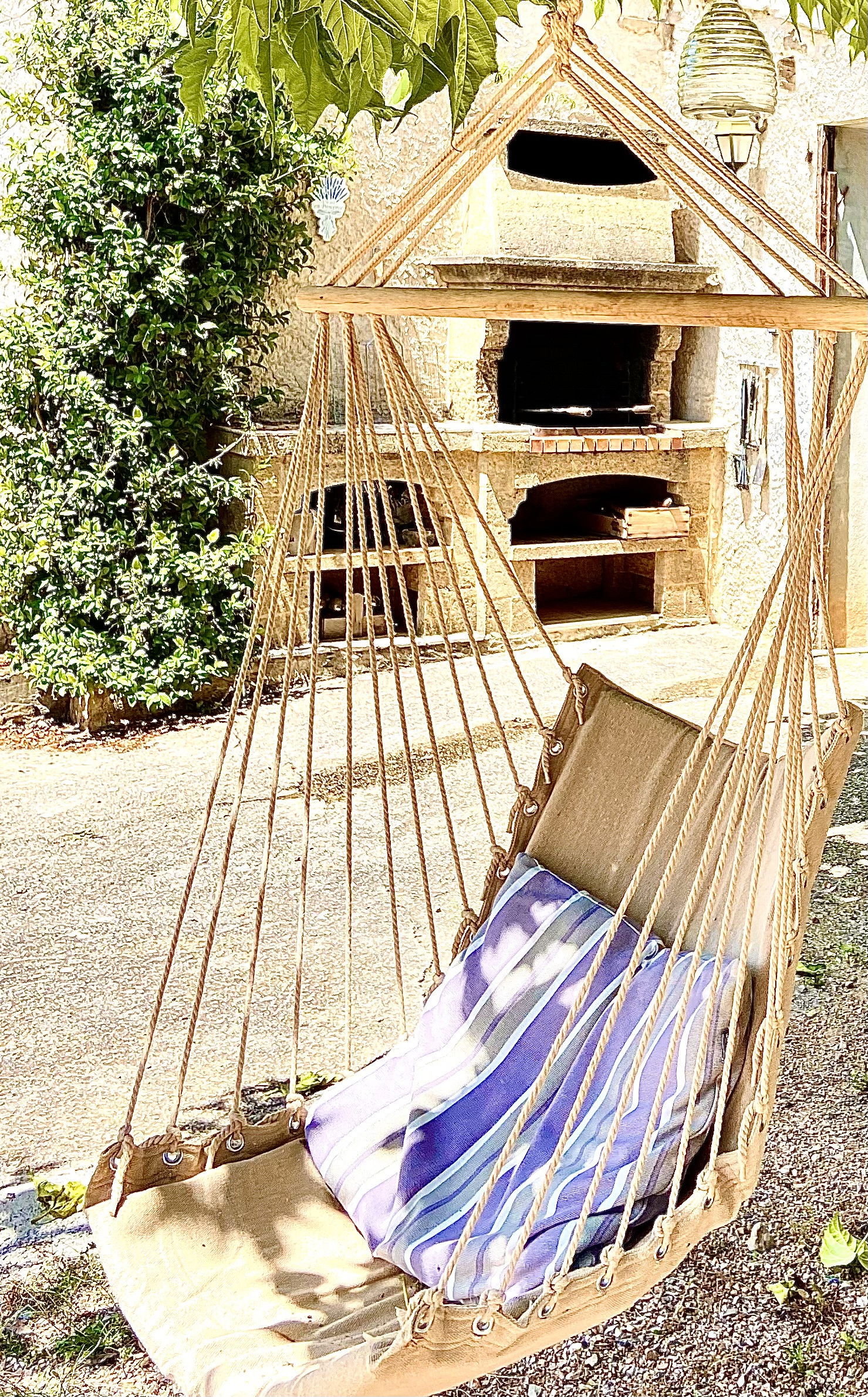 The large illuminated private swimming pool of Mas du Murier (12x6m and max depth 2.8m) is equipped with an alarm which ensures extra safety for children and surrounded by spacious terraces with sun loungers and a garden lounge. It is blissful fun! The spacious terraces offer plenty of shade and you can relax in the hammock. The enclosed garden of no less than 5000m2 is equipped with a petanque court and numerous cosy chill-out corners. The children can romp around and have fun with the cool go-carts available. The outdoor shower and bricked barbecue complete the picture.